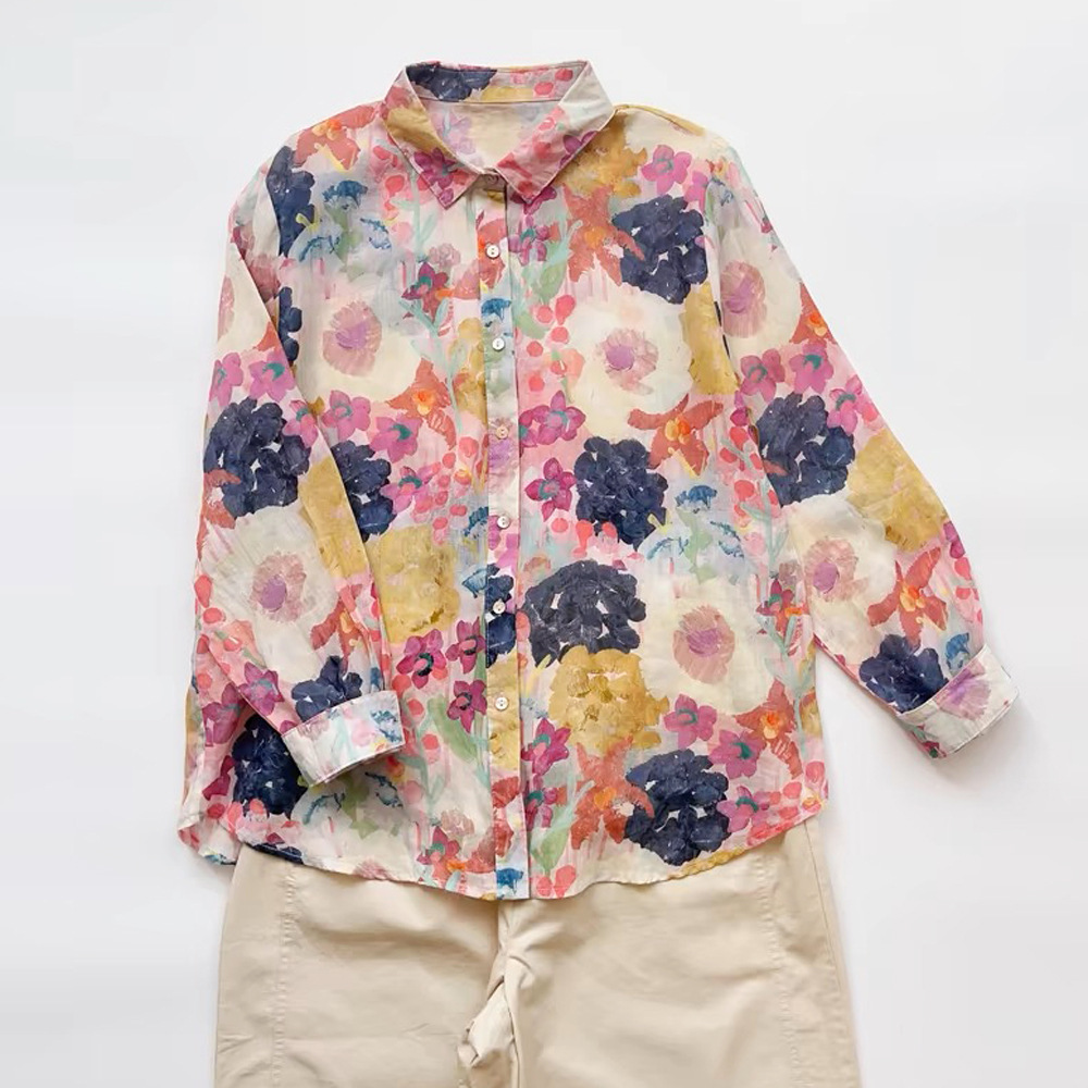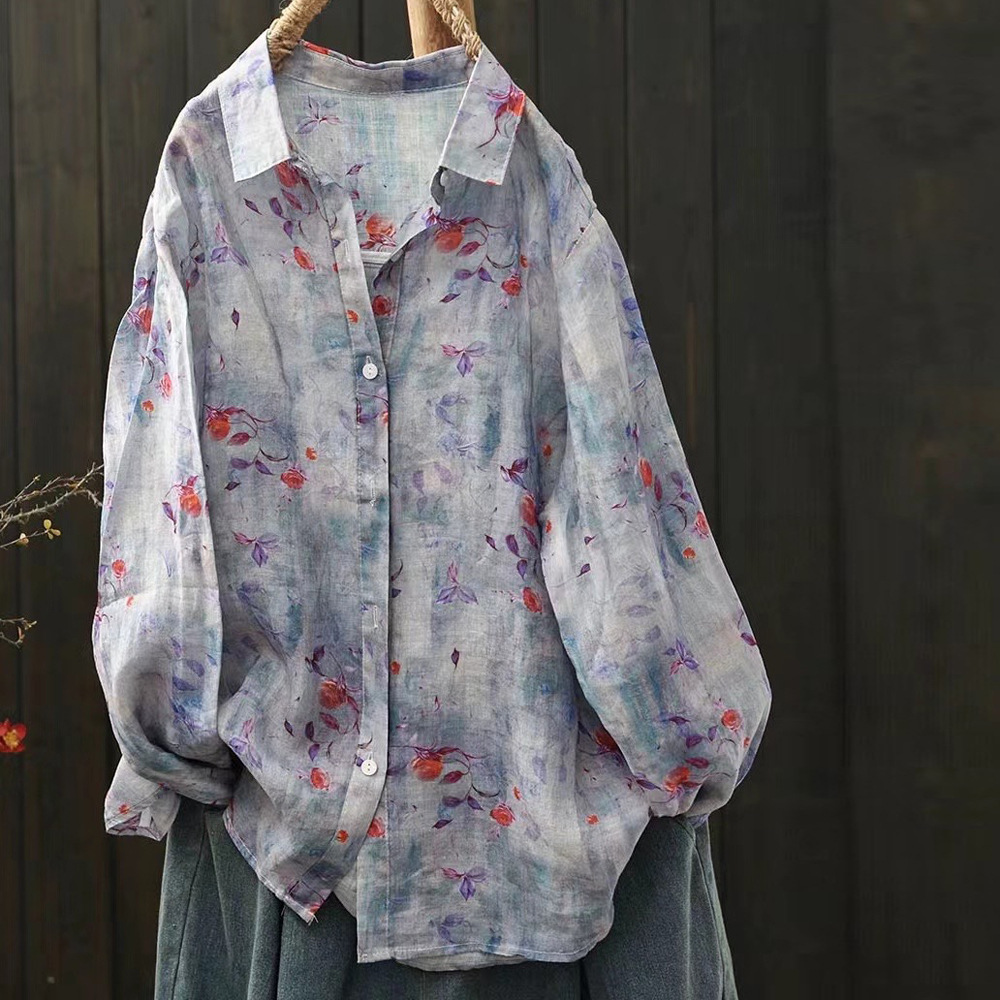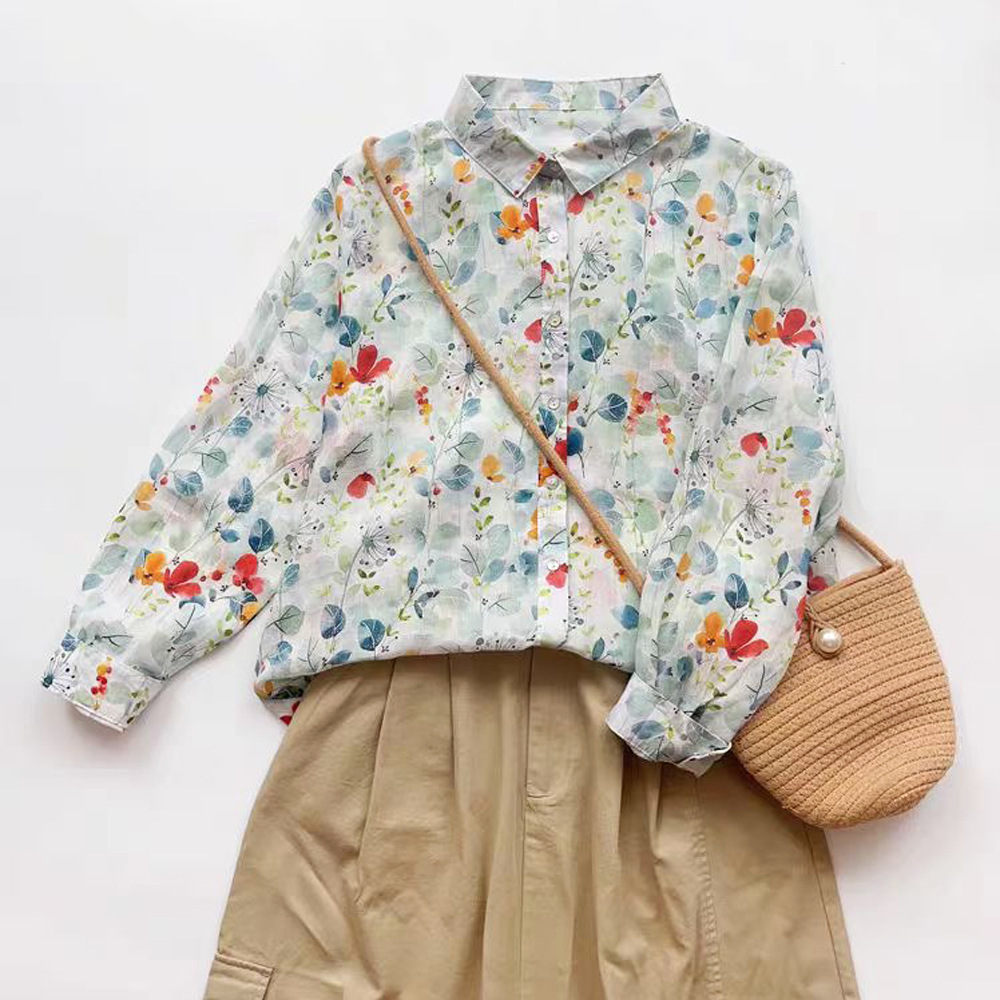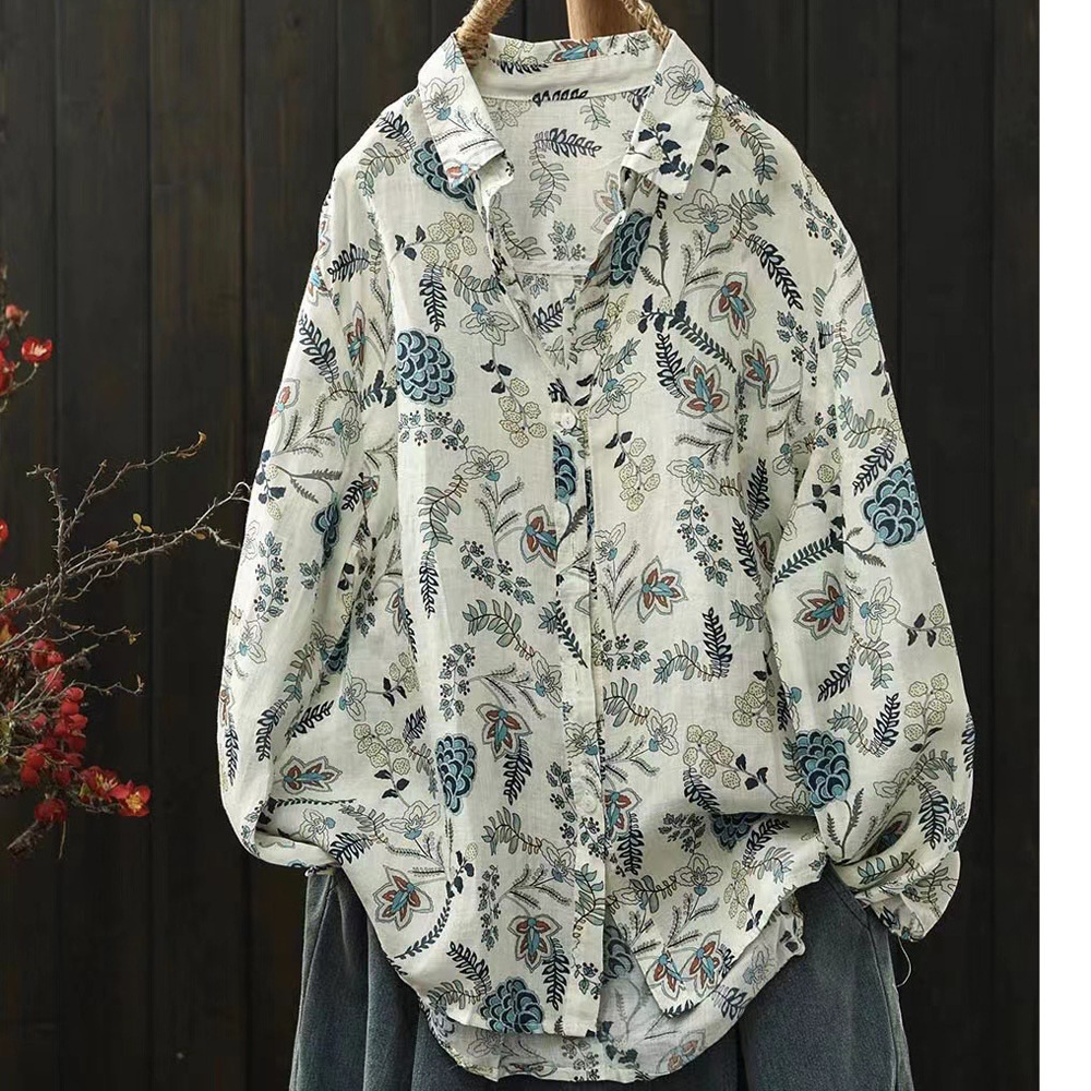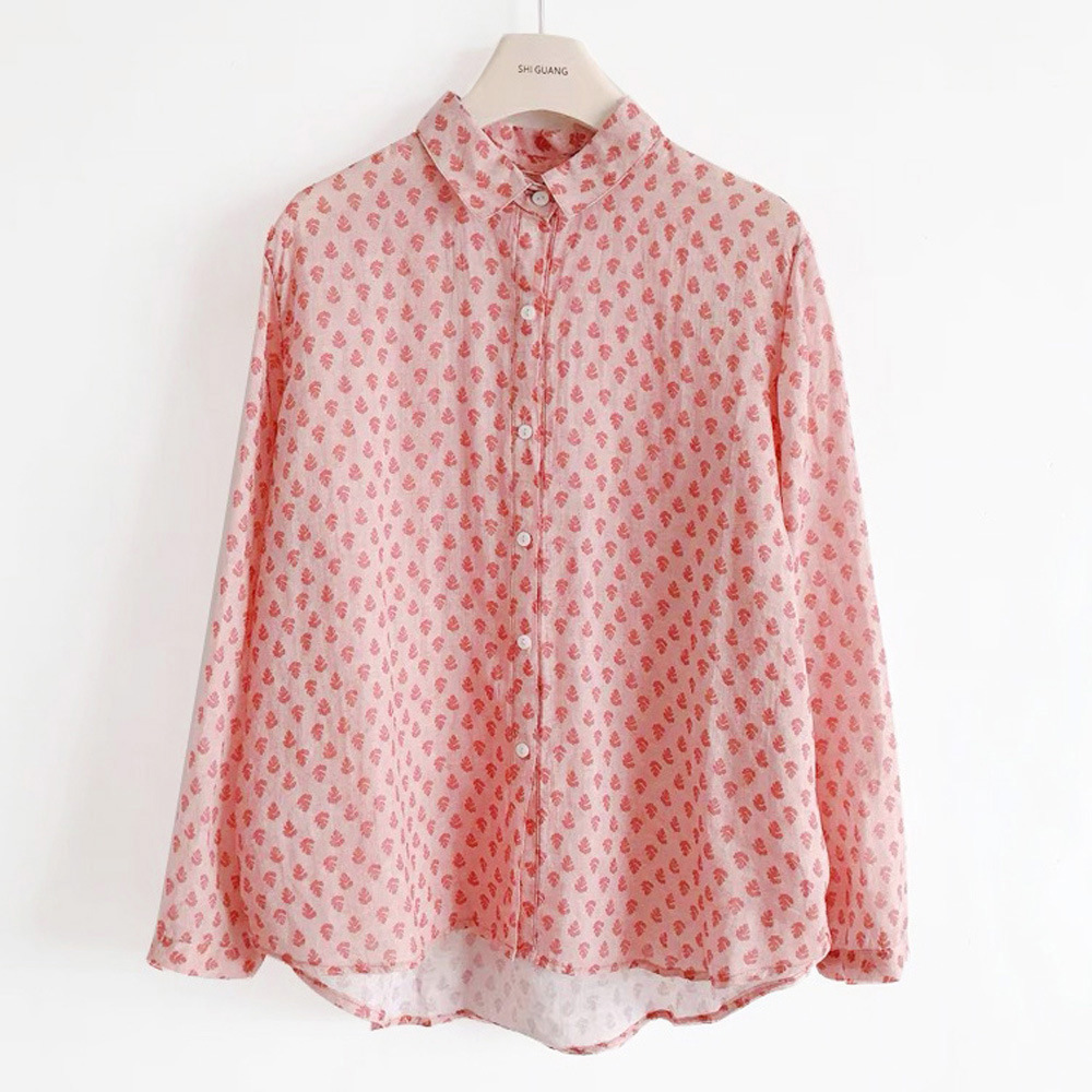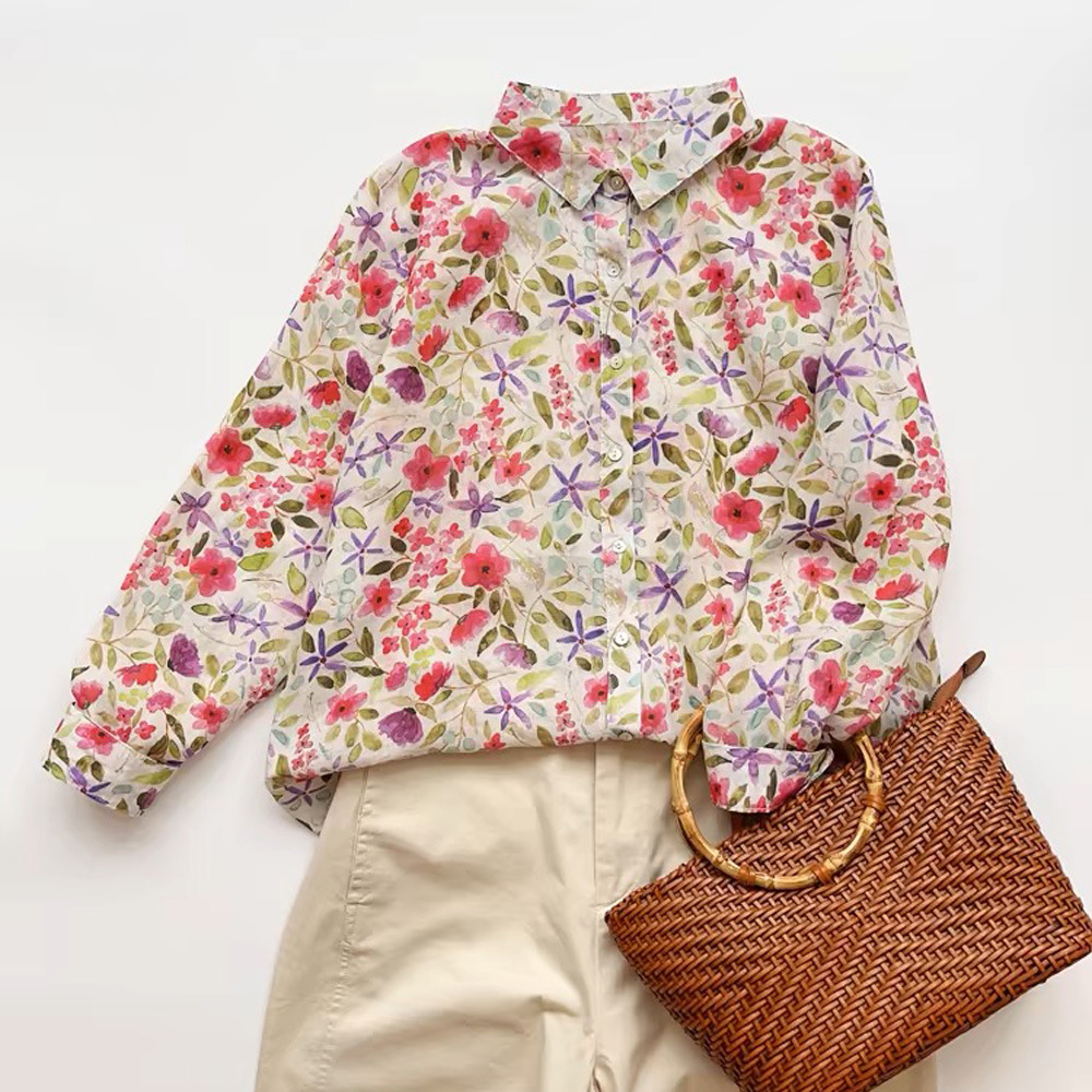 2026 신상 도매 모리걸 스타일 린넨 프린트 셔츠 긴팔 여성용 라펠 플로럴 탑 베이스 레이어 상의스토어 가기
