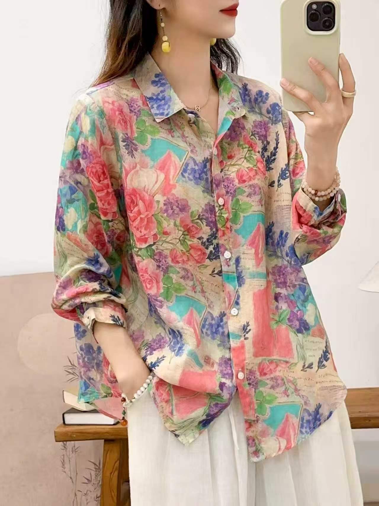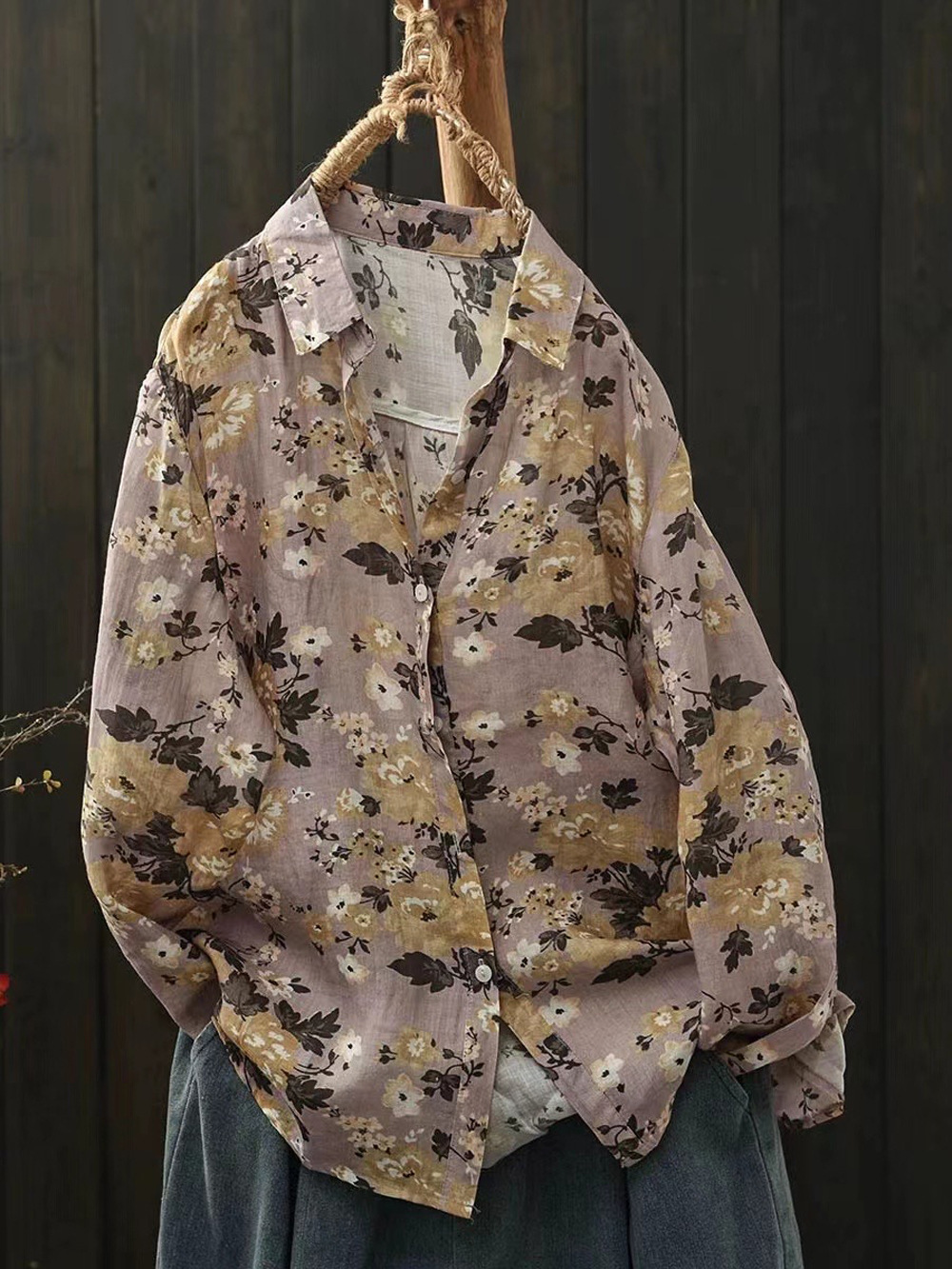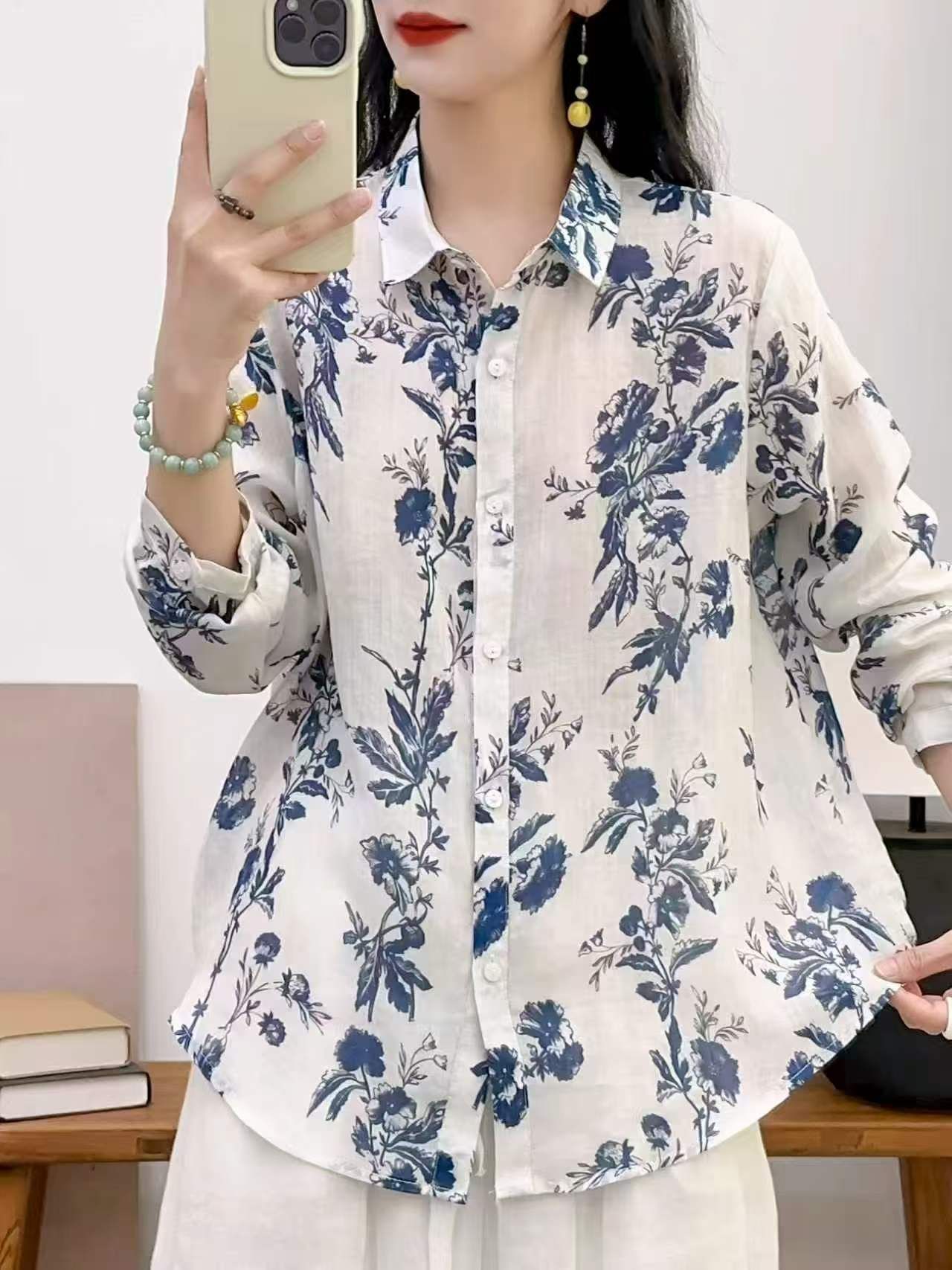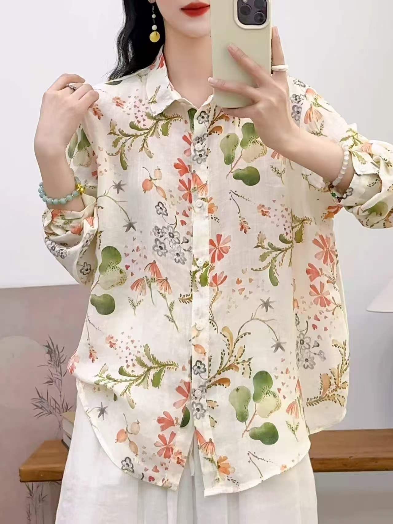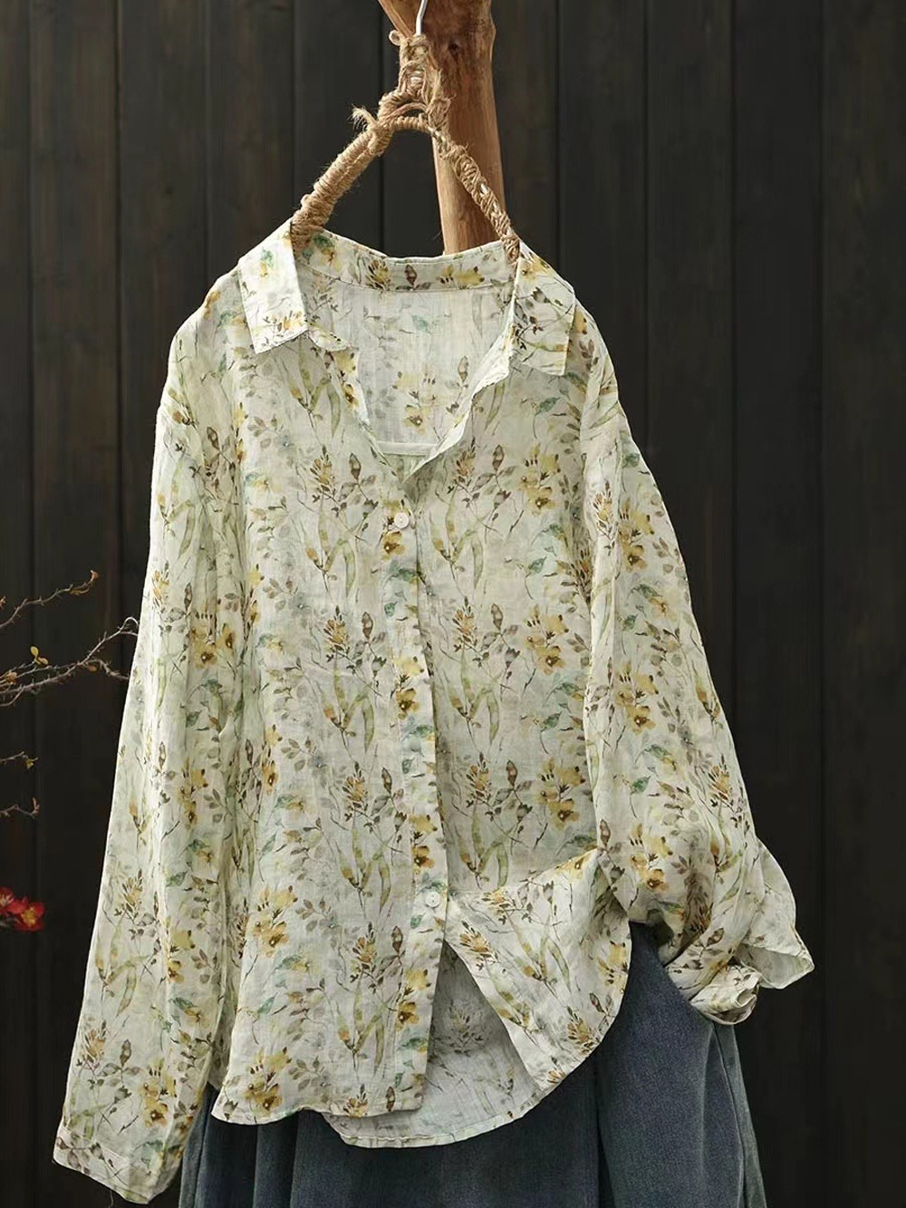 2026 신상 도매 모리걸 스타일 린넨 프린트 셔츠 긴팔 여성용 라펠 플로럴 탑 베이스 레이어 상의스토어 가기