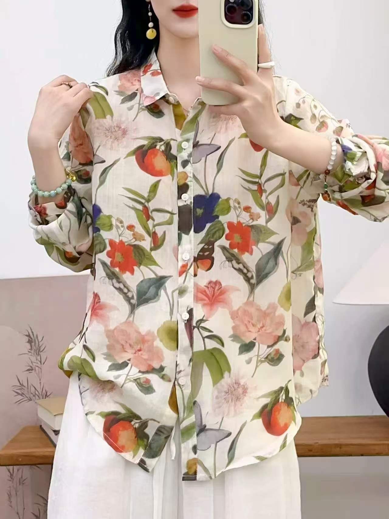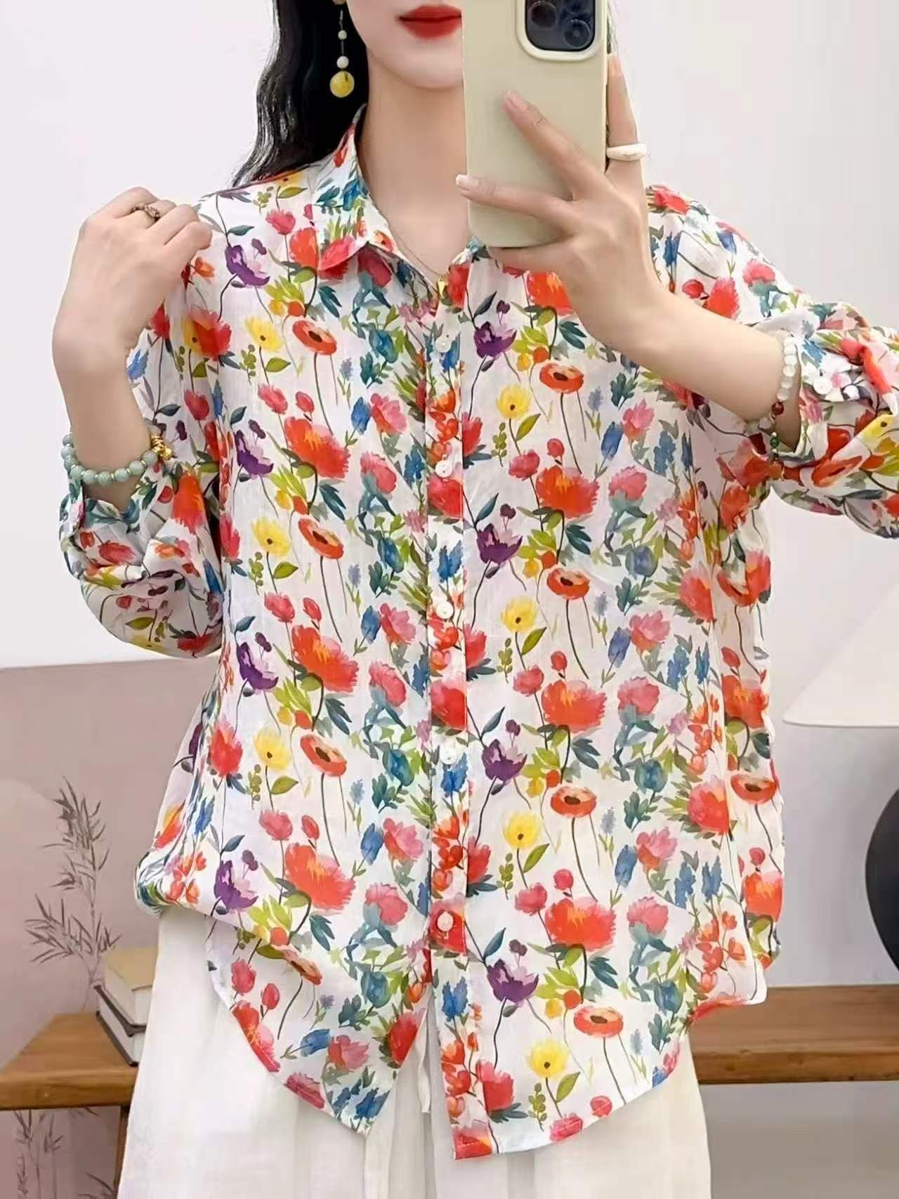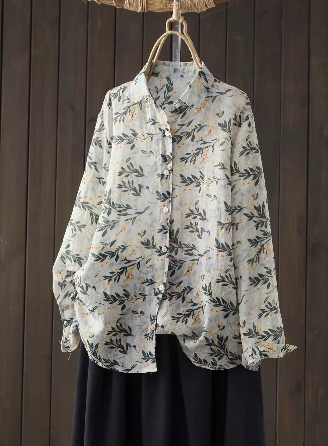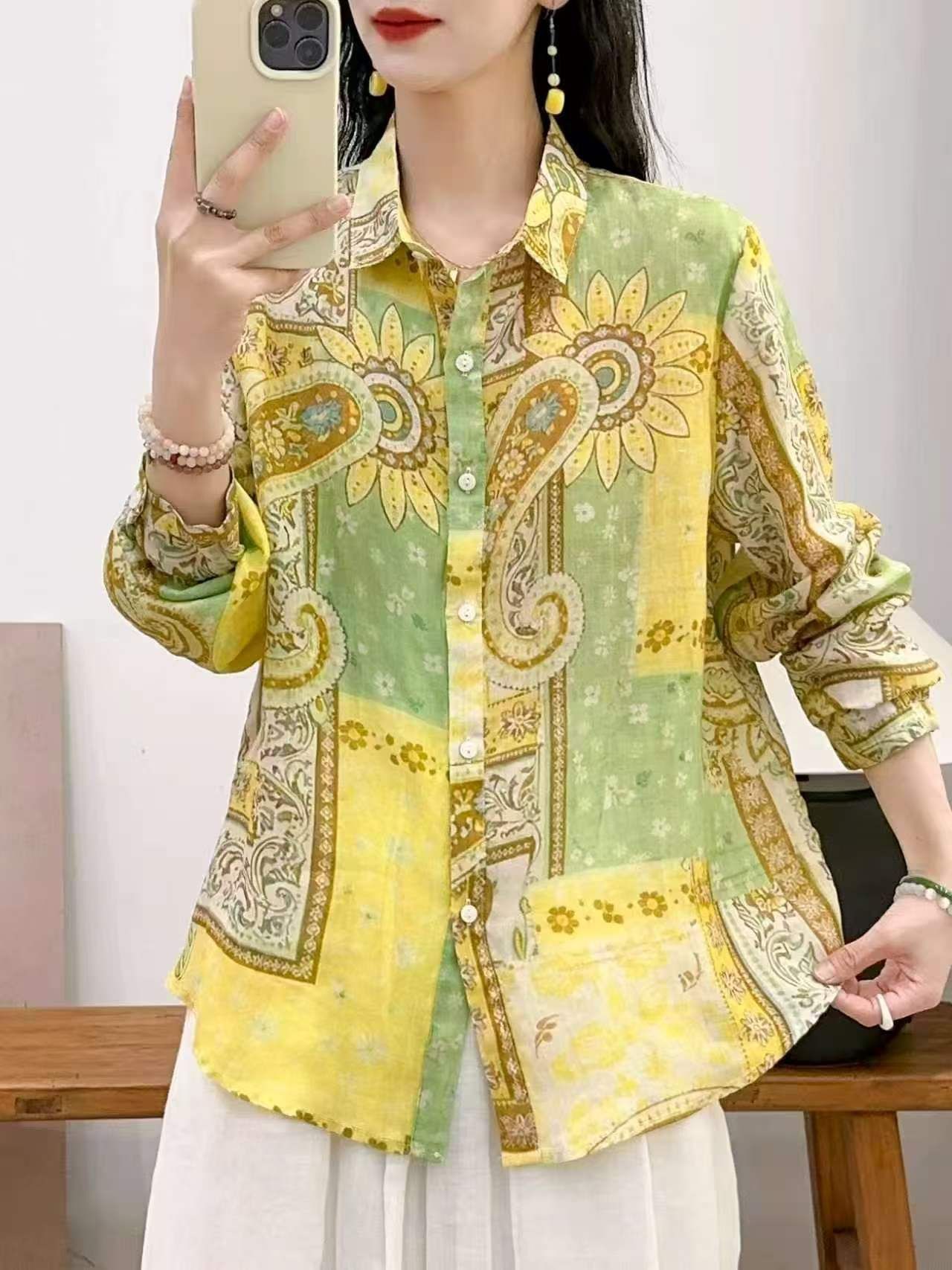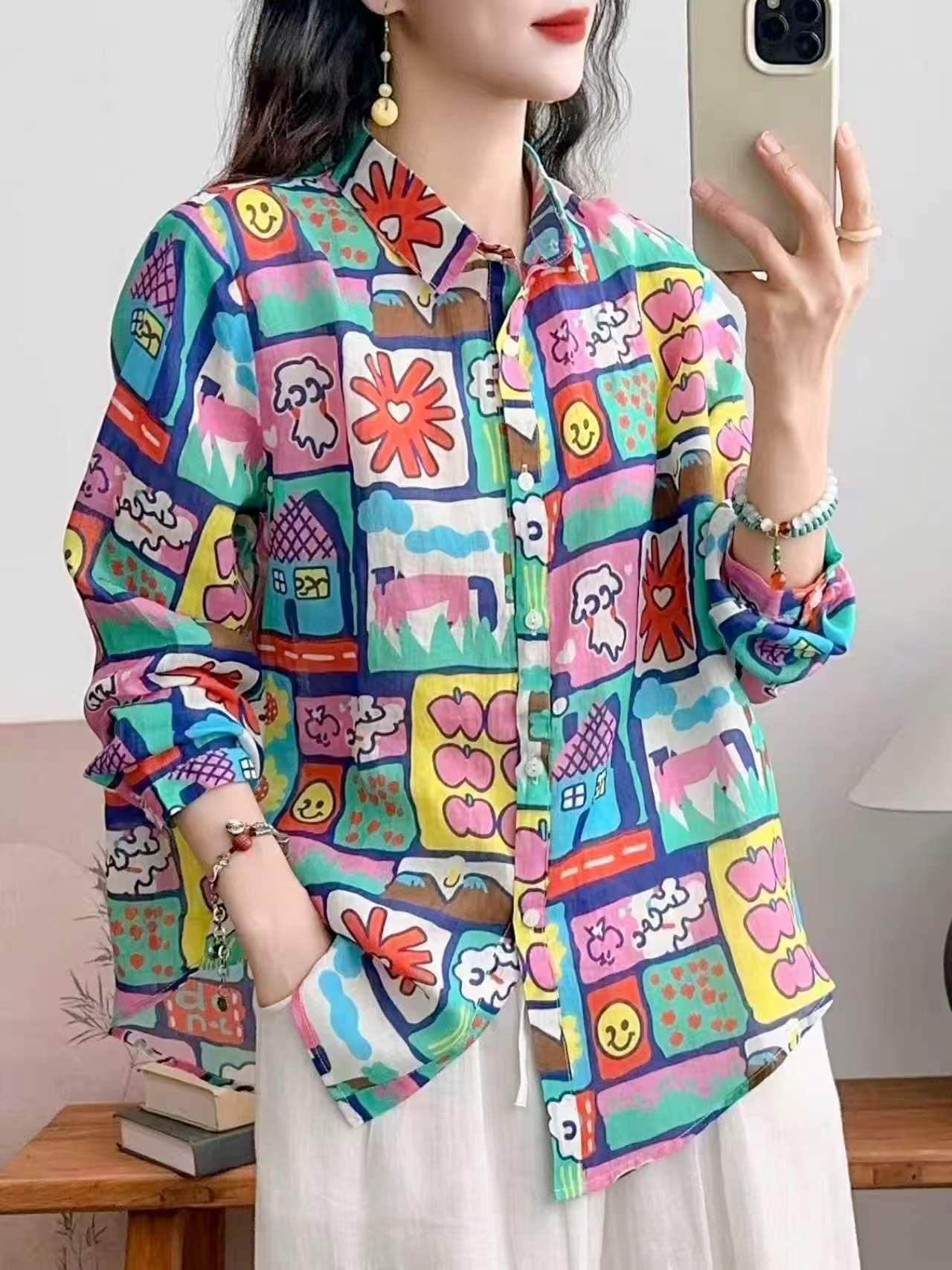 2026 신상 도매 모리걸 스타일 린넨 프린트 셔츠 긴팔 여성용 라펠 플로럴 탑 베이스 레이어 상의스토어 가기