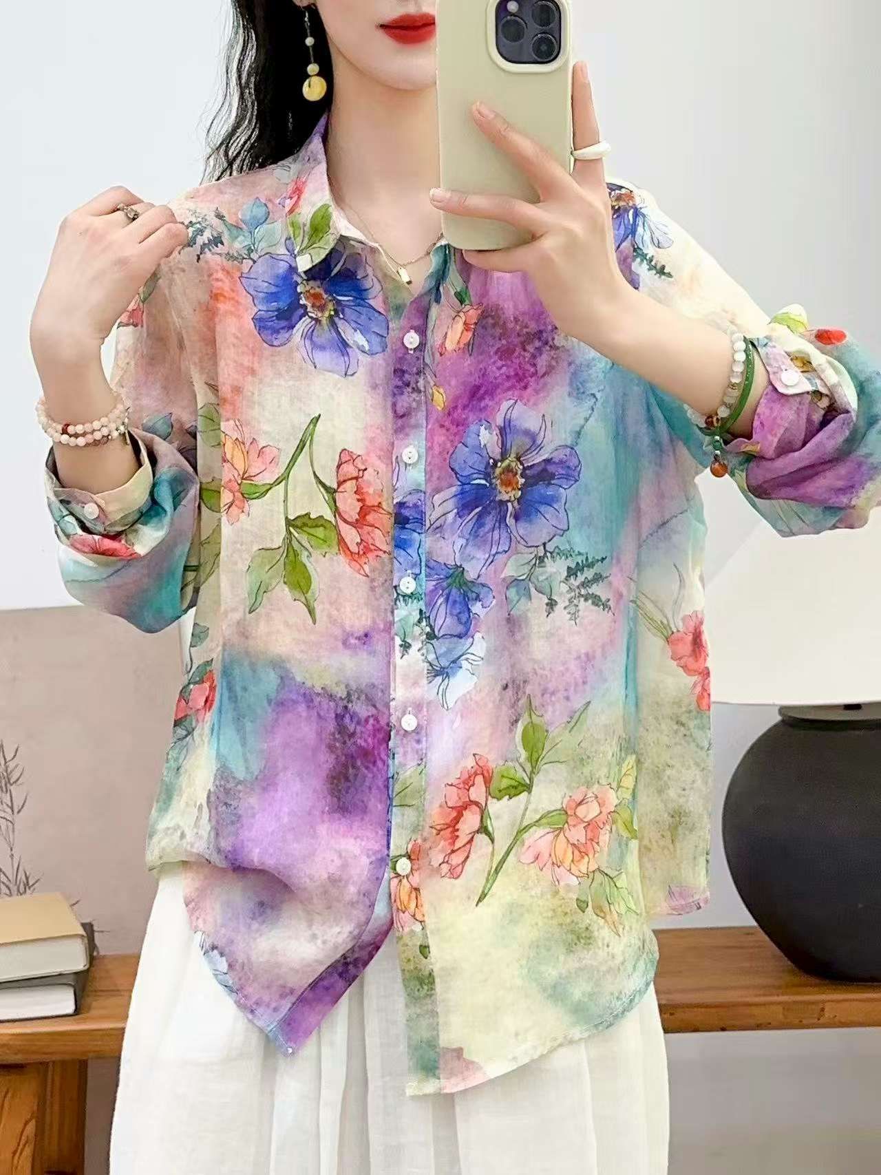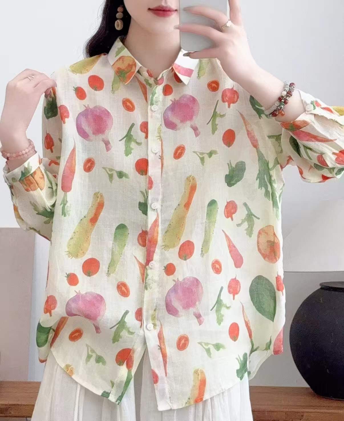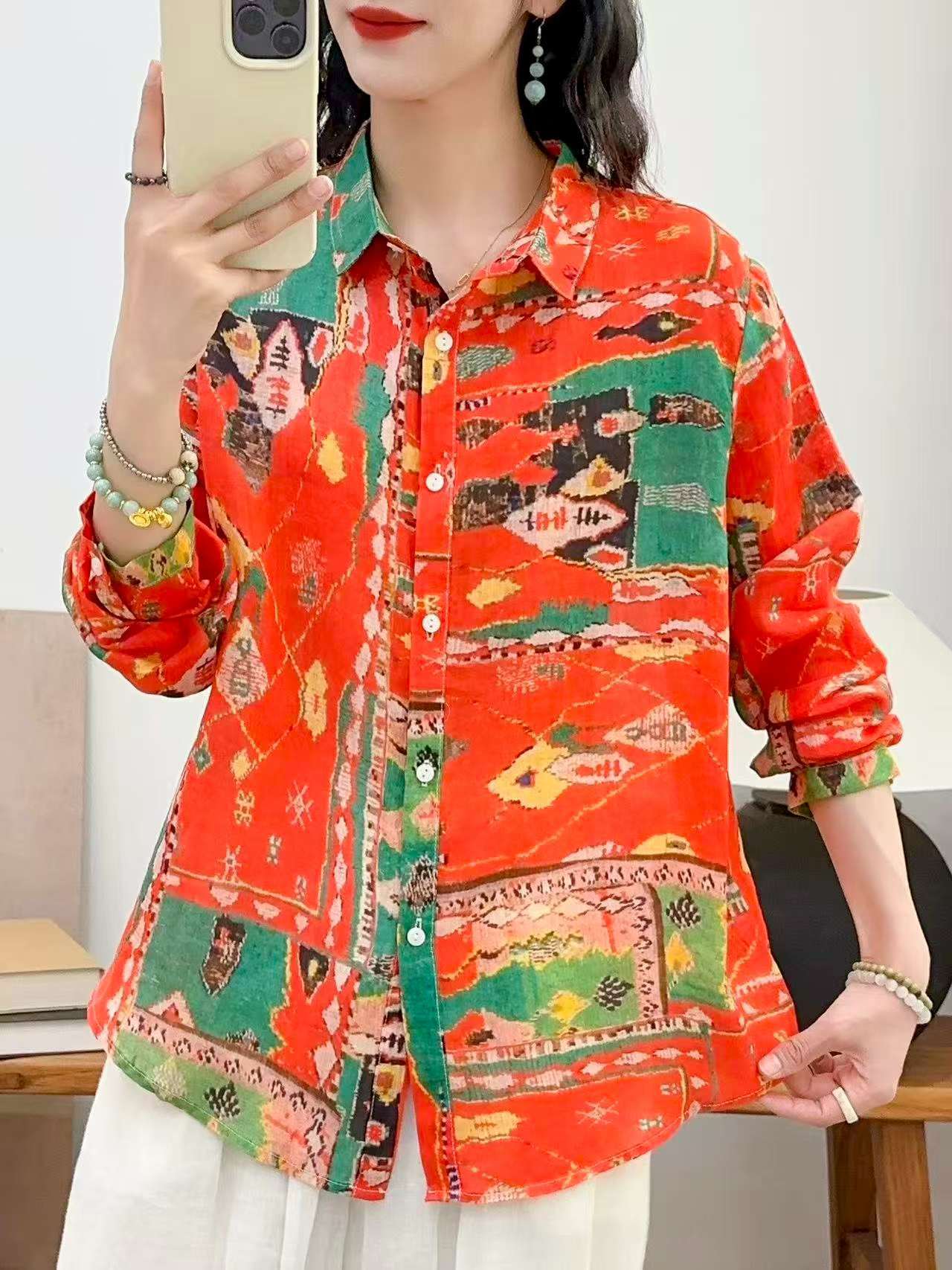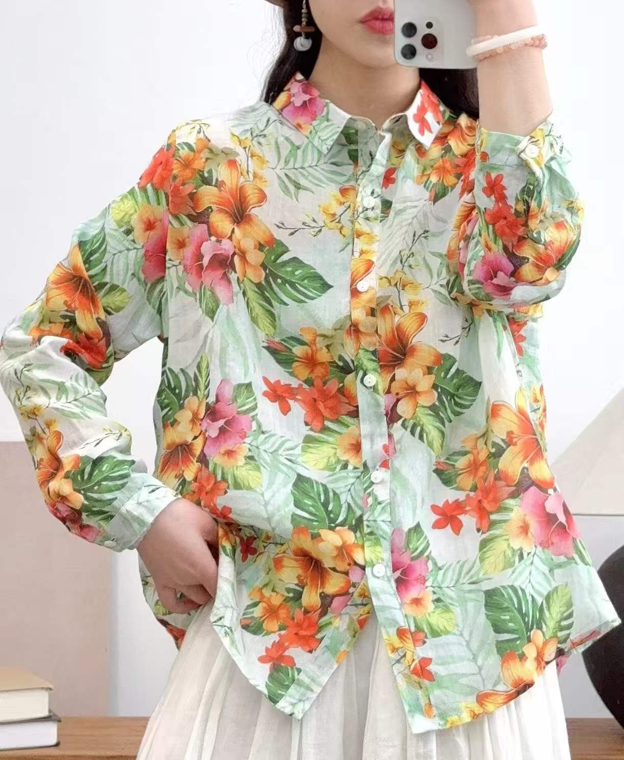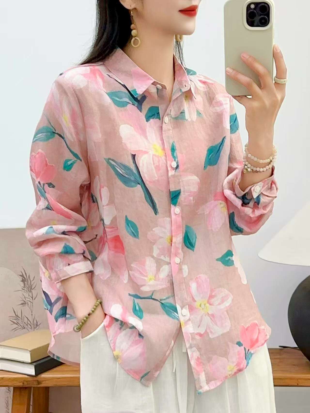 2026 신상 도매 모리걸 스타일 린넨 프린트 셔츠 긴팔 여성용 라펠 플로럴 탑 베이스 레이어 상의스토어 가기