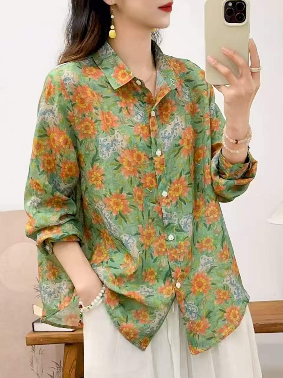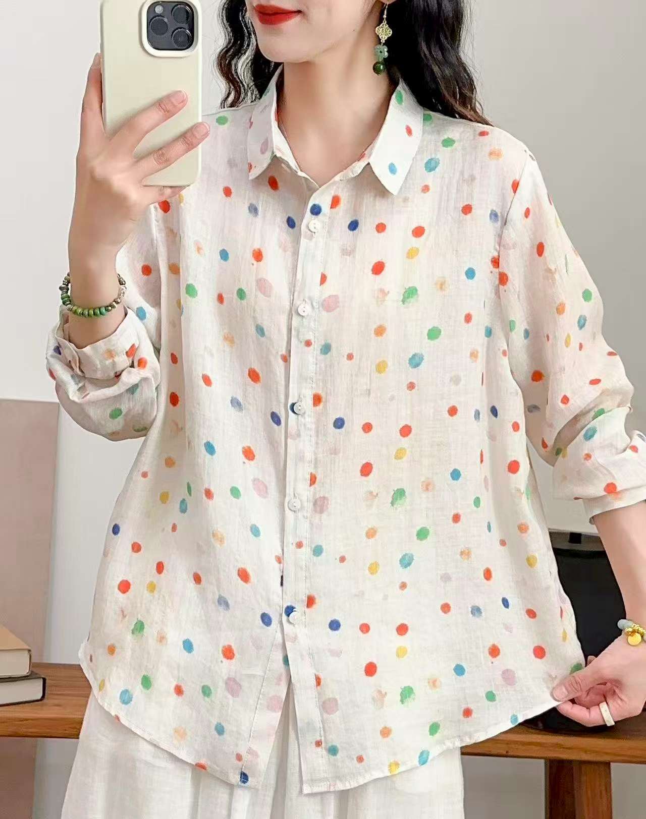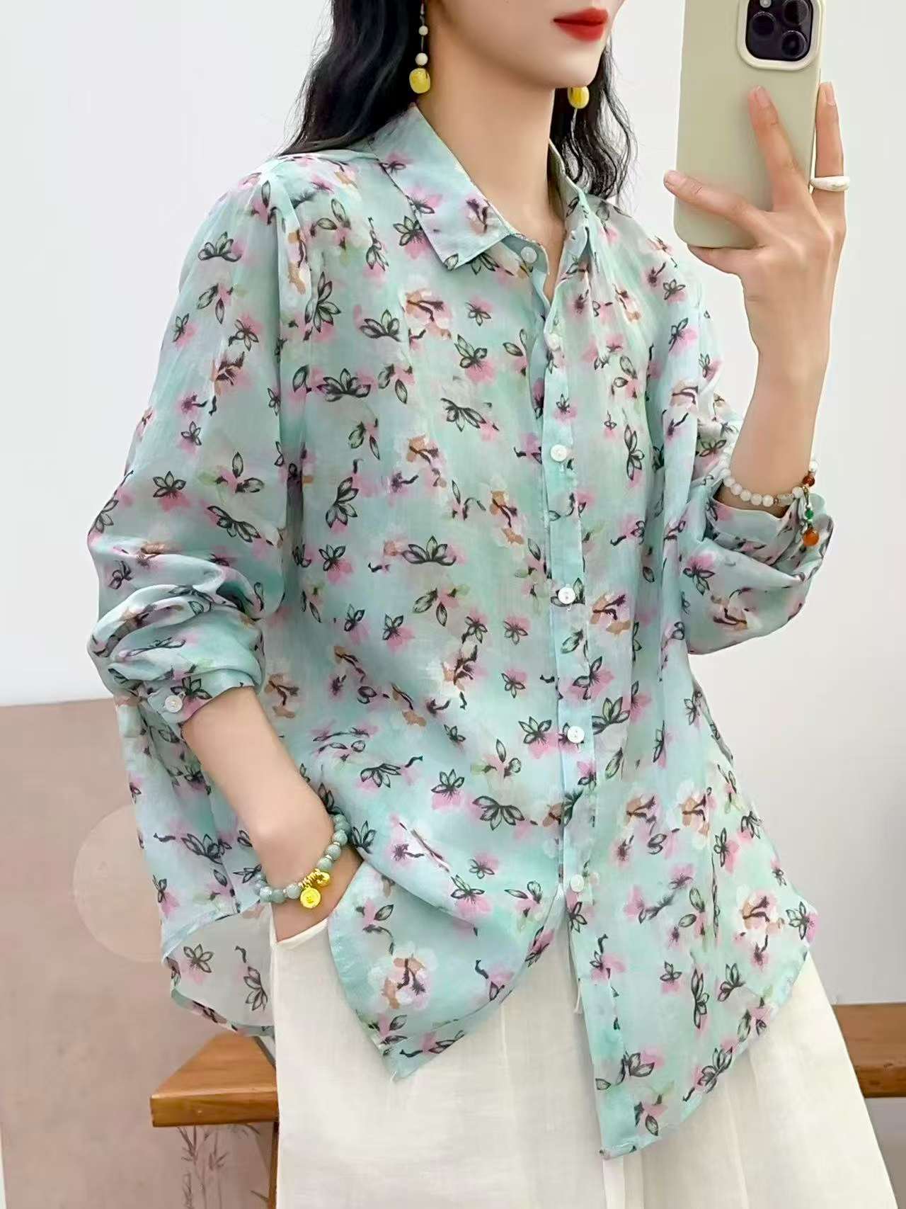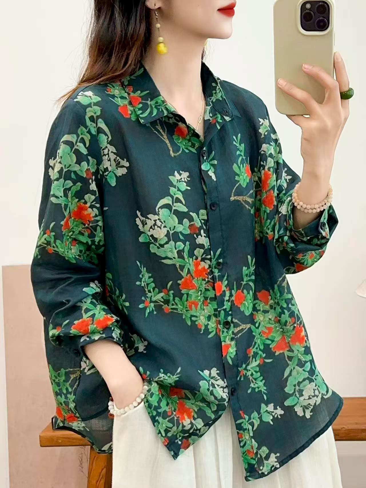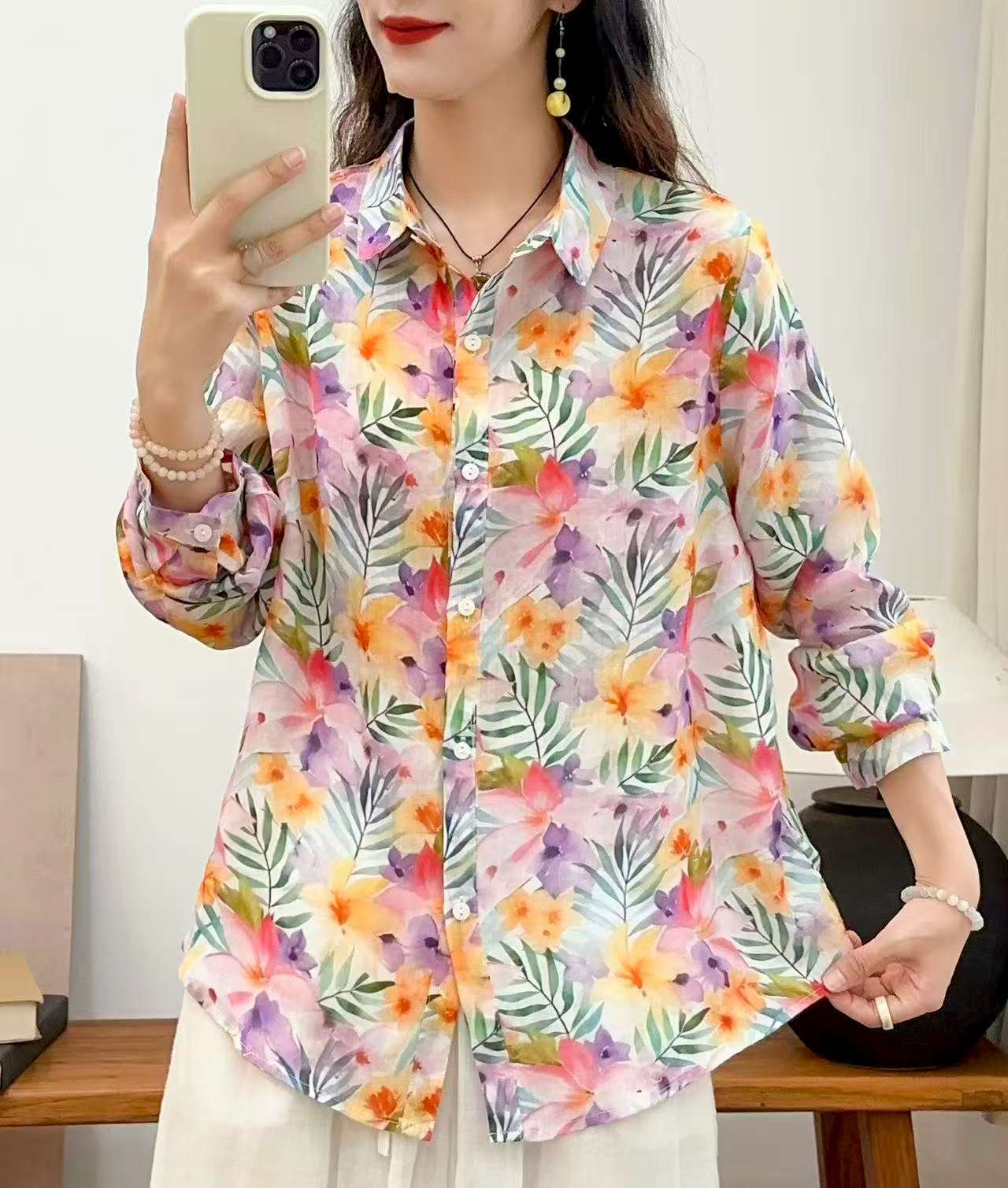 2026 신상 도매 모리걸 스타일 린넨 프린트 셔츠 긴팔 여성용 라펠 플로럴 탑 베이스 레이어 상의스토어 가기