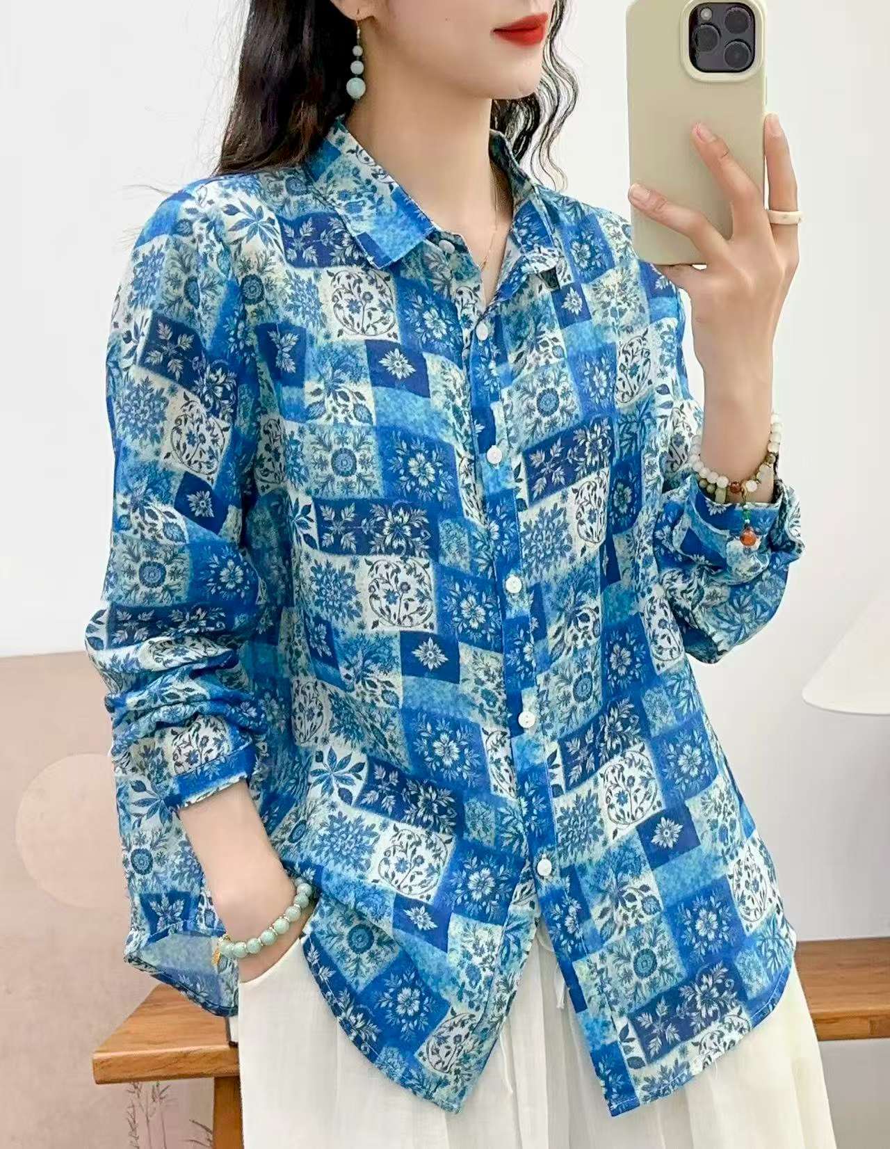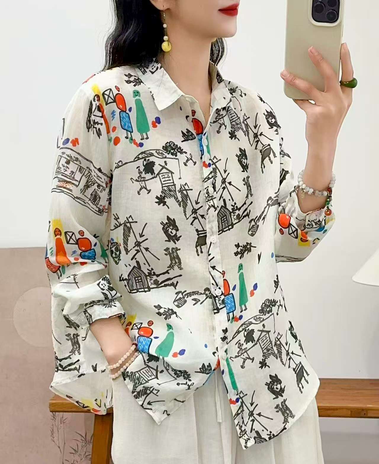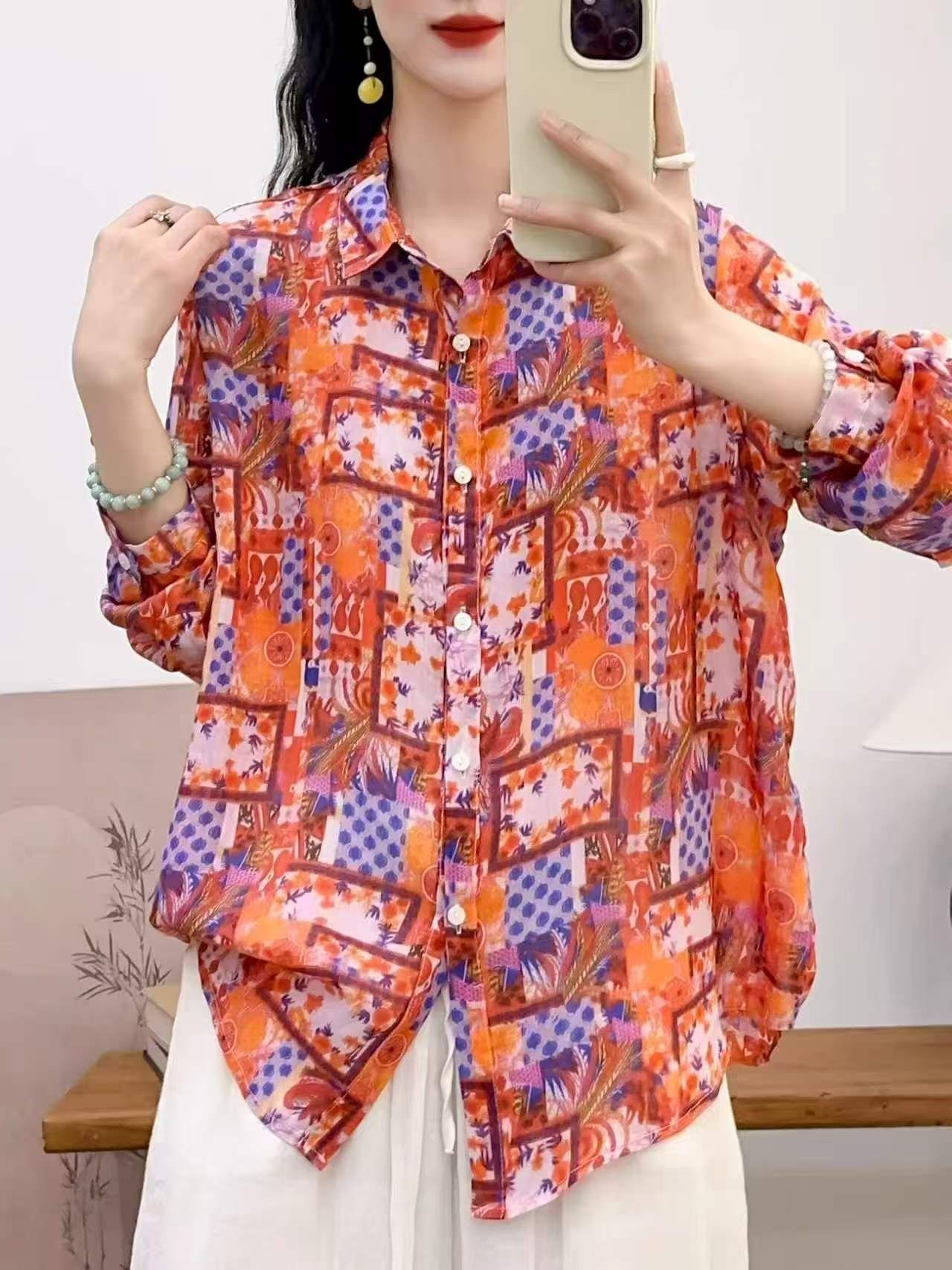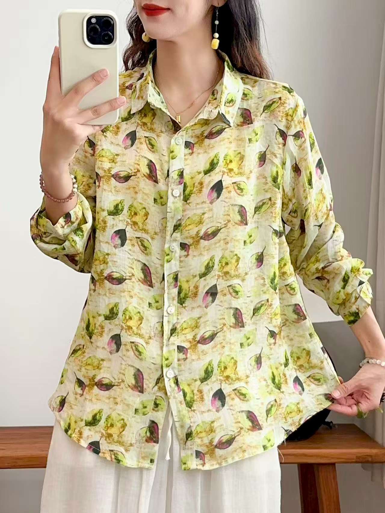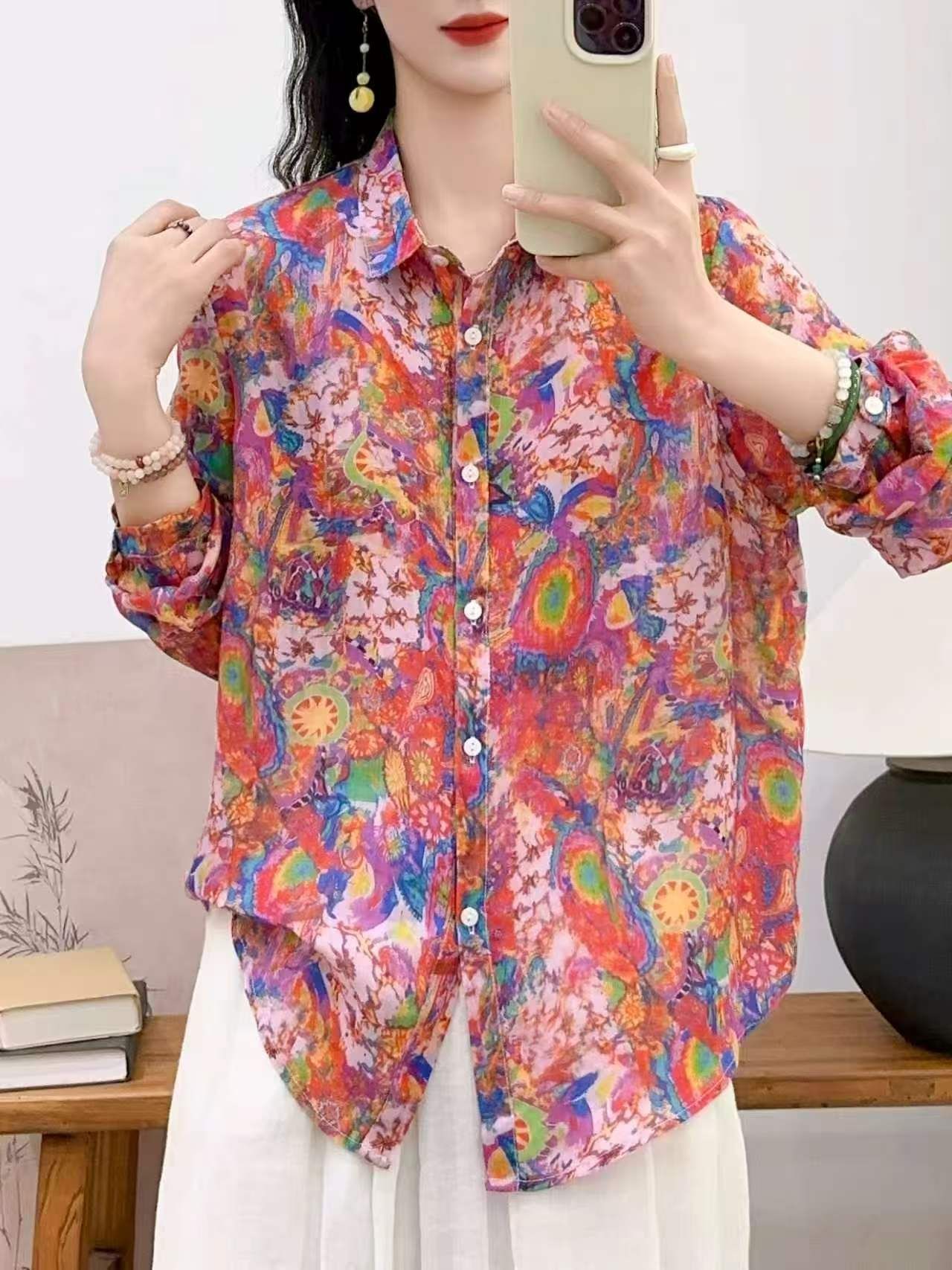 2026 신상 도매 모리걸 스타일 린넨 프린트 셔츠 긴팔 여성용 라펠 플로럴 탑 베이스 레이어 상의스토어 가기