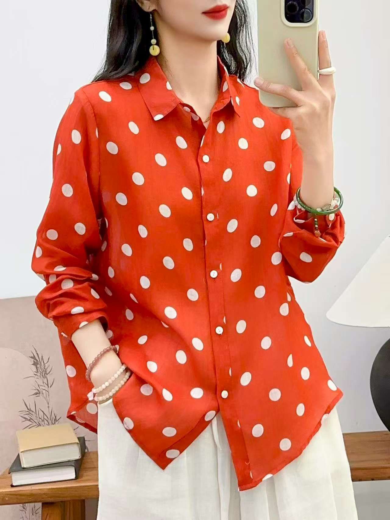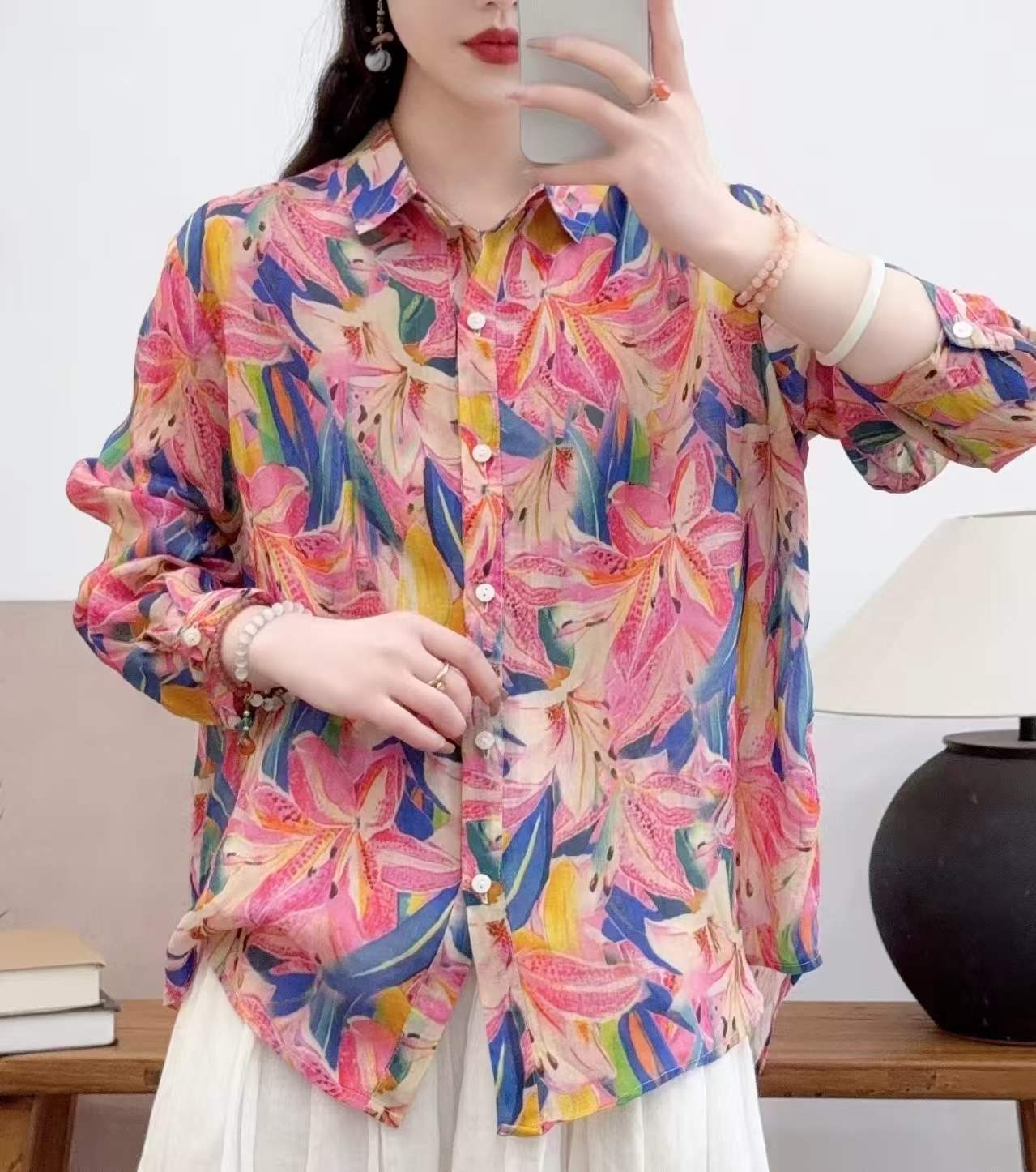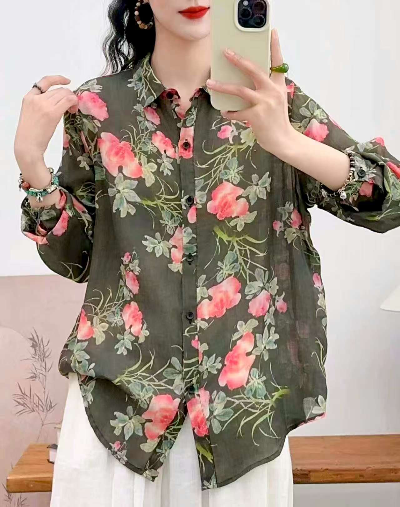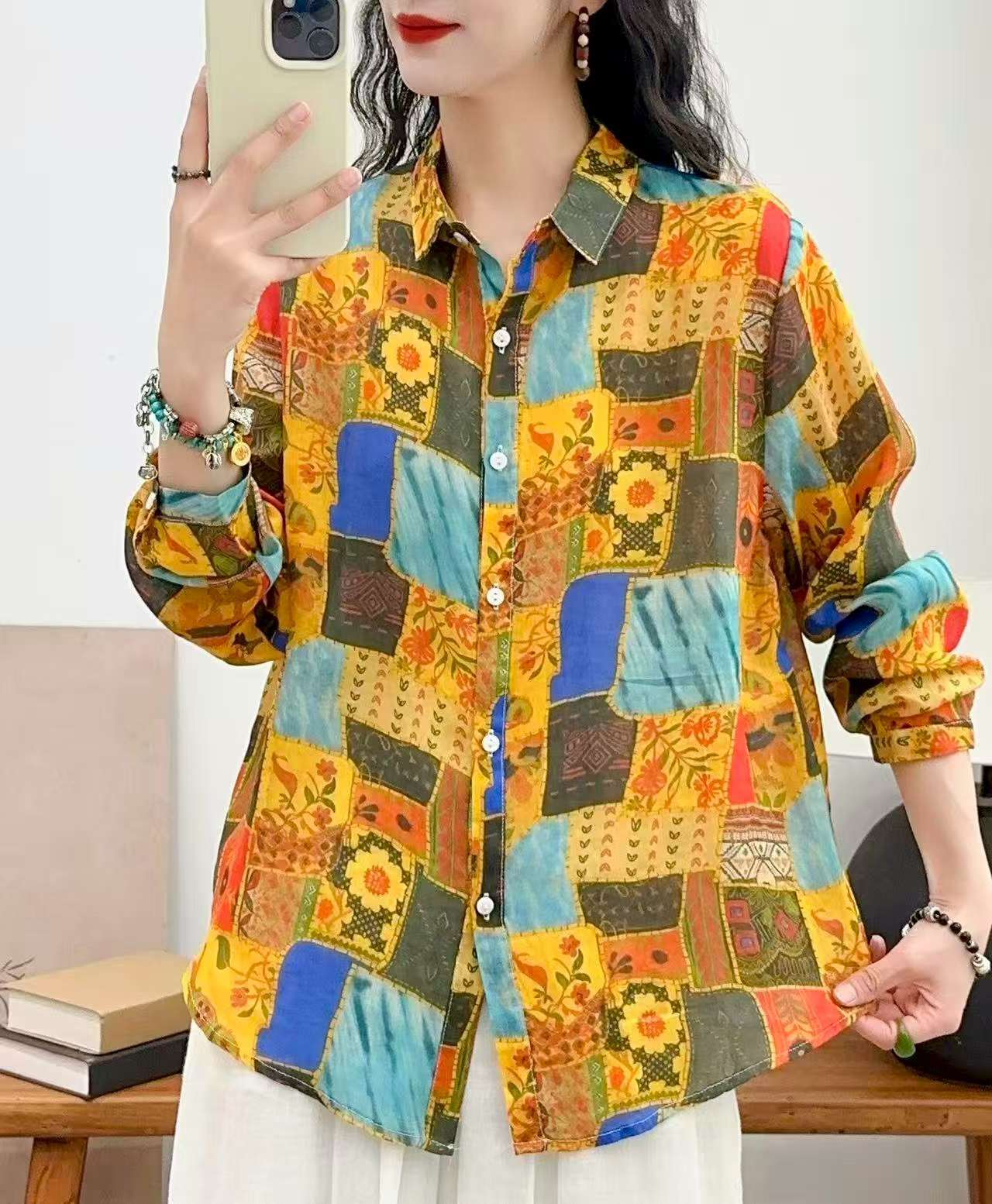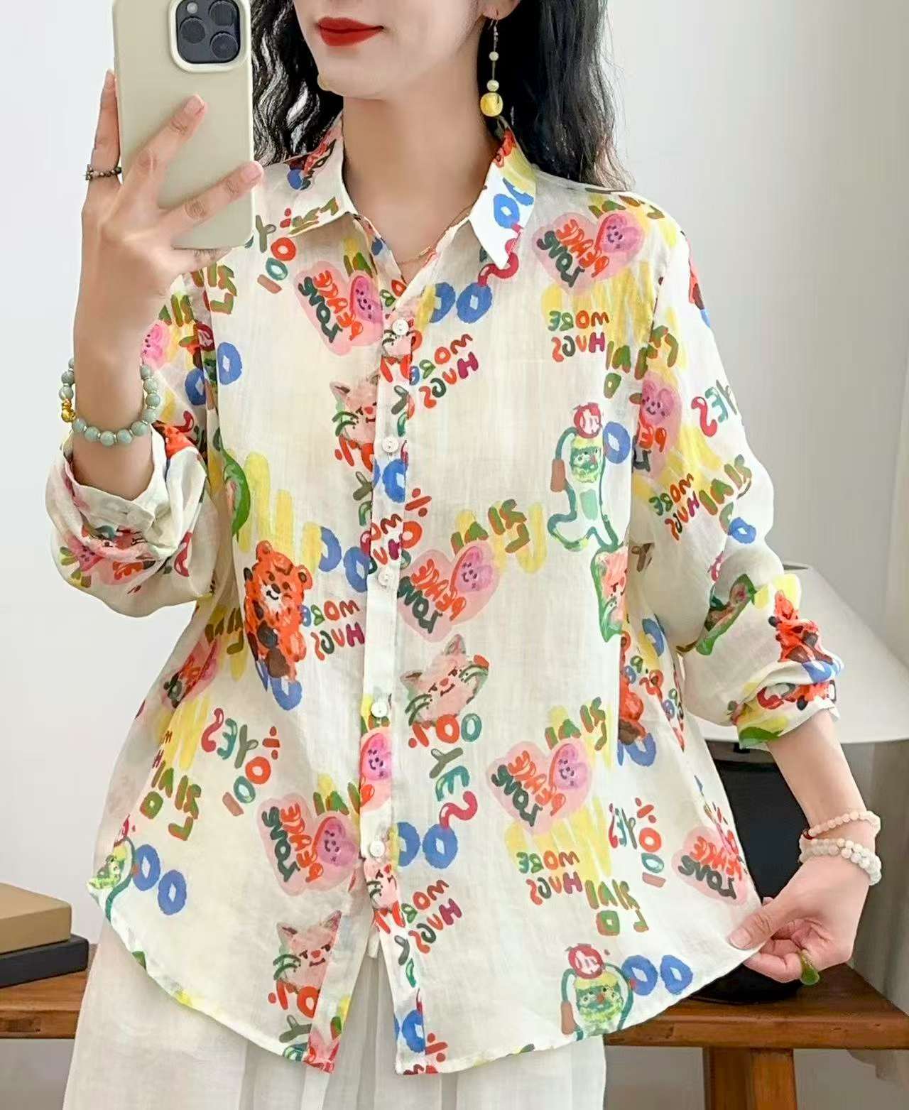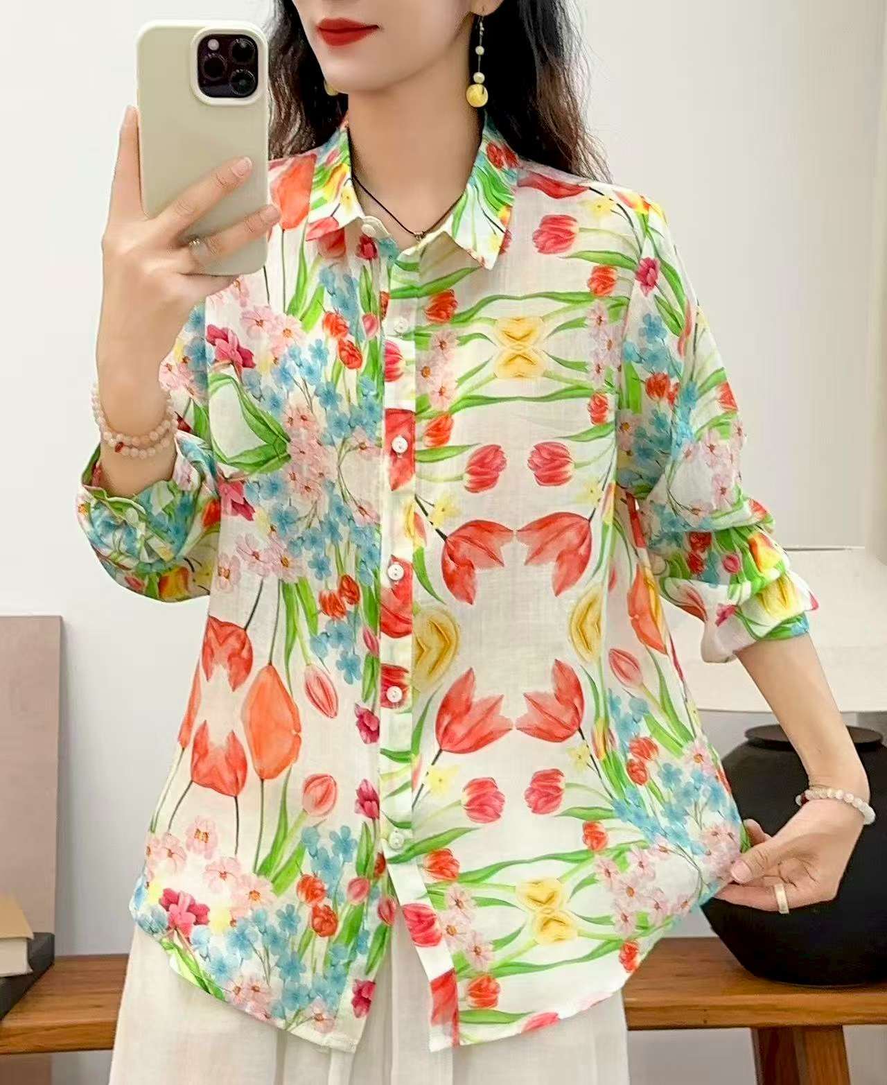2026 신상 도매 모리걸 스타일 린넨 프린트 셔츠 긴팔 여성용 라펠 플로럴 탑 베이스 레이어 상의스토어 가기