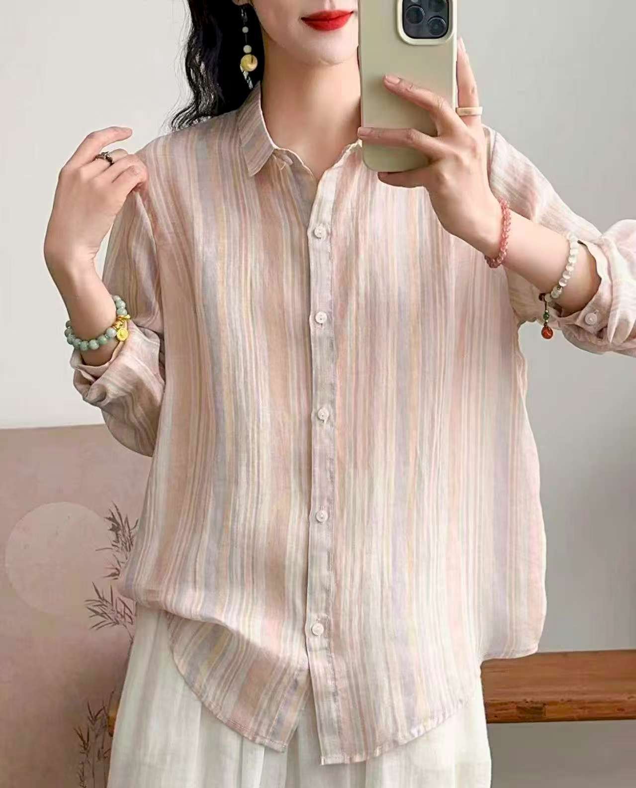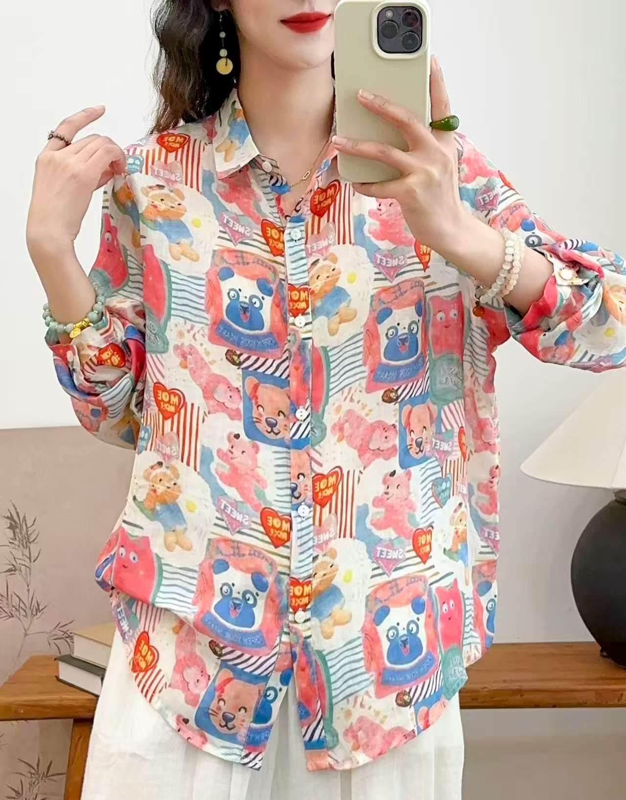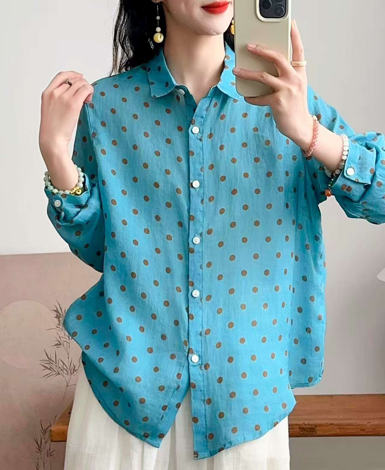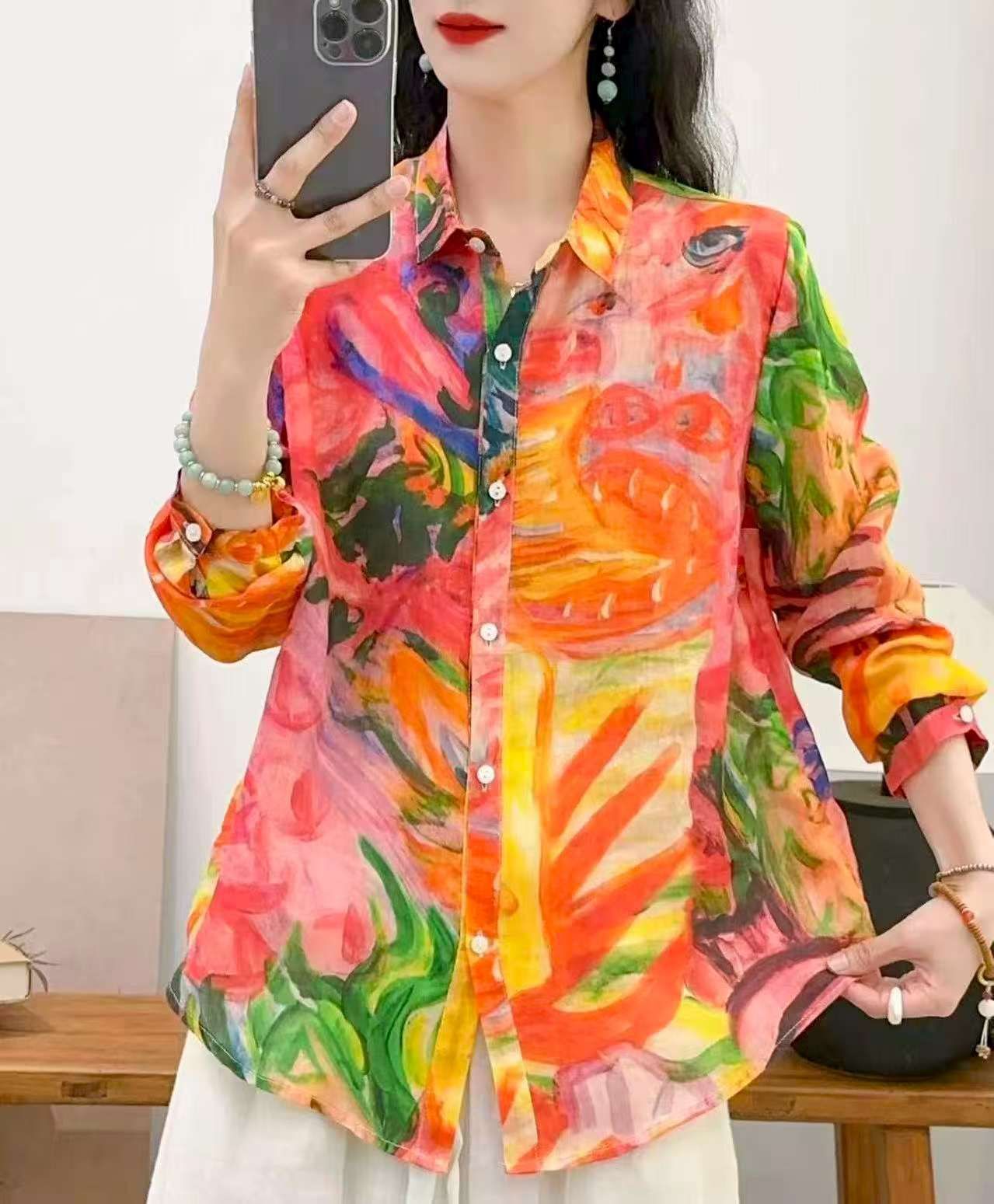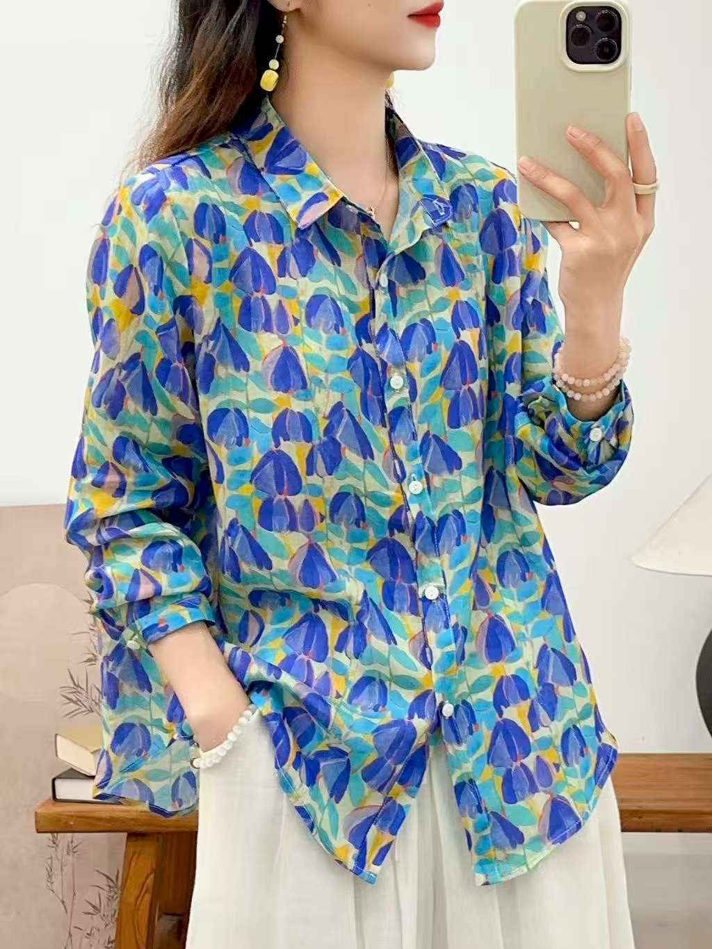 2026 신상 도매 모리걸 스타일 린넨 프린트 셔츠 긴팔 여성용 라펠 플로럴 탑 베이스 레이어 상의스토어 가기