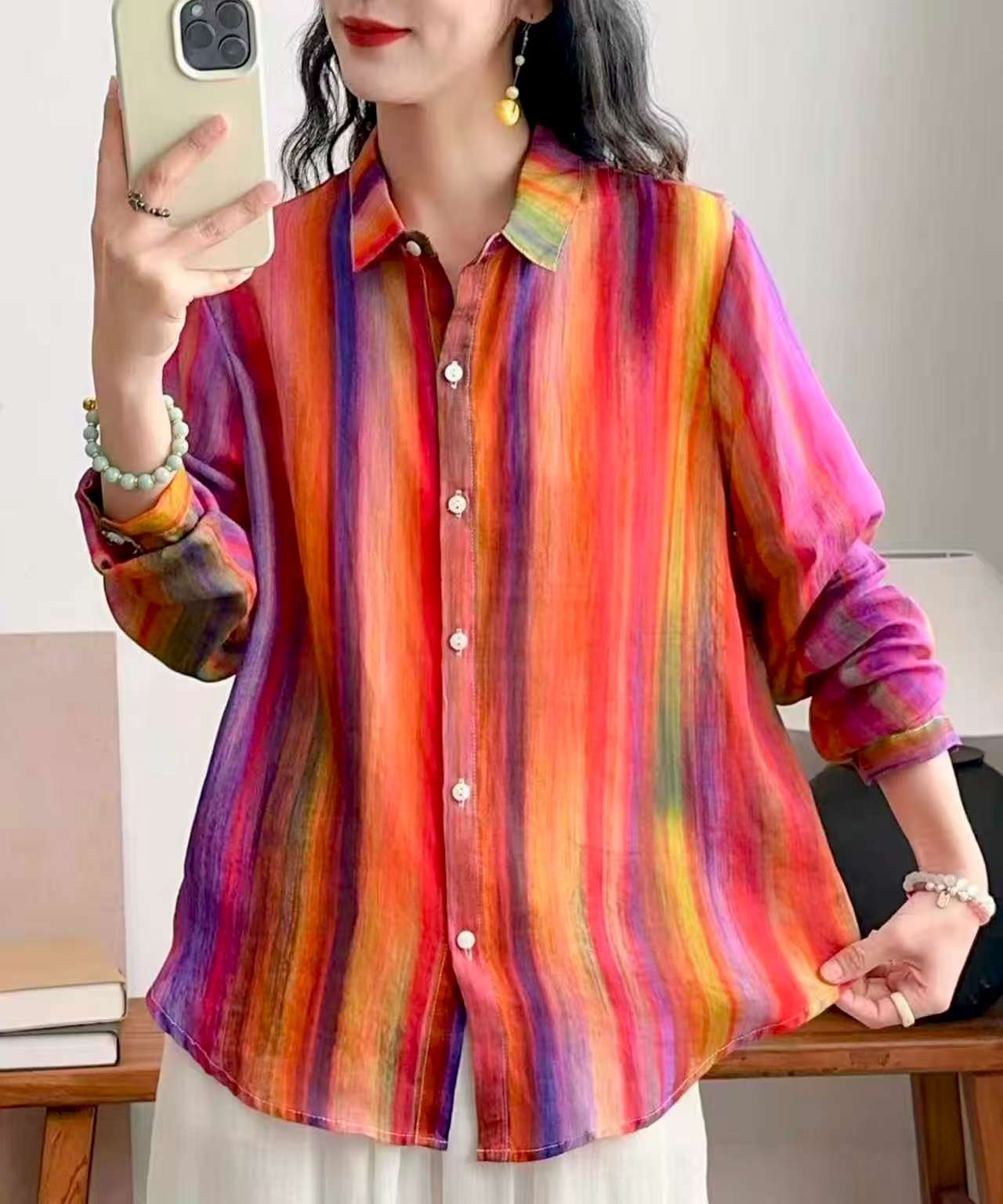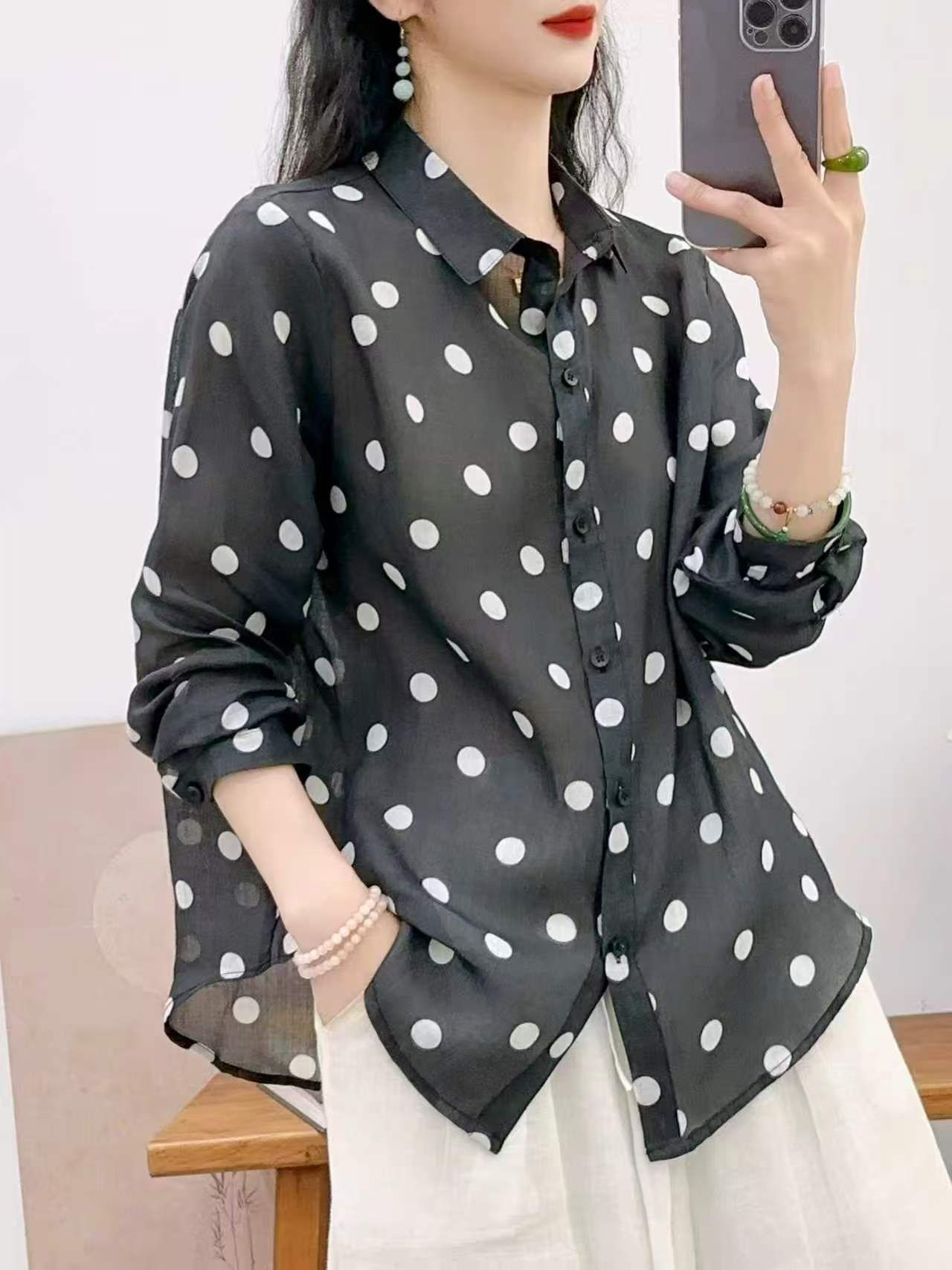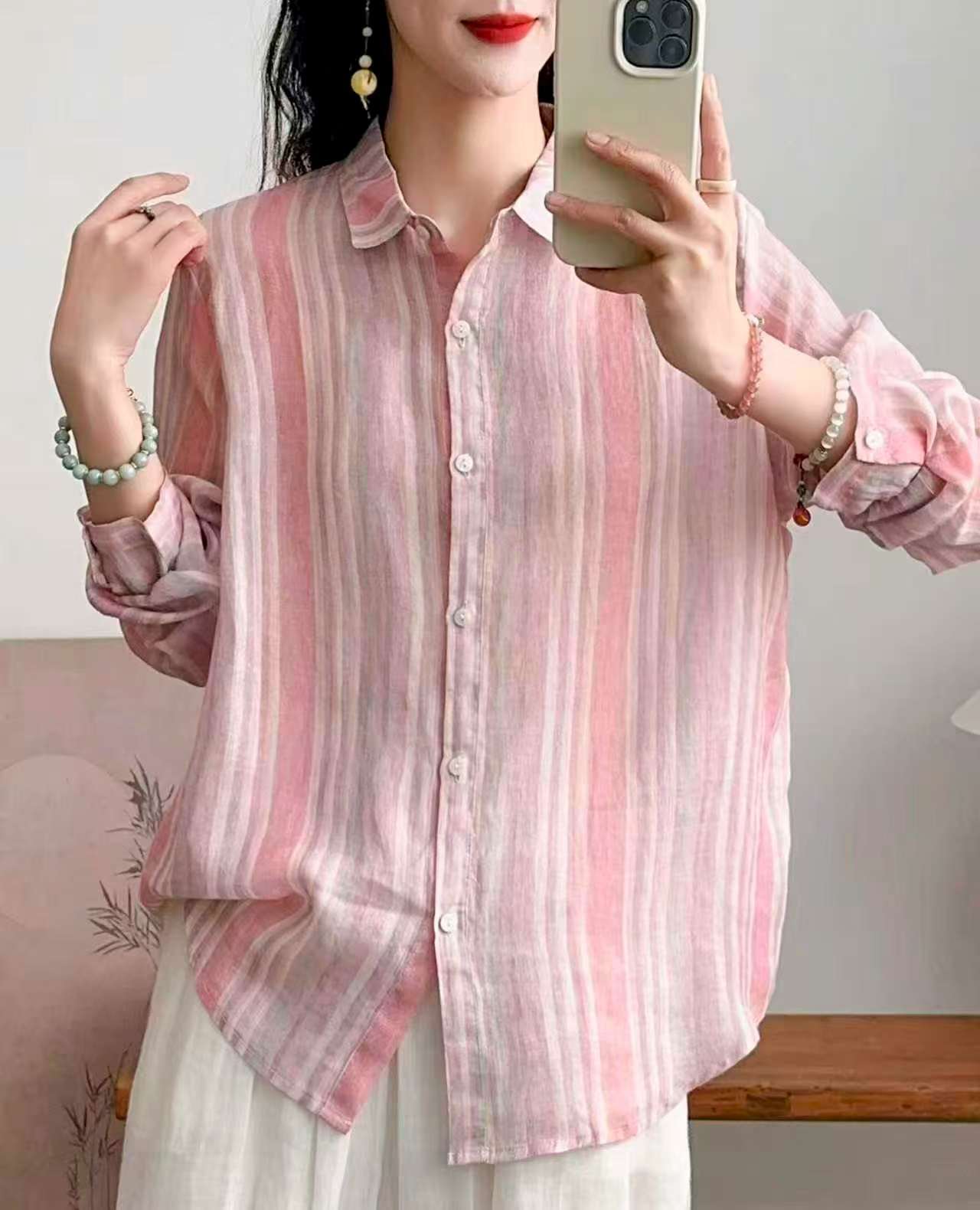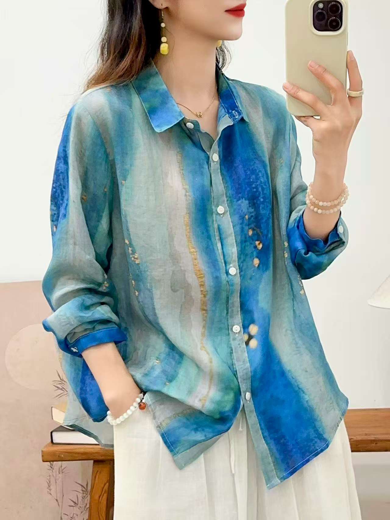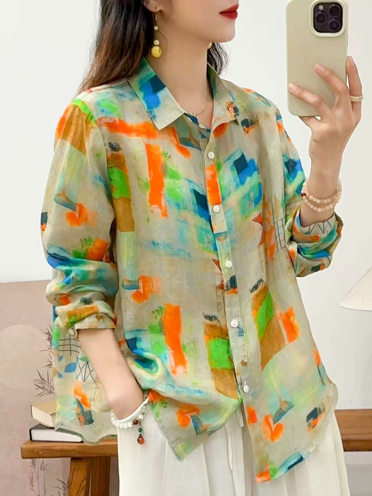 2026 신상 도매 모리걸 스타일 린넨 프린트 셔츠 긴팔 여성용 라펠 플로럴 탑 베이스 레이어 상의스토어 가기