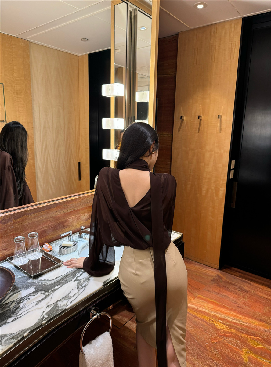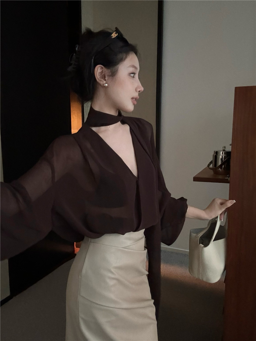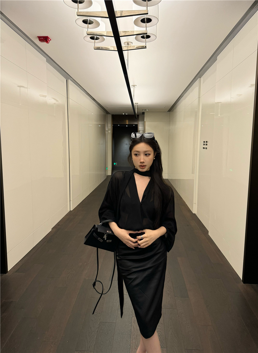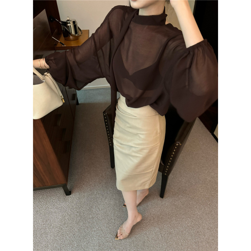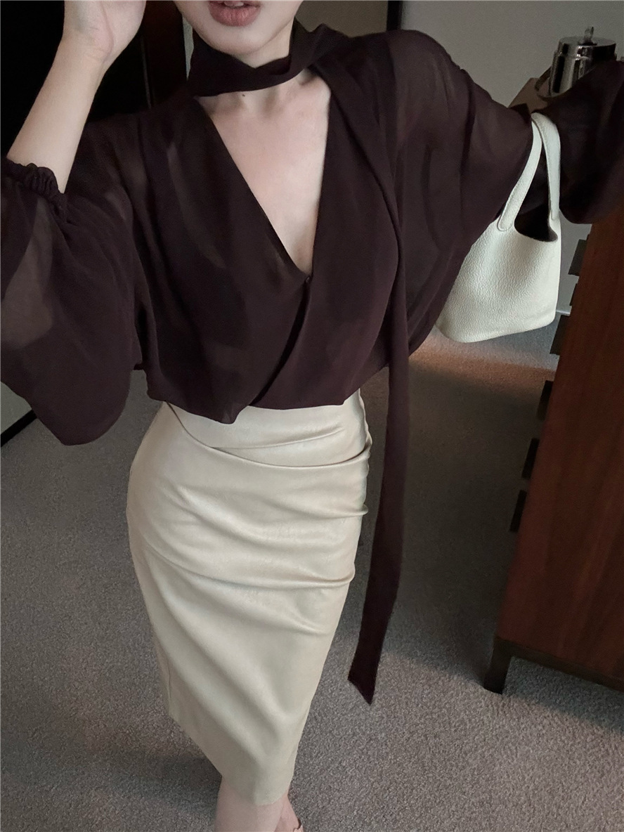 스파이스 소녀 사이 파인애플 가을 섹시한 페니 그레이드 얇은 교수형 목 스트랩 긴 소매 셔츠 높은 허리 스트레이트 튜브 분할 엉덩이 여성
