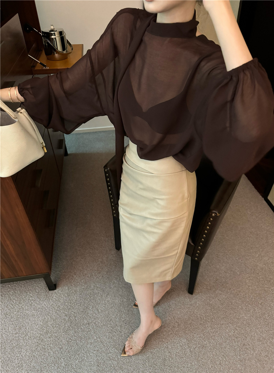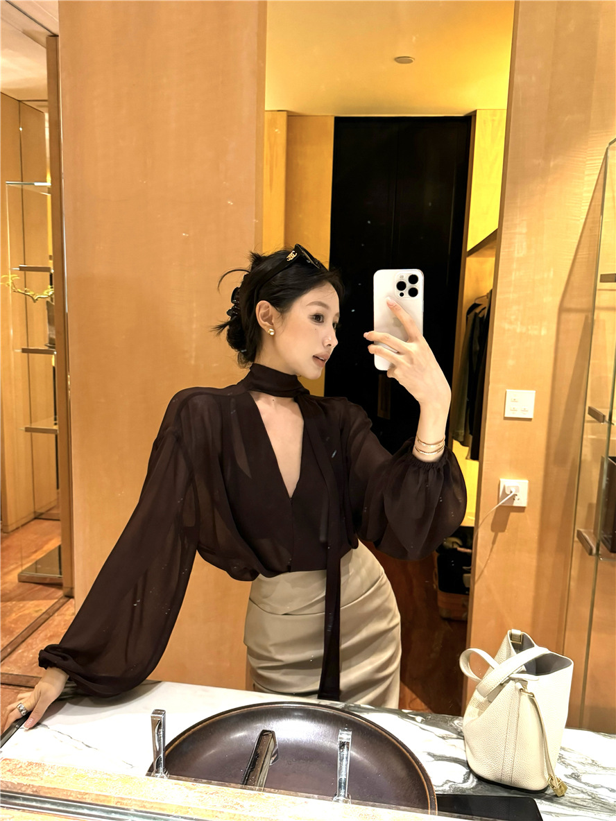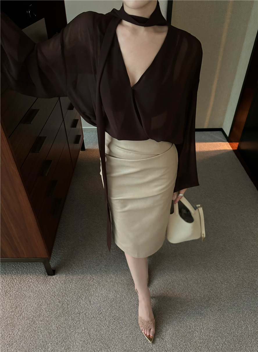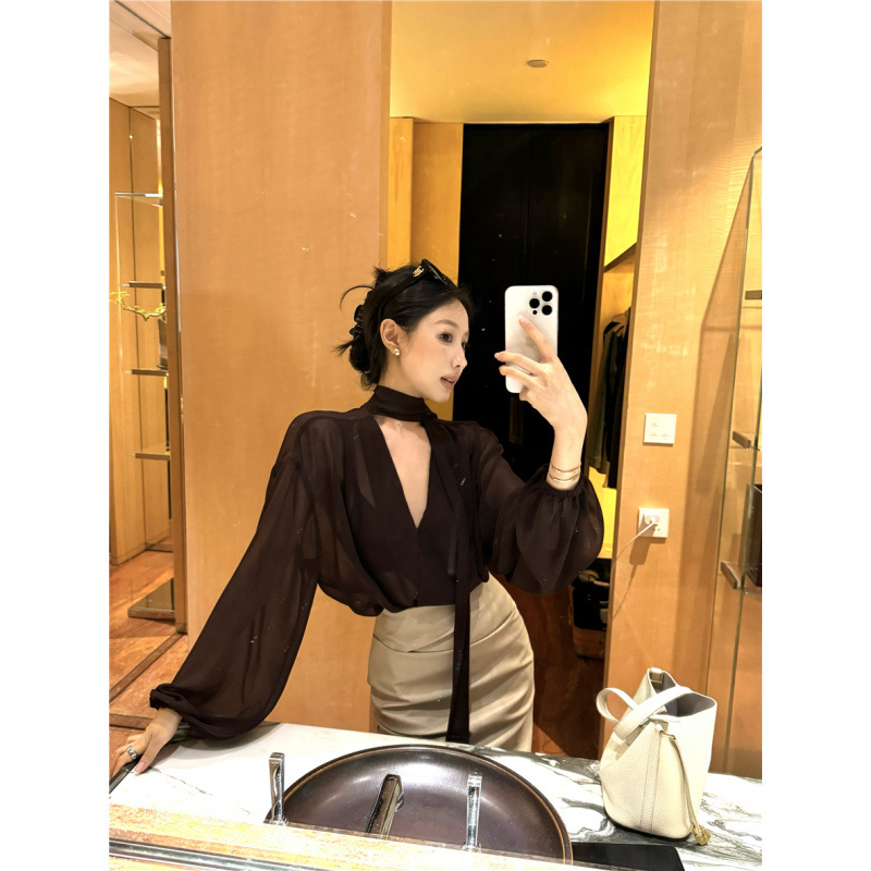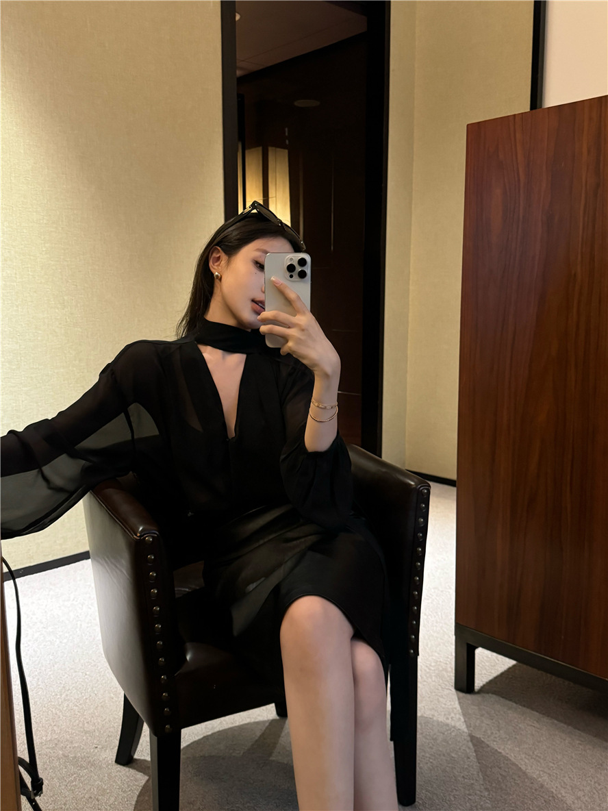 스파이스 소녀 사이 파인애플 가을 섹시한 페니 그레이드 얇은 교수형 목 스트랩 긴 소매 셔츠 높은 허리 스트레이트 튜브 분할 엉덩이 여성