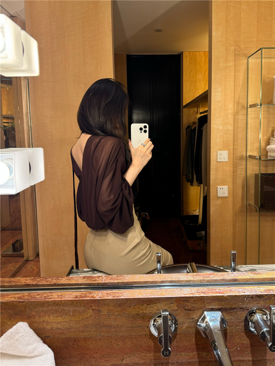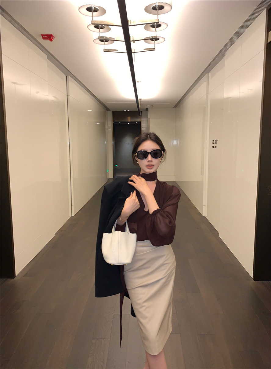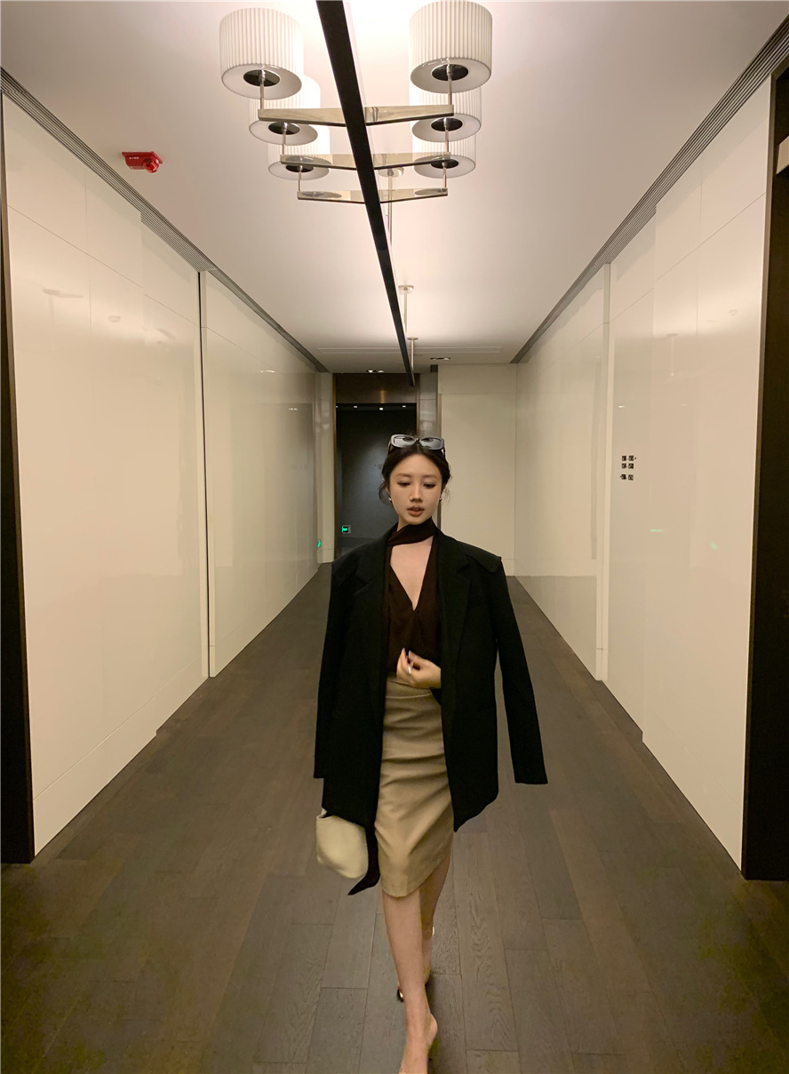 스파이스 소녀 사이 파인애플 가을 섹시한 페니 그레이드 얇은 교수형 목 스트랩 긴 소매 셔츠 높은 허리 스트레이트 튜브 분할 엉덩이 여성스토어 가기