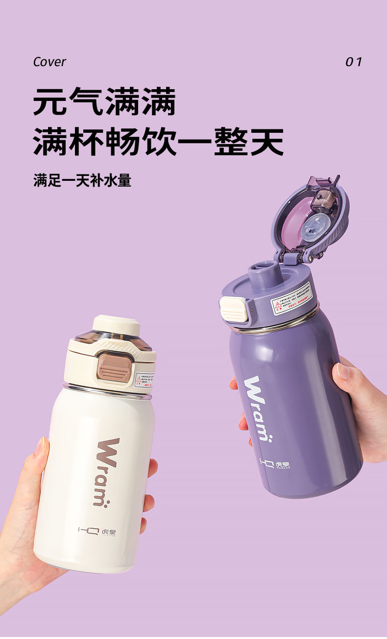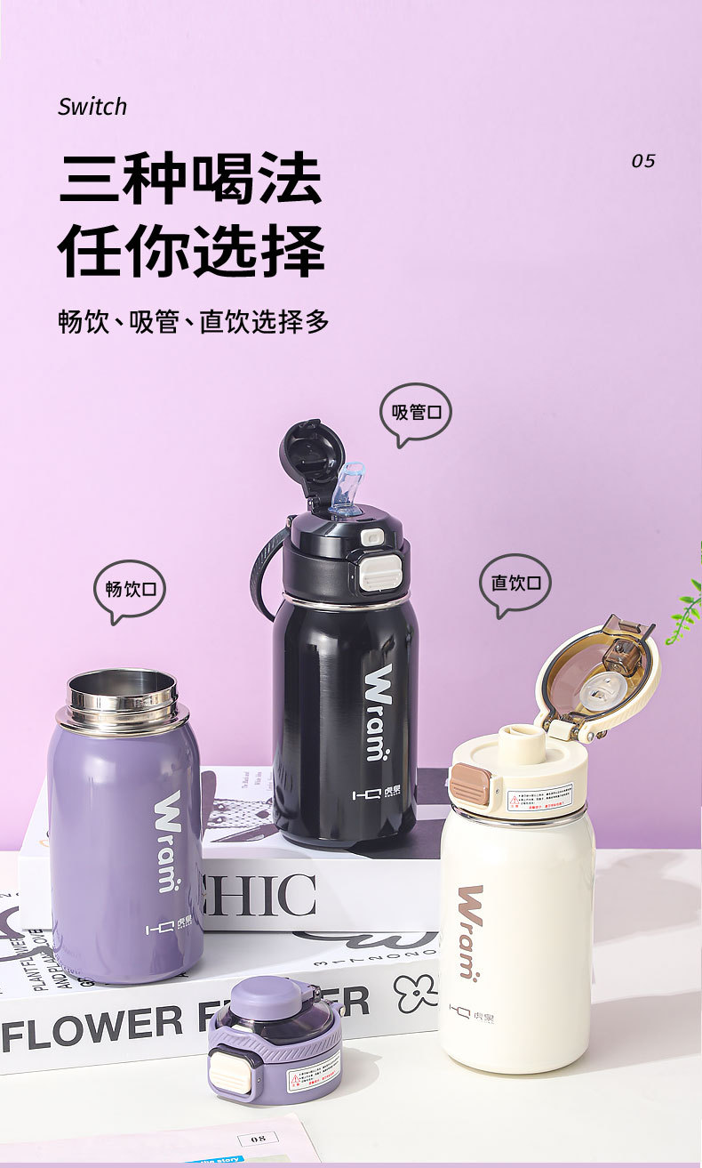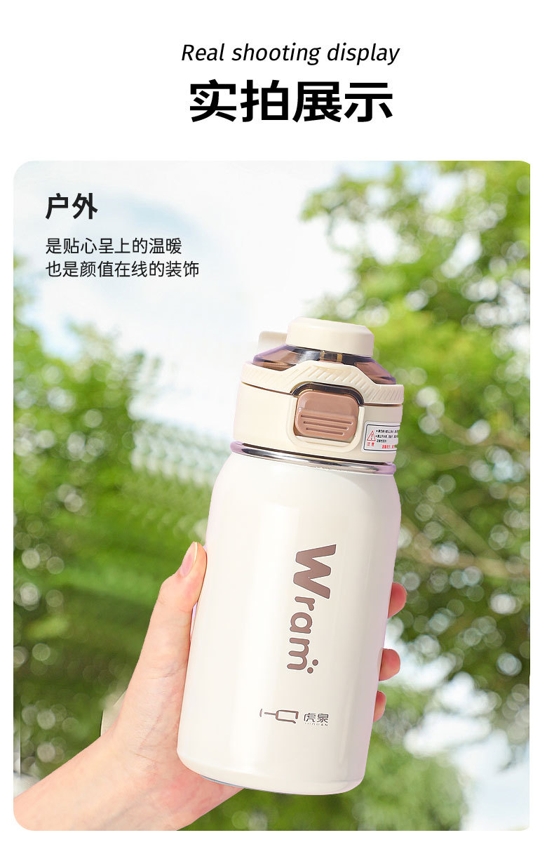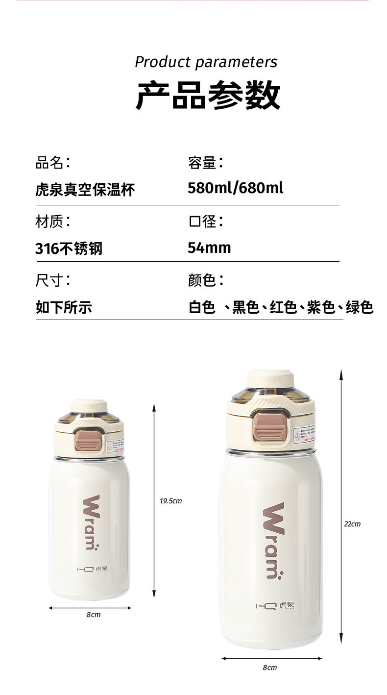 새로운 보온병 컵 316 스테인레스 스틸 남성과 여성 학생 대용량 더블 마시는 컵 야외 스포츠 휴대용 흡입 컵스토어 가기