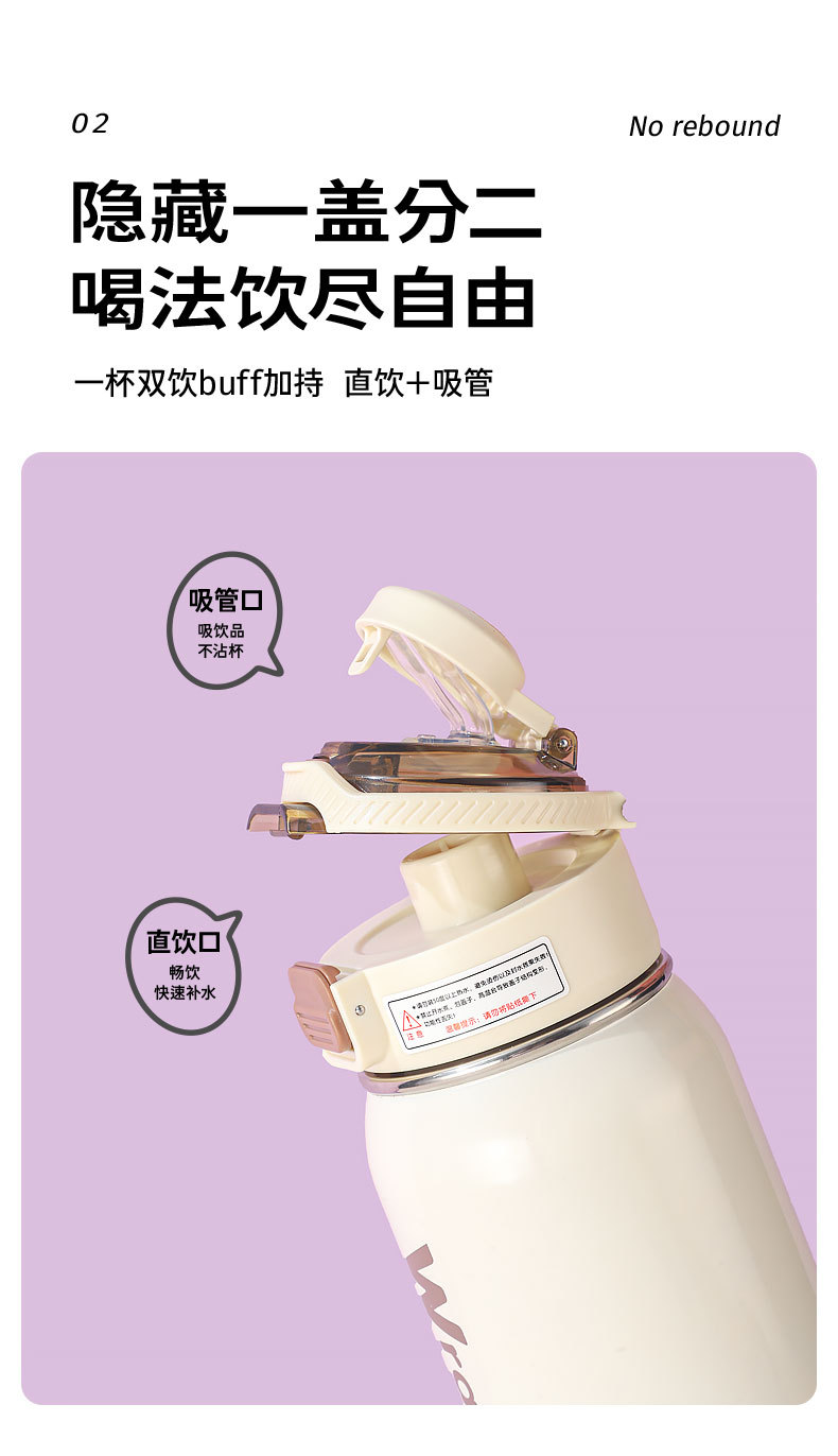 새로운 보온병 컵 316 스테인레스 스틸 남성과 여성 학생 대용량 더블 마시는 컵 야외 스포츠 휴대용 흡입 컵