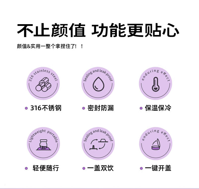 • Purple-680ML 이중 마시는 입 [316 스테인레스 스틸]