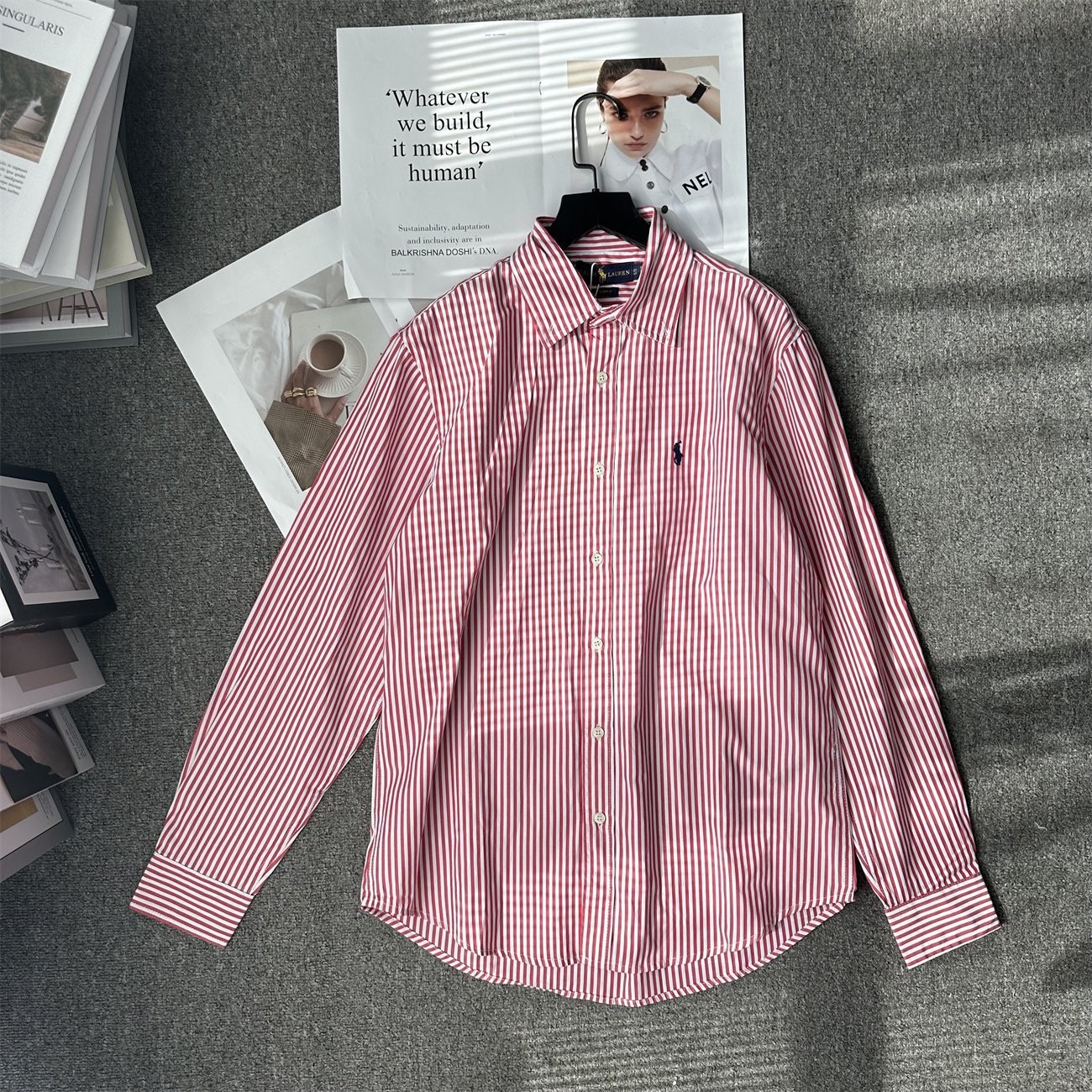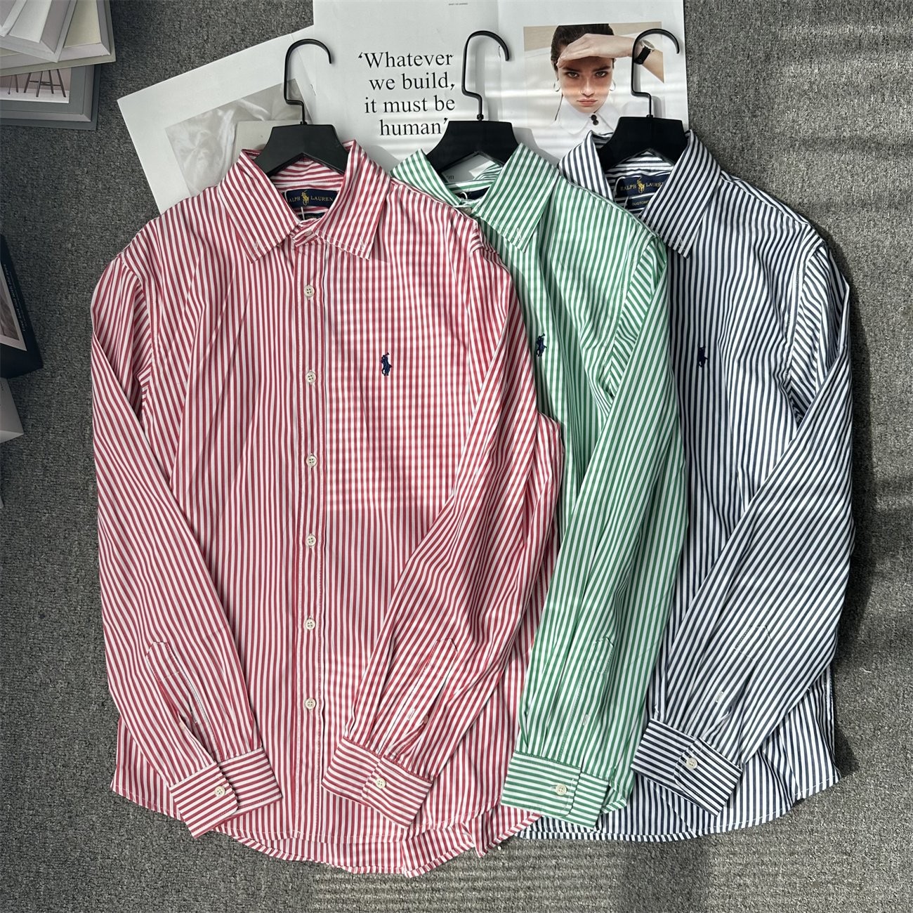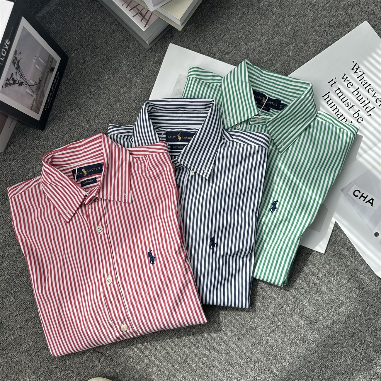 남성용 및 여성용 래프 스트라이프 셔츠, R 포니 로고 자수, 패셔너블하고 다재다능한 폴로 칼라 셔츠, 다재다능한 대리점스토어 가기