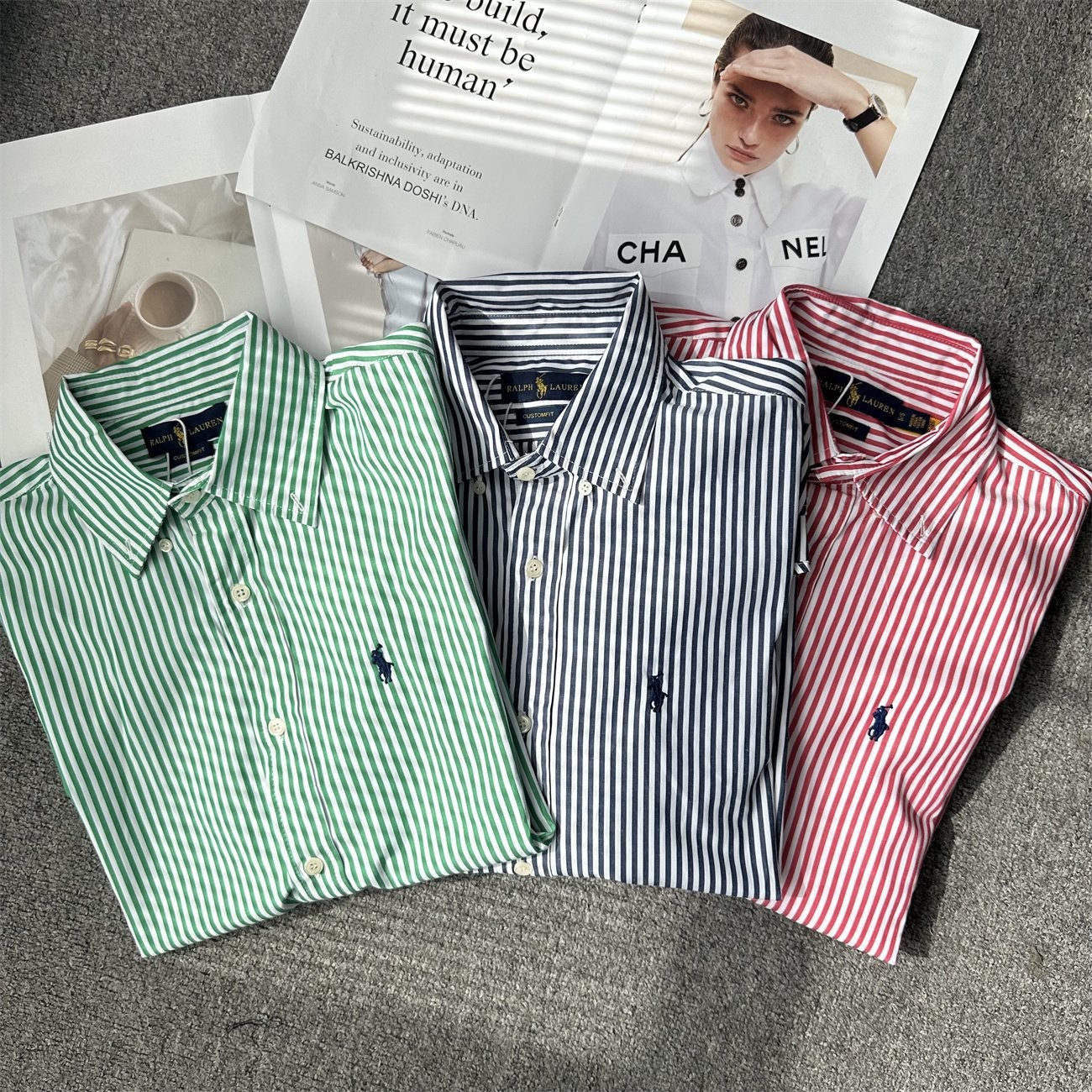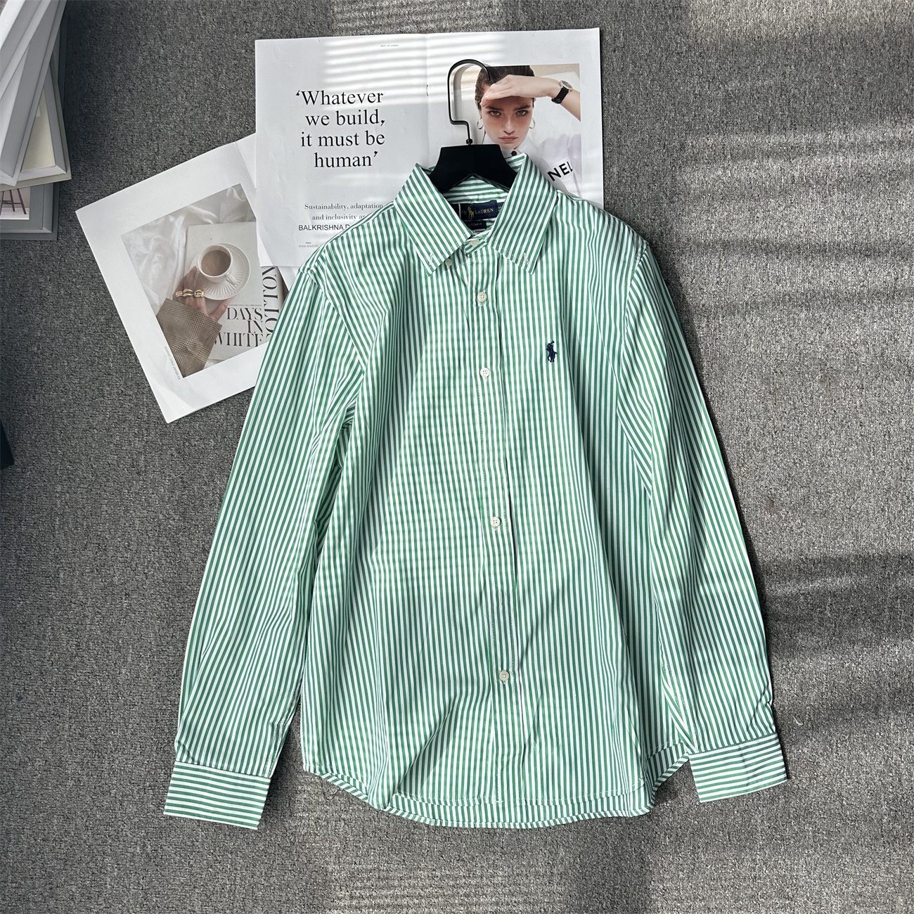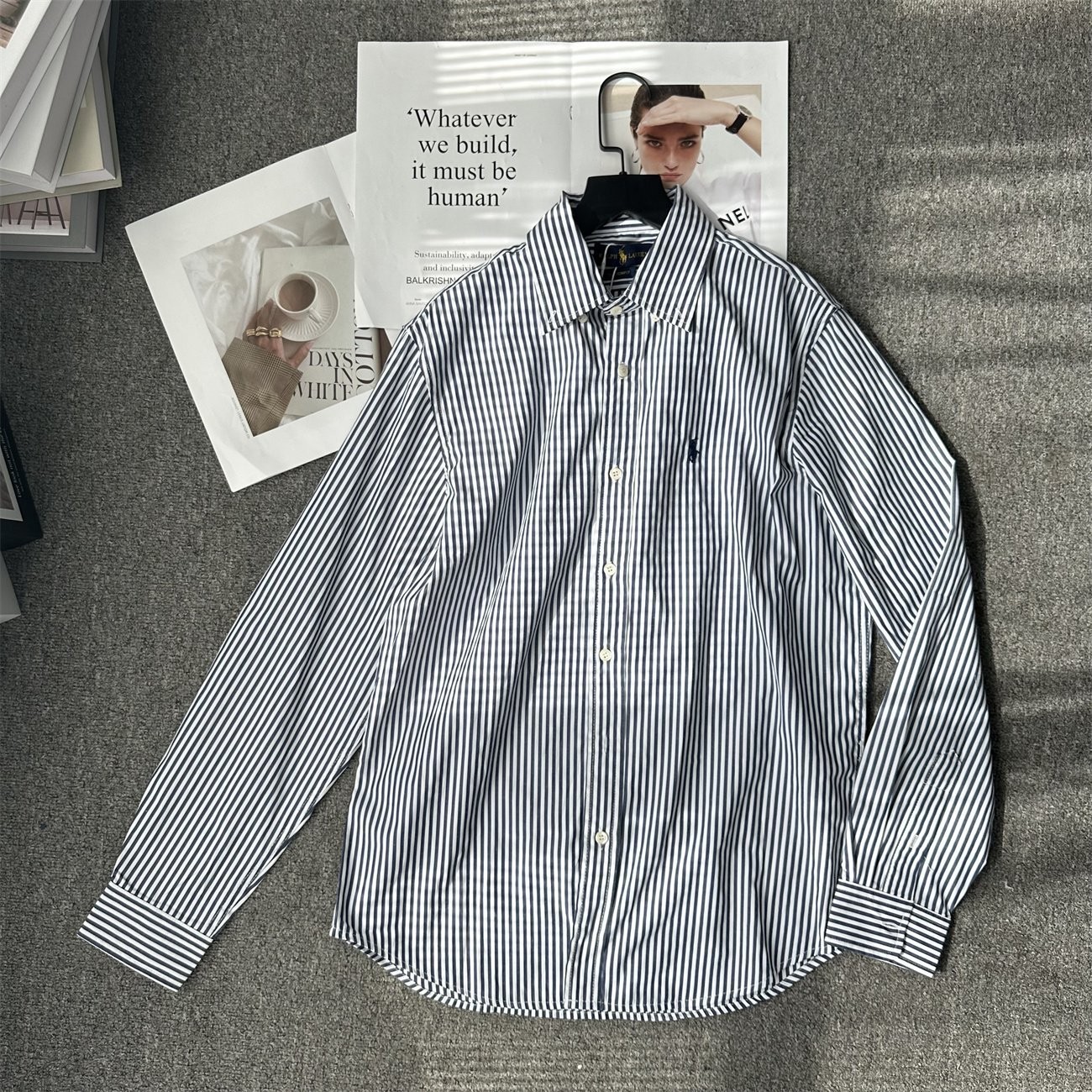 남성용 및 여성용 래프 스트라이프 셔츠, R 포니 로고 자수, 패셔너블하고 다재다능한 폴로 칼라 셔츠, 다재다능한 대리점스토어 가기