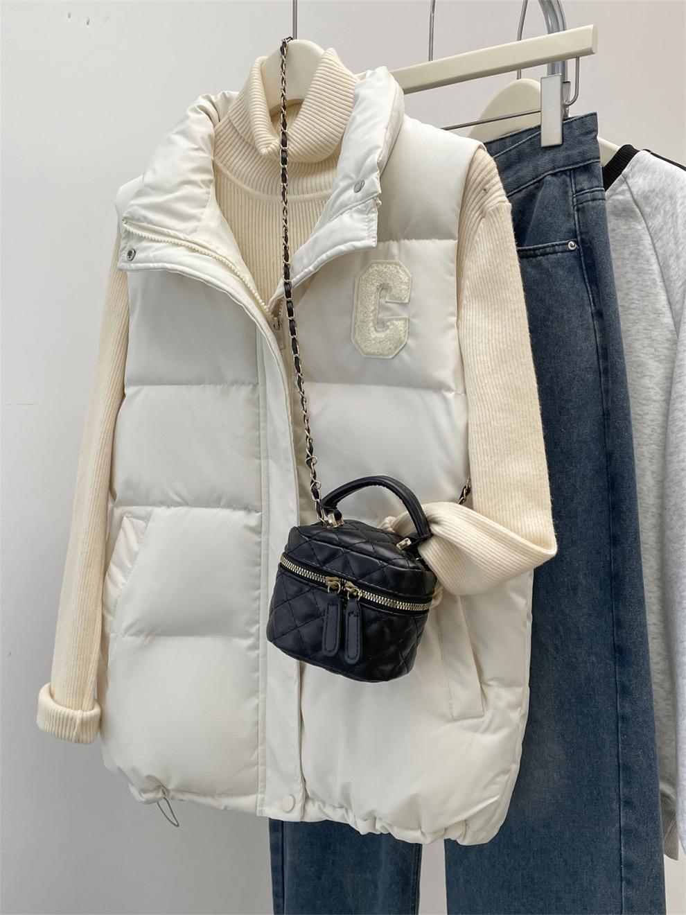 가을과 겨울 2024 새로운 인터넷 축하 조끼 올 매치 대학 스타일 의상 한국형 통근 탑 면 조끼 여성을위한스토어 가기