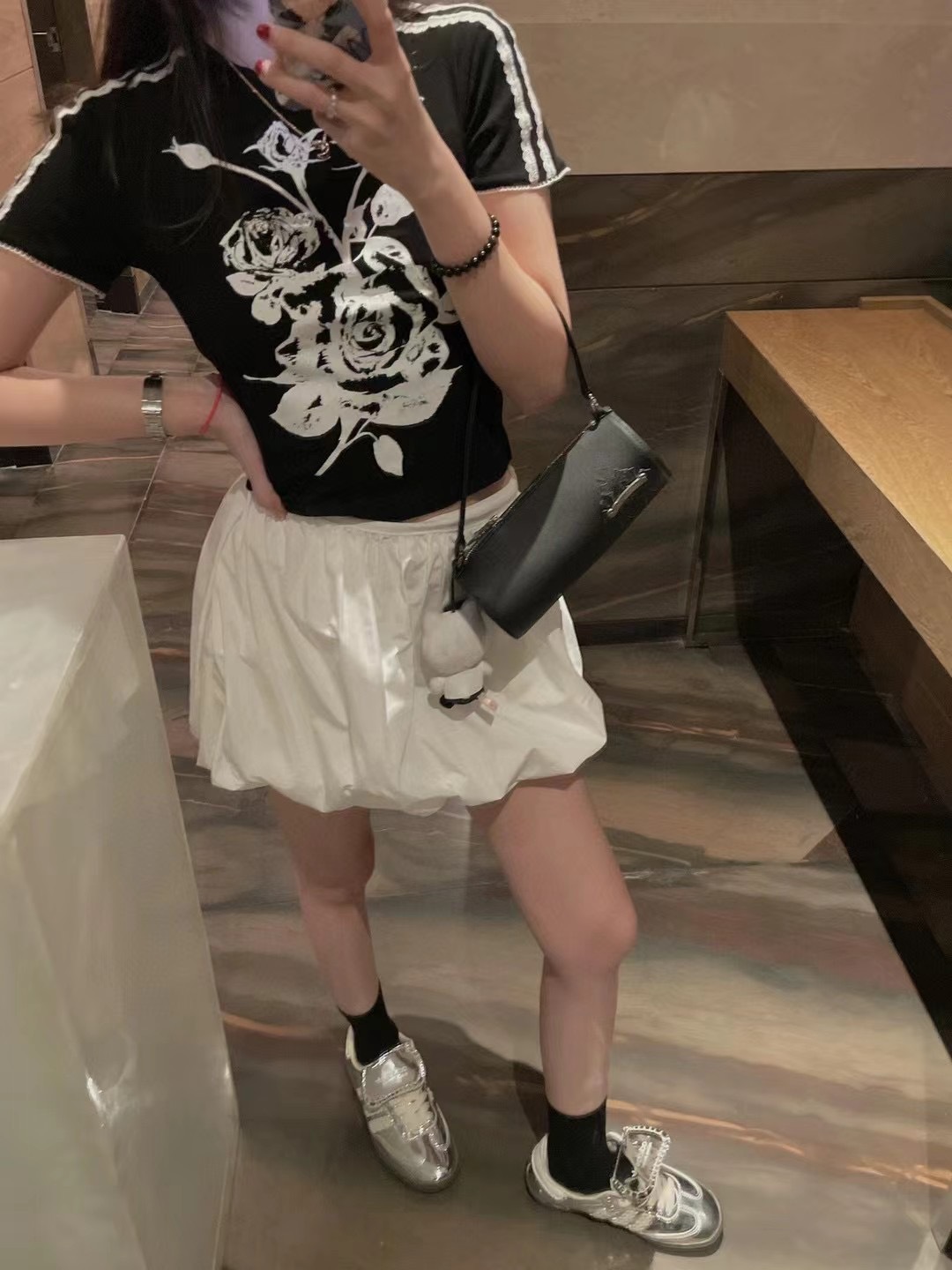 진민팅과 같은 스타일의 한국 니치 OPENYY 달콤하고 매콤한 꽃봉오리 푹신한 구름 레이어드 버블 미니 스커트스토어 가기