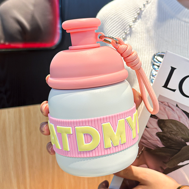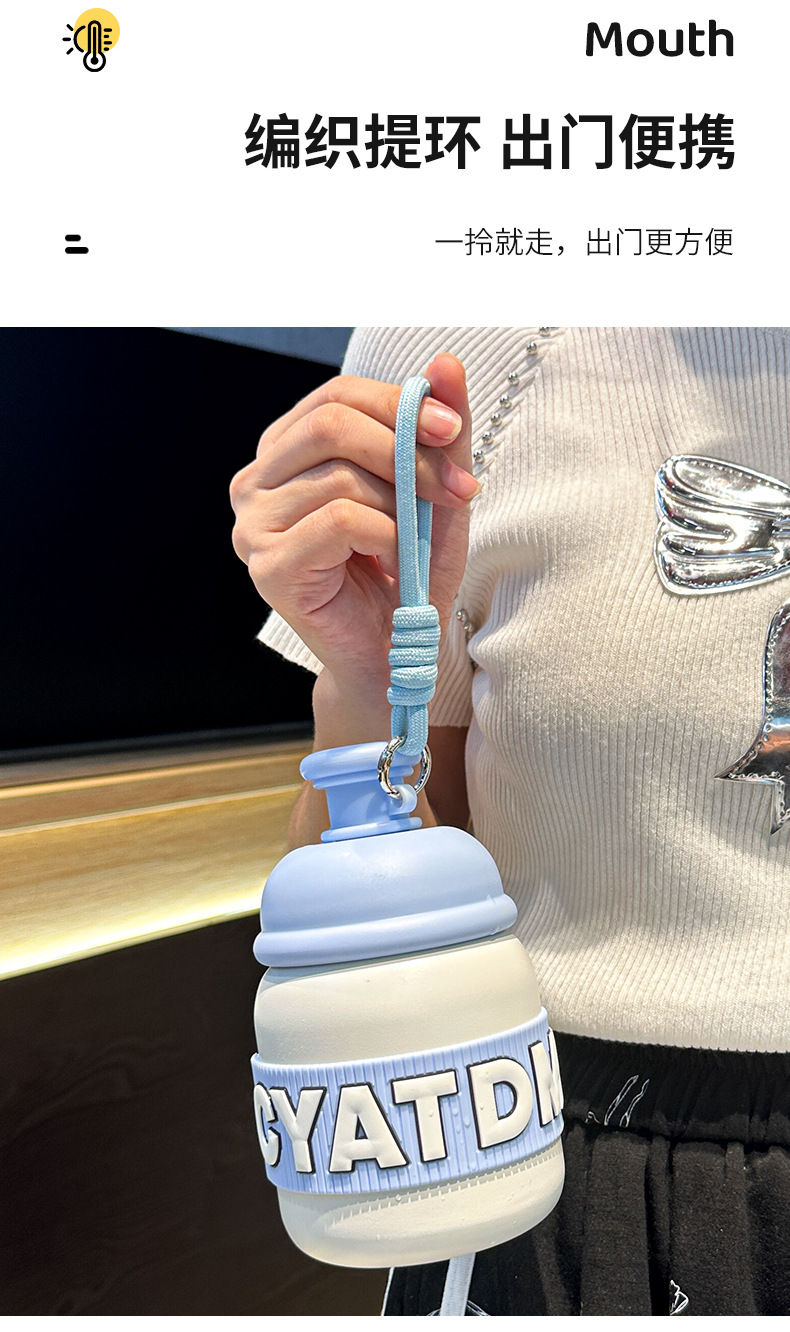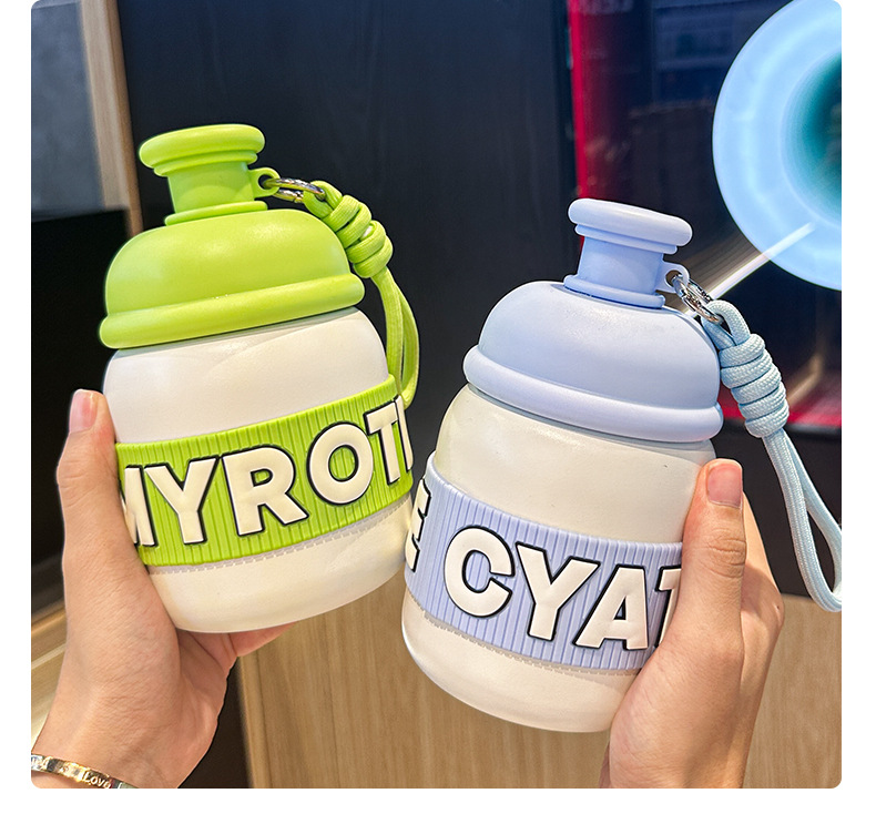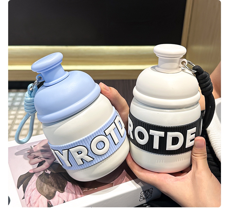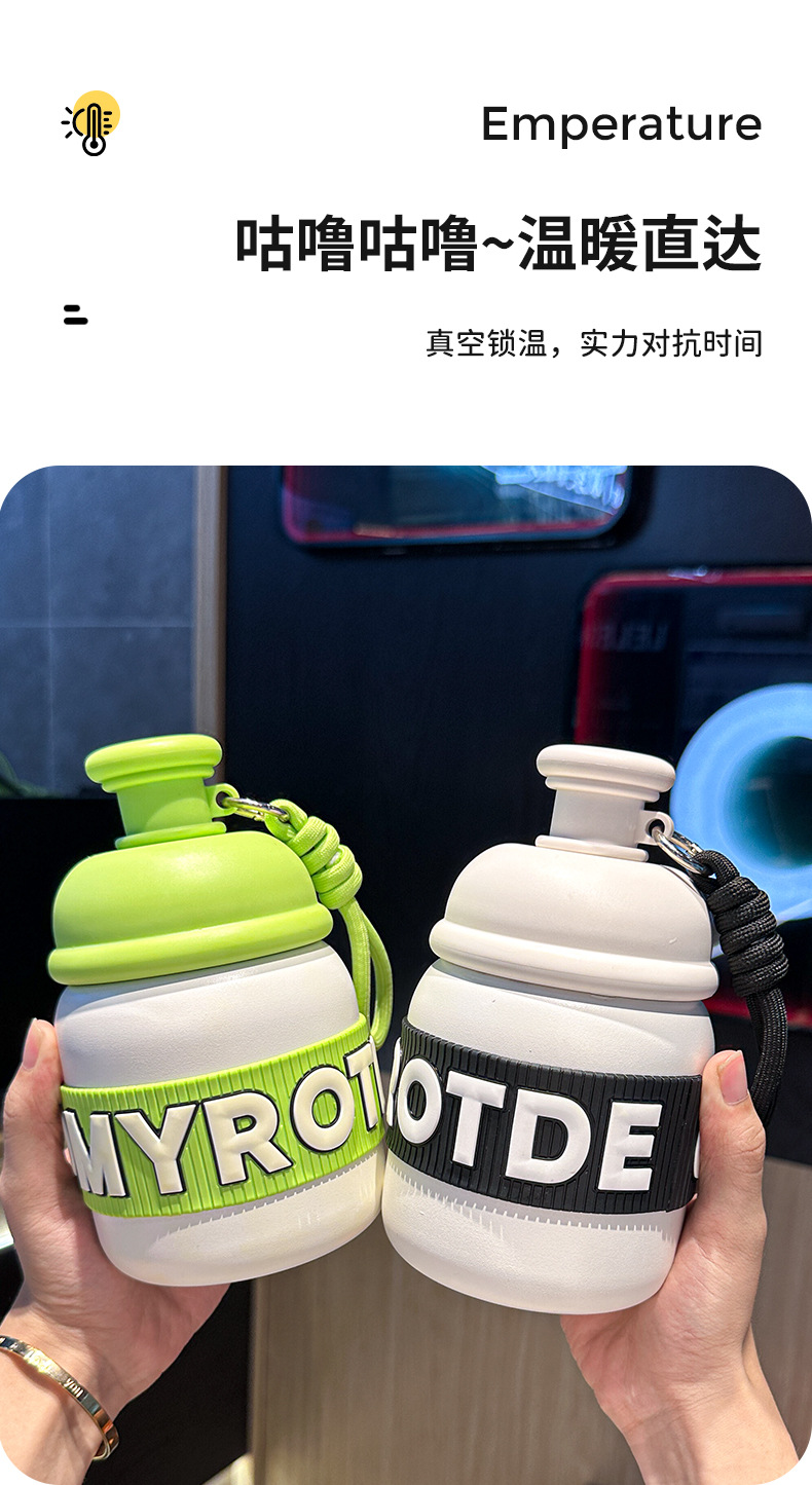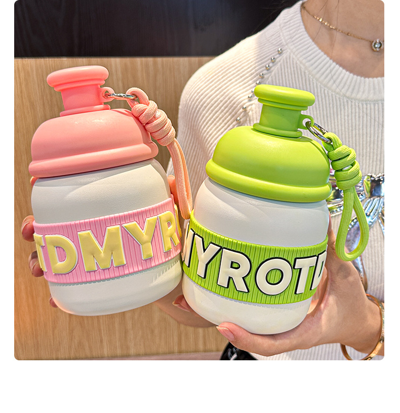 새로운 틈새 통통 보온병 캔디 컬러 흡입 컵 고가치 학생 워터 컵 휴대용 끈 보온병 컵