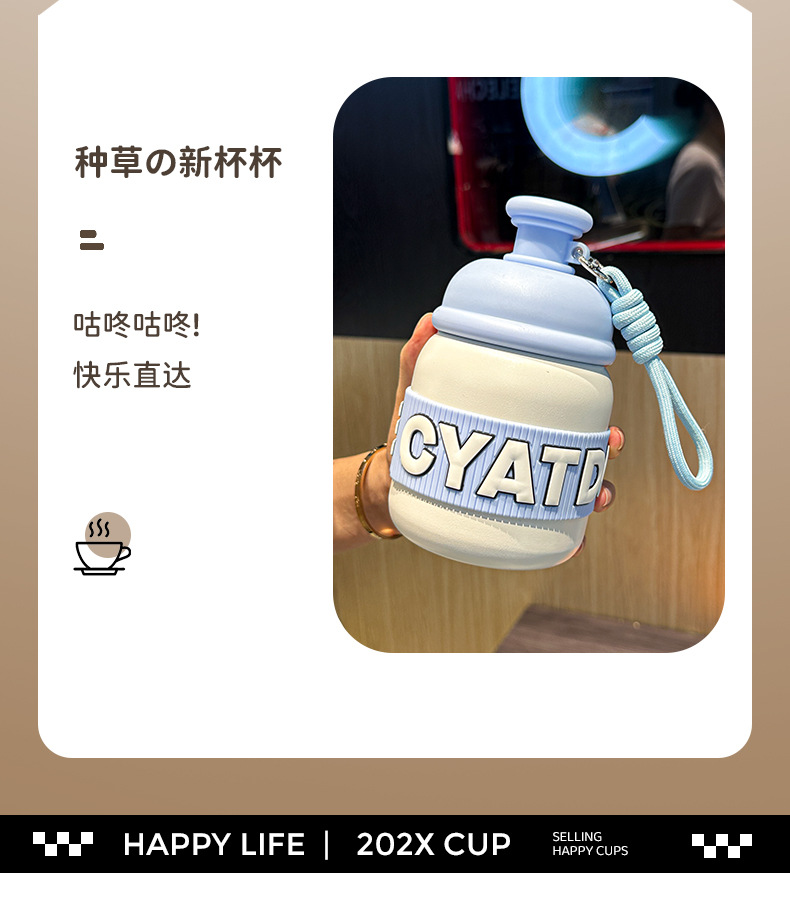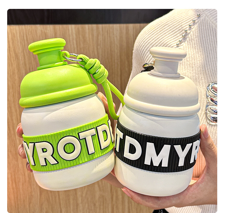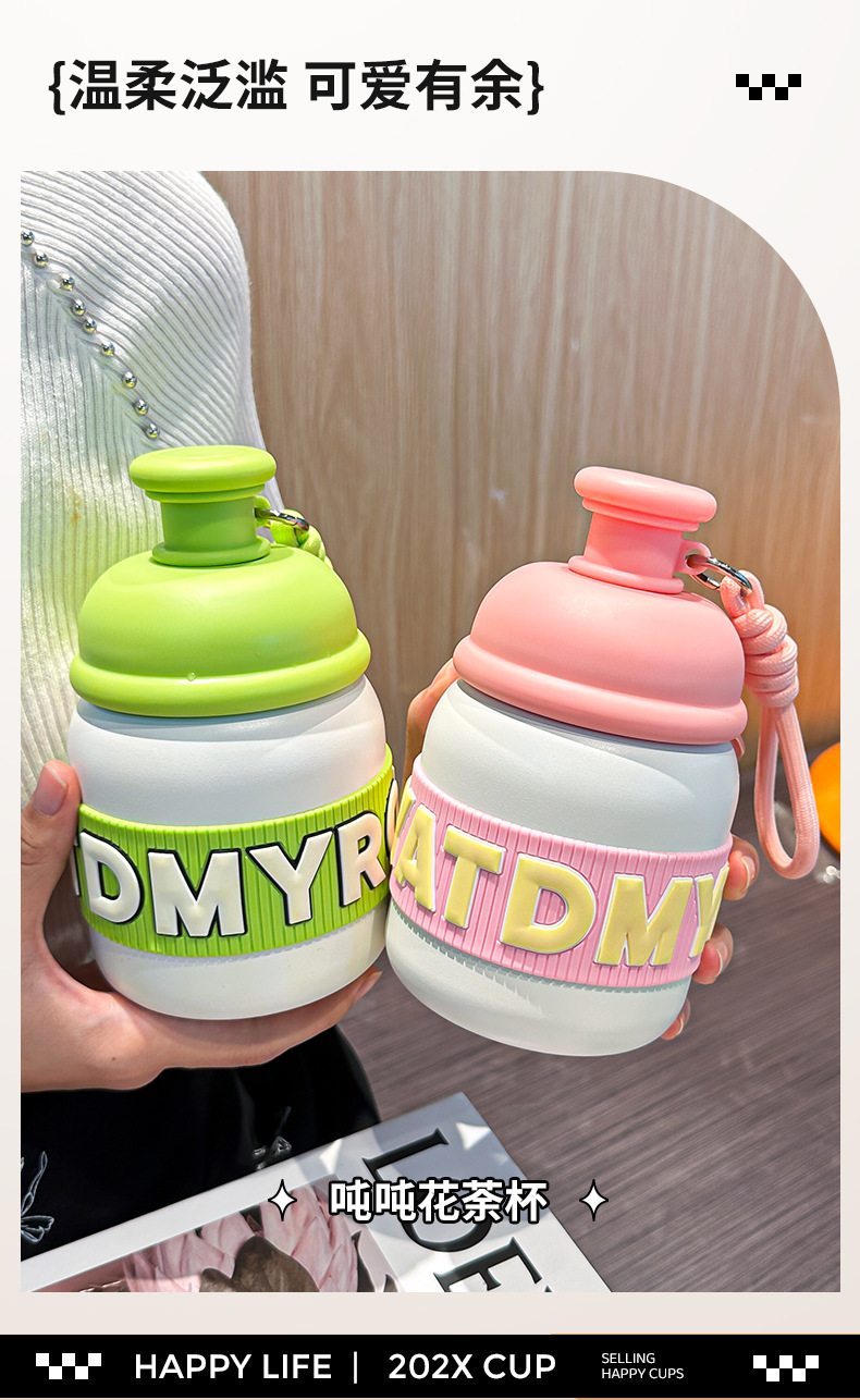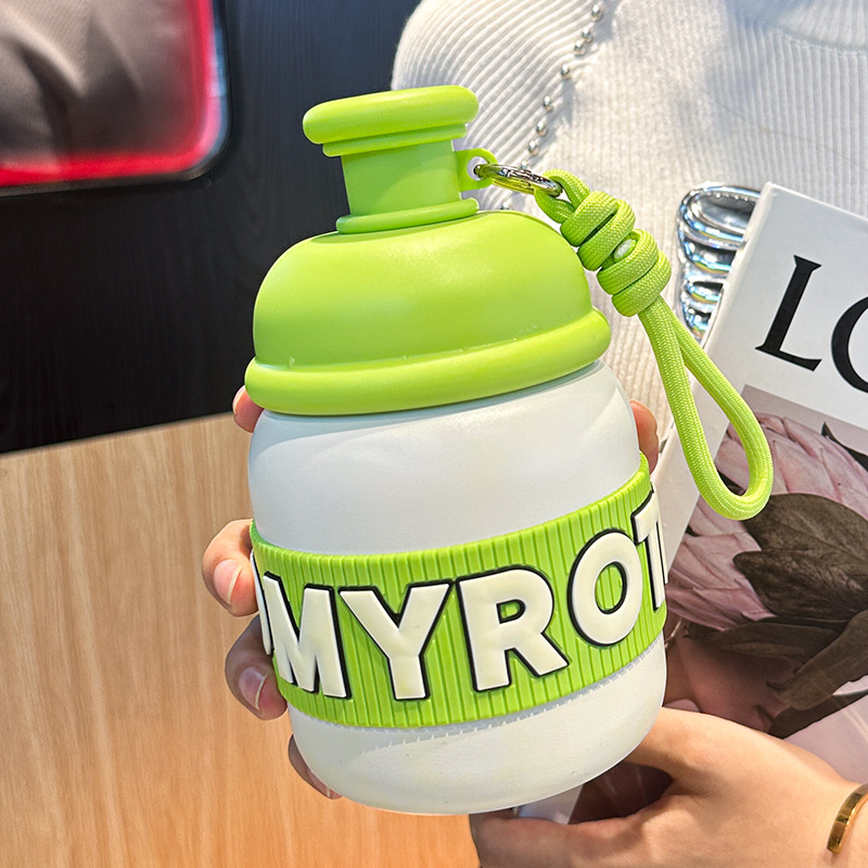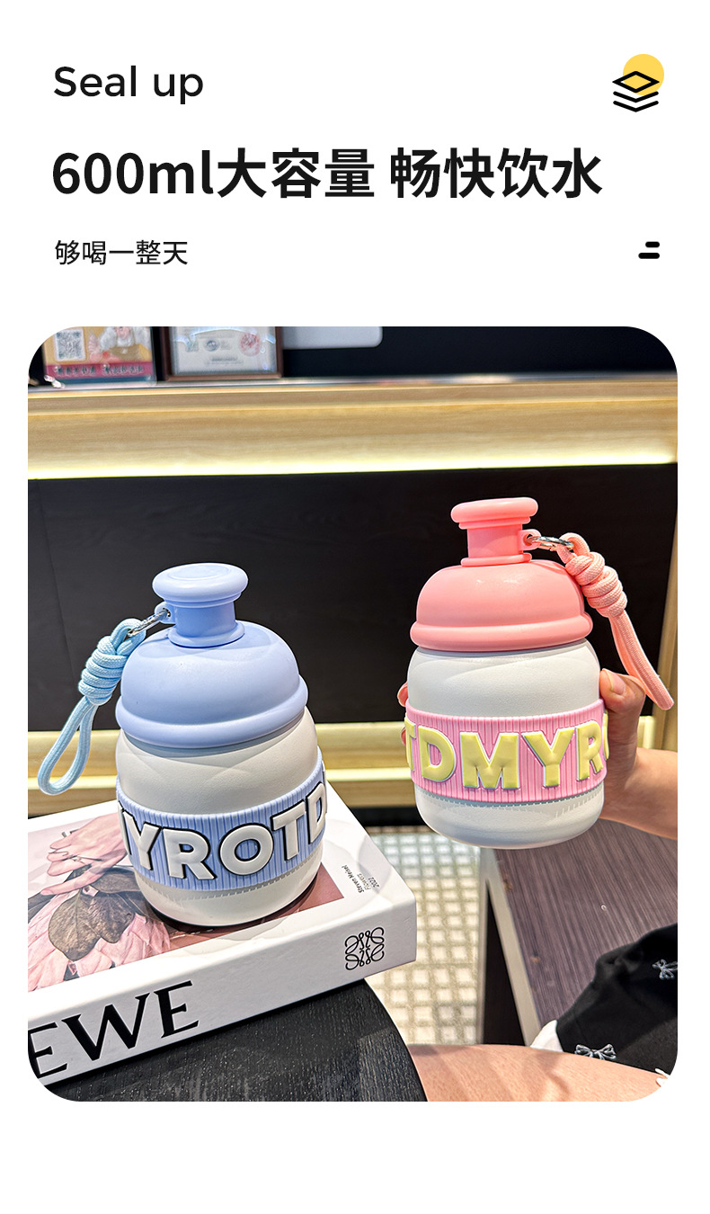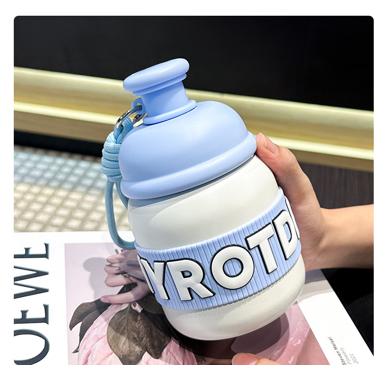 새로운 틈새 통통 보온병 캔디 컬러 흡입 컵 고가치 학생 워터 컵 휴대용 끈 보온병 컵