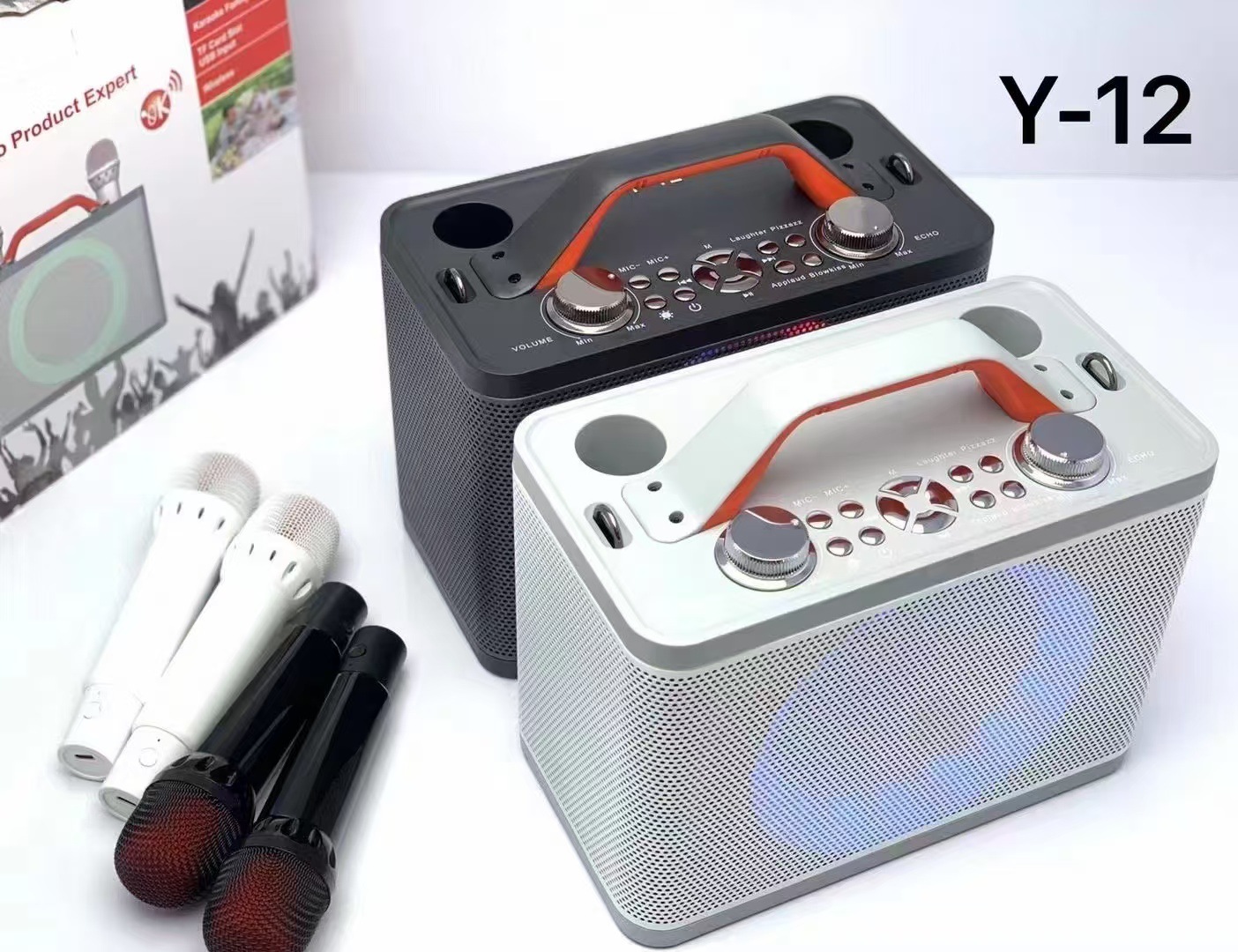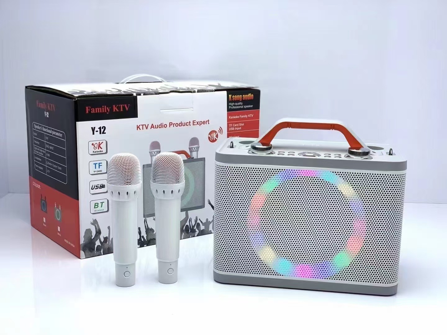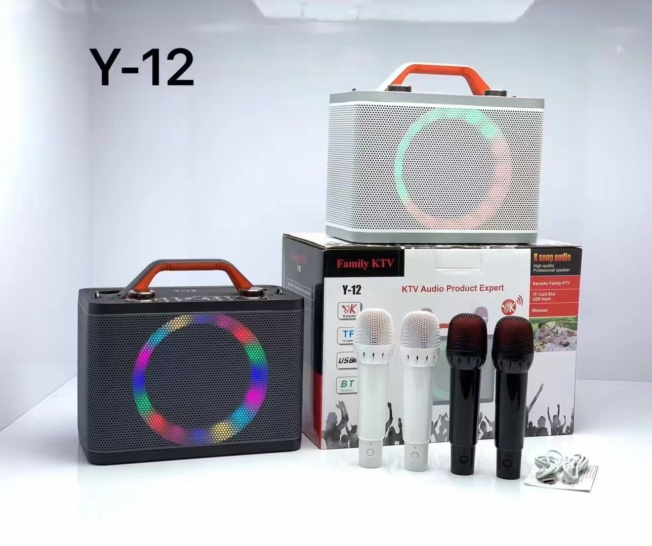 핫세일 Y-12 컬러라이트 무선 듀얼 마이크 블루투스 가정용 노래방 일체형 스피커 휴대용 무선 블루투스