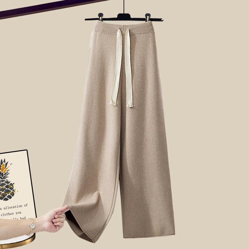 플러스 사이즈 여자 가을 겨울 세트 여자 2024 새로운 풀오버 니트 스웨터 여성의 느슨한 슬리밍 넓은 다리 바지 투피스 세트