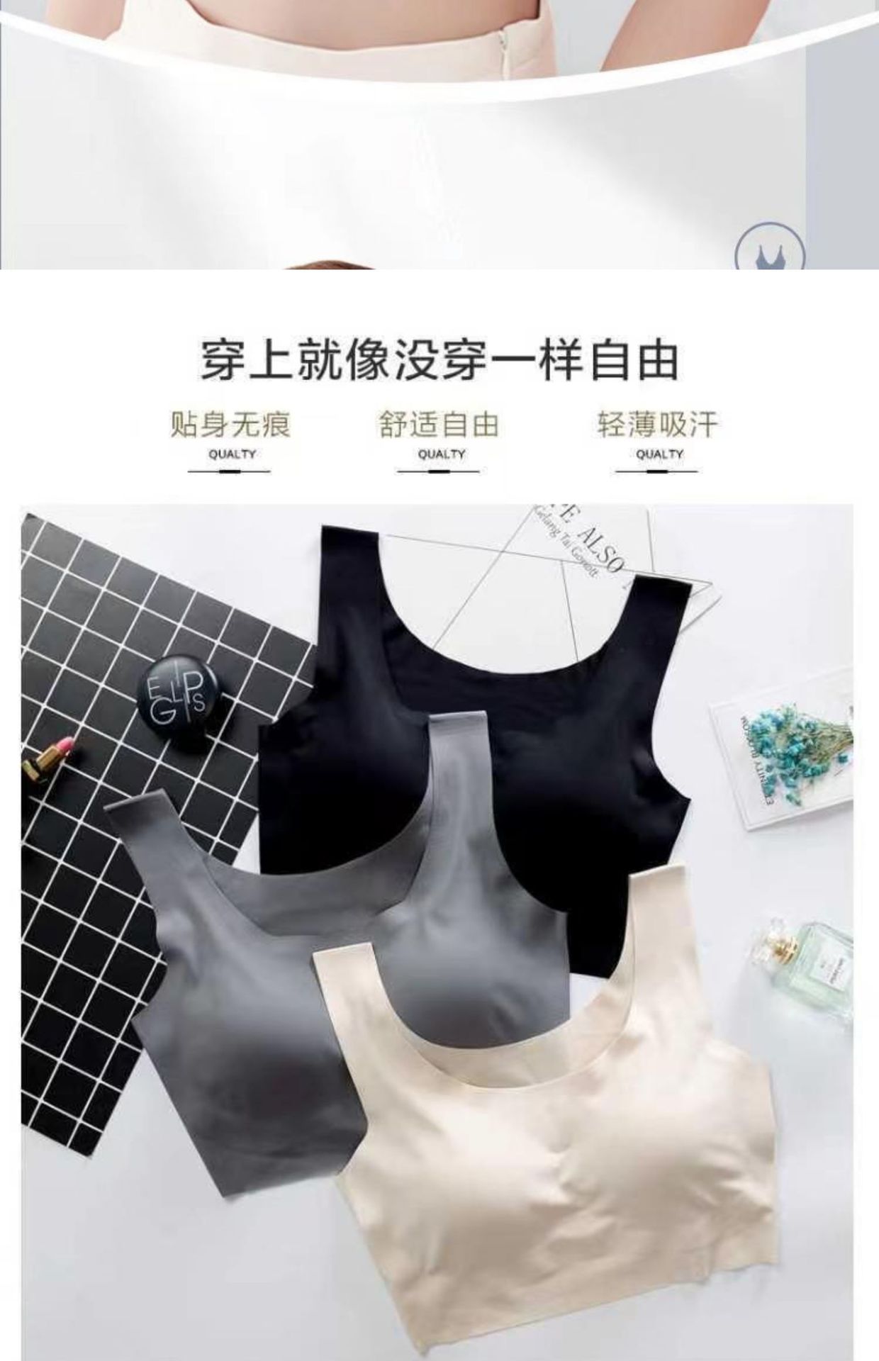 큰 가슴을 작아 보이게 하는 무봉제 여성용 브라, 아름다운 등 라인을 가진 조끼형 일체형 고정컵 스포츠 브라, 가슴을 작게 만들어주는 브라스토어 가기