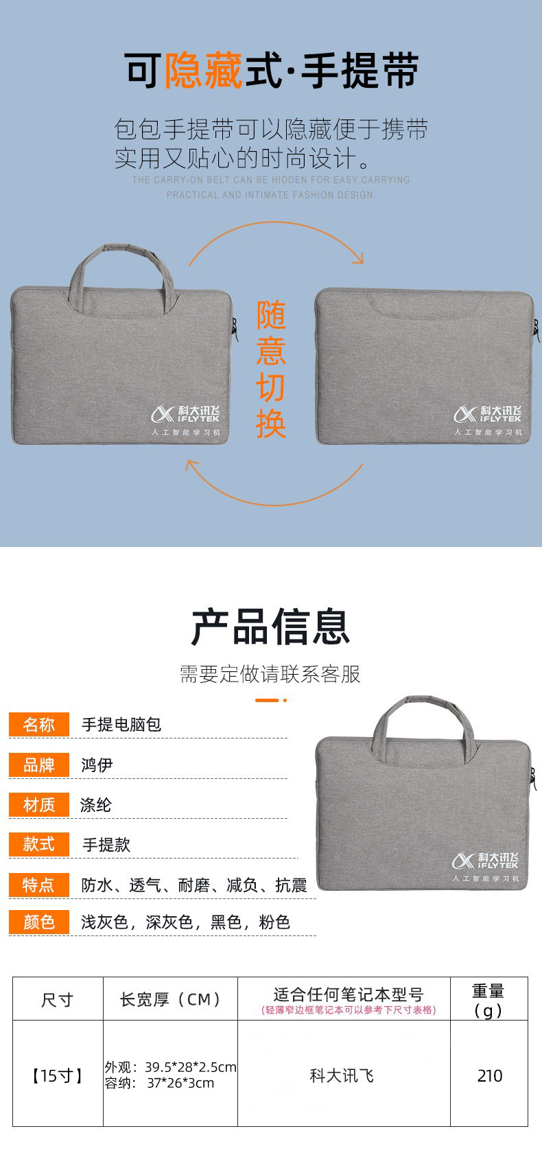 노트북 가방 15 인치 HKUST Xunfei 학습 기계 보호 케이스 노트북 가방 충격 방지 두꺼운 캐시미어스토어 가기