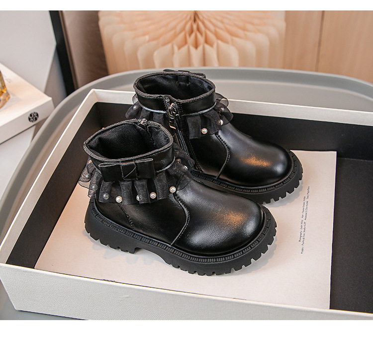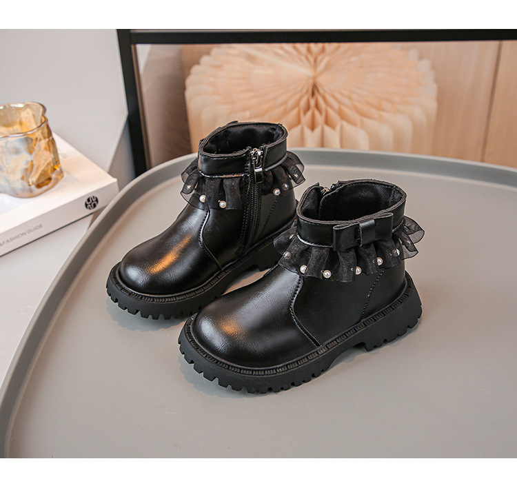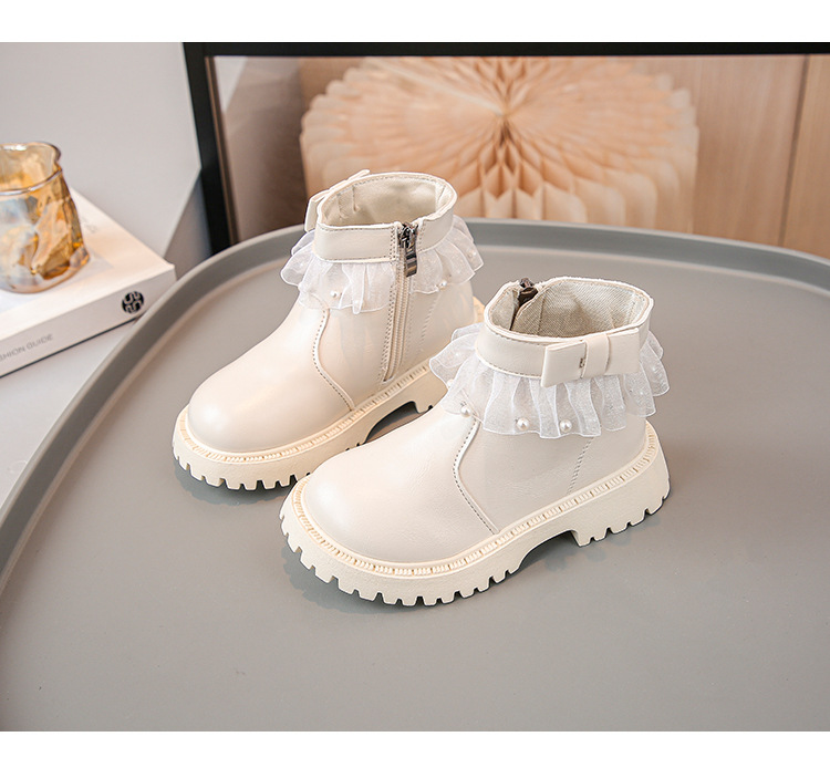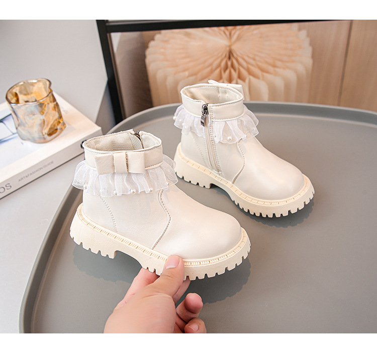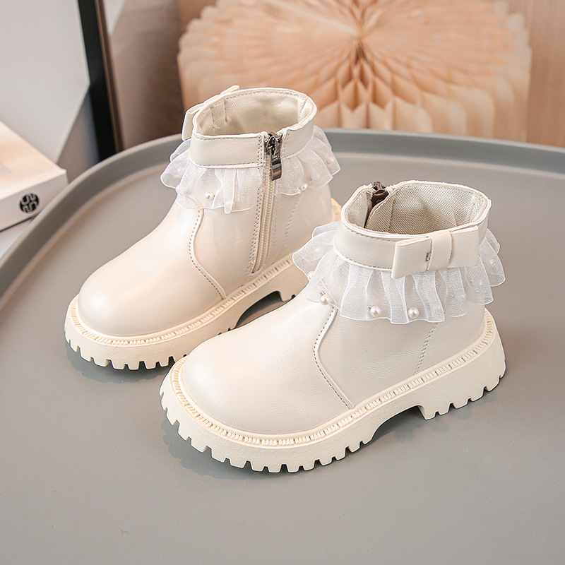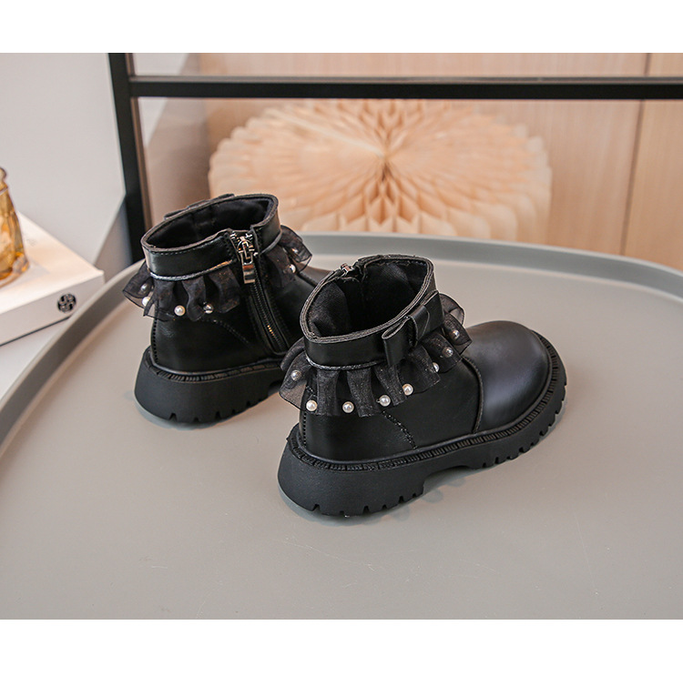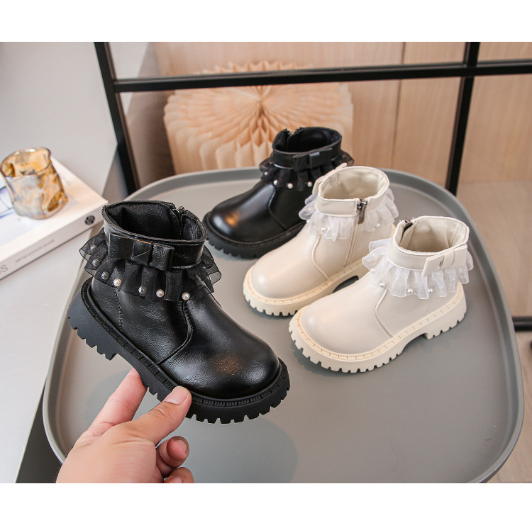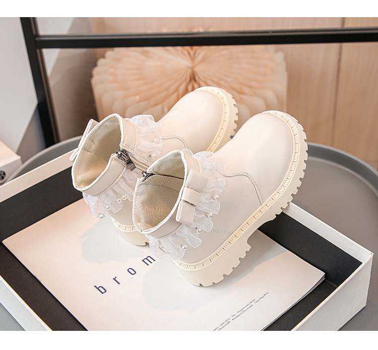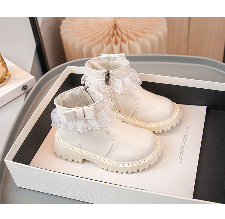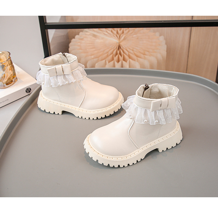 2024 가을과 겨울 새로운 패션 큰 소녀 한국 진주 레이스 짧은 튜브 부드러운 바닥 마틴 부츠스토어 가기
