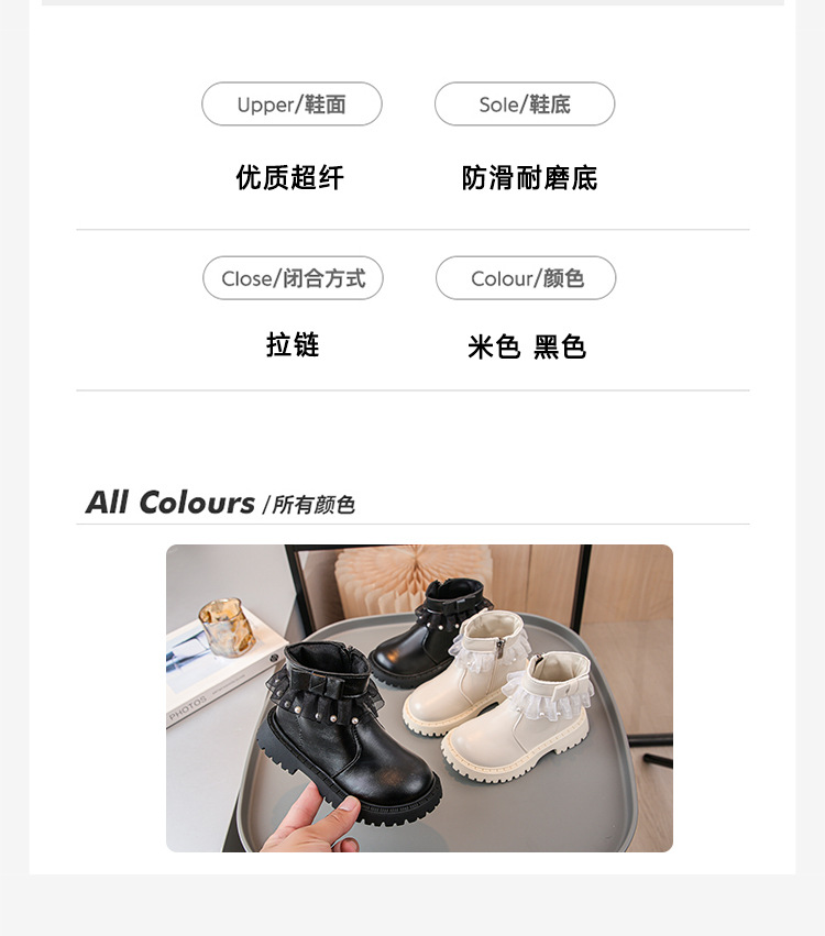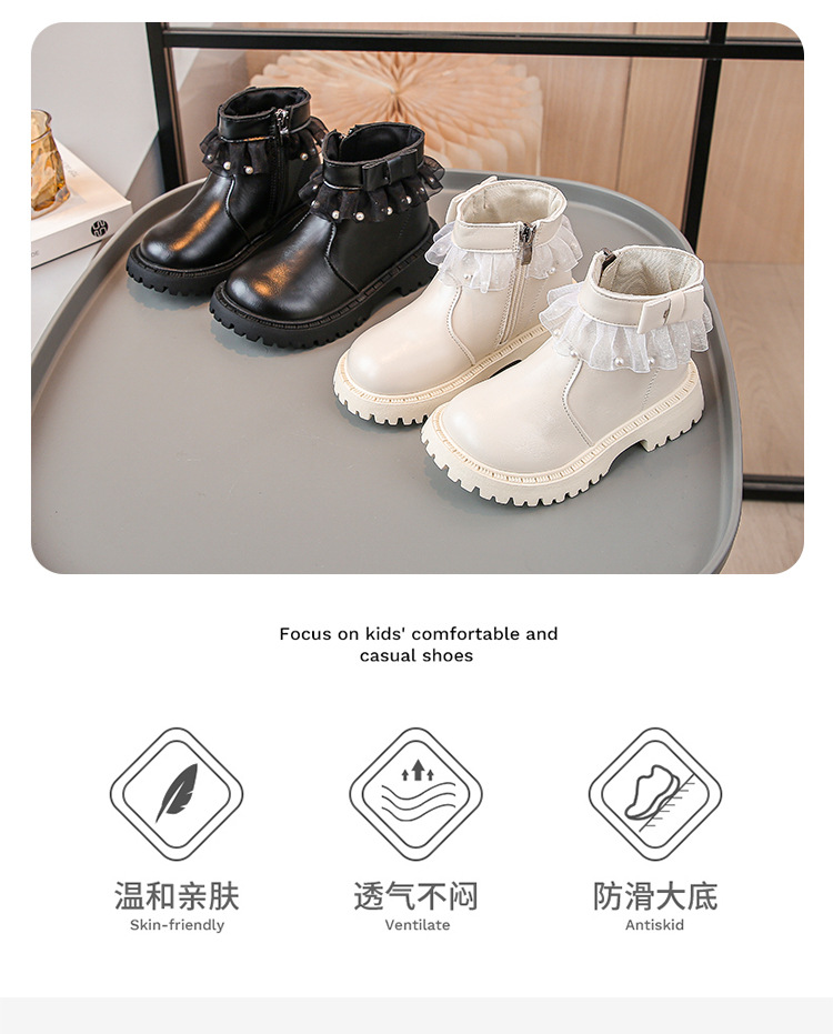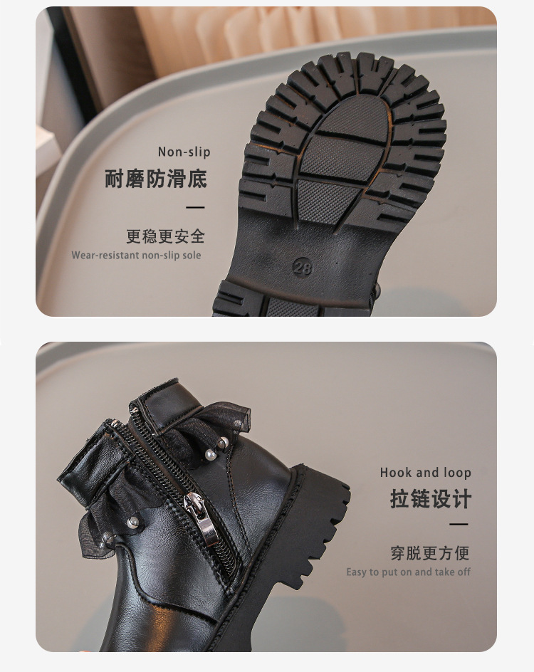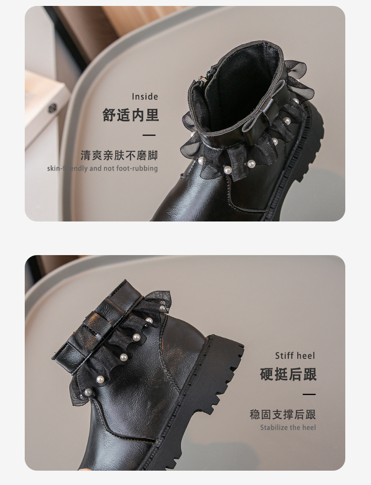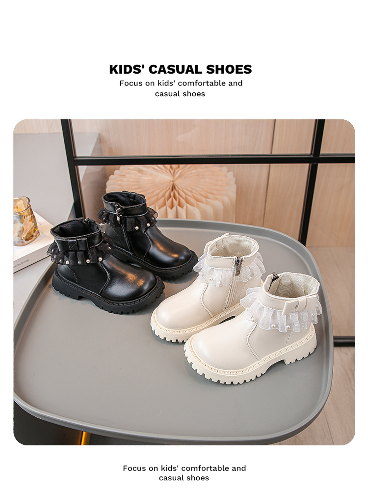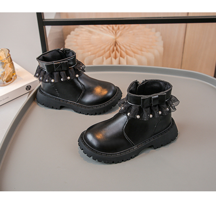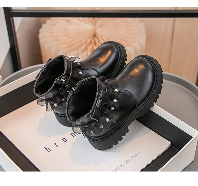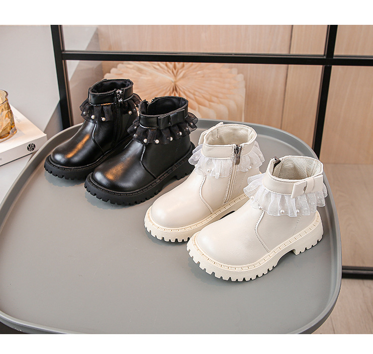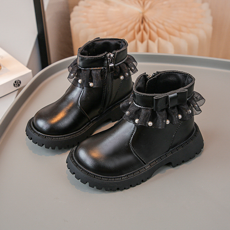 2024 가을과 겨울 새로운 패션 큰 소녀 한국 진주 레이스 짧은 튜브 부드러운 바닥 마틴 부츠스토어 가기