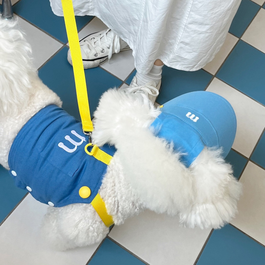한국 Ins 폭발 귀여운 모자 가슴 뒤로 세트 테디 비촌 개 조끼 밖으로 나가는 견인 로프 PET