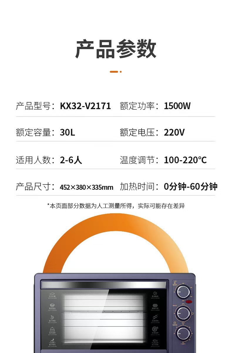 Jiuyang 전기 오븐 KX32-V2171 가정용 30 리터 용량 다기능 베이킹 케이크 빵 자동스토어 가기