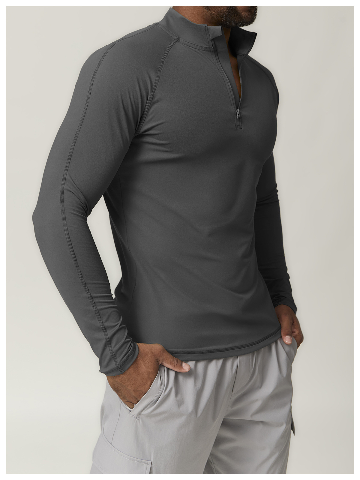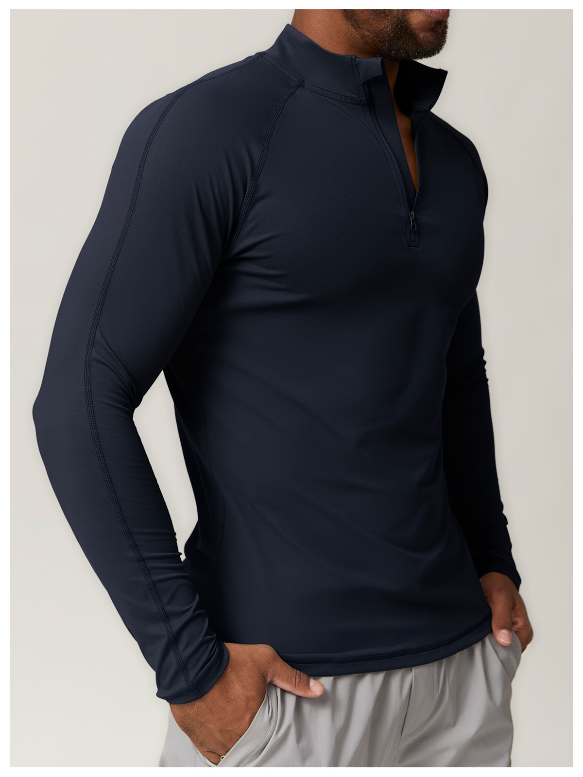 국경 간 유럽 및 미국 남성 스포츠 지퍼 빠른 건조 긴 소매 티셔츠 러닝 피트니스 홈 통근 캐주얼 톱 1041스토어 가기