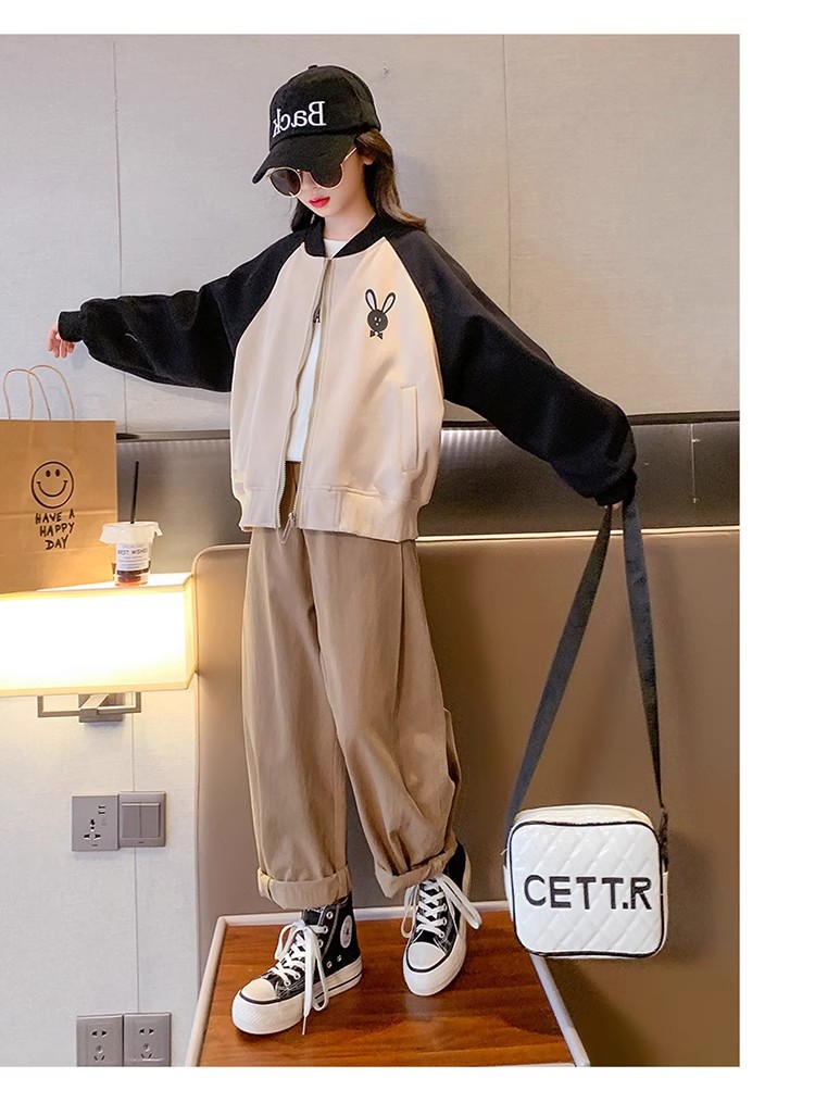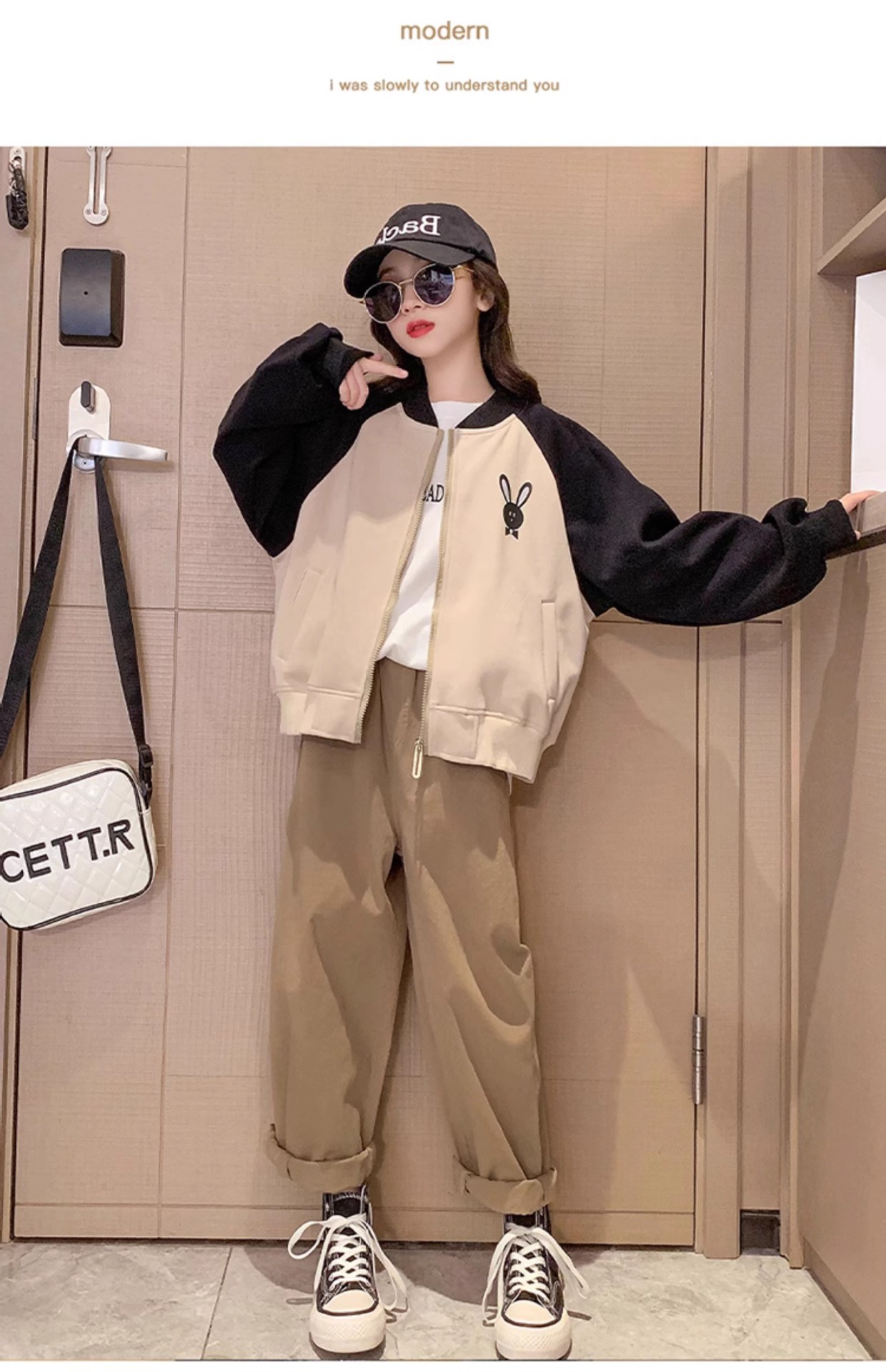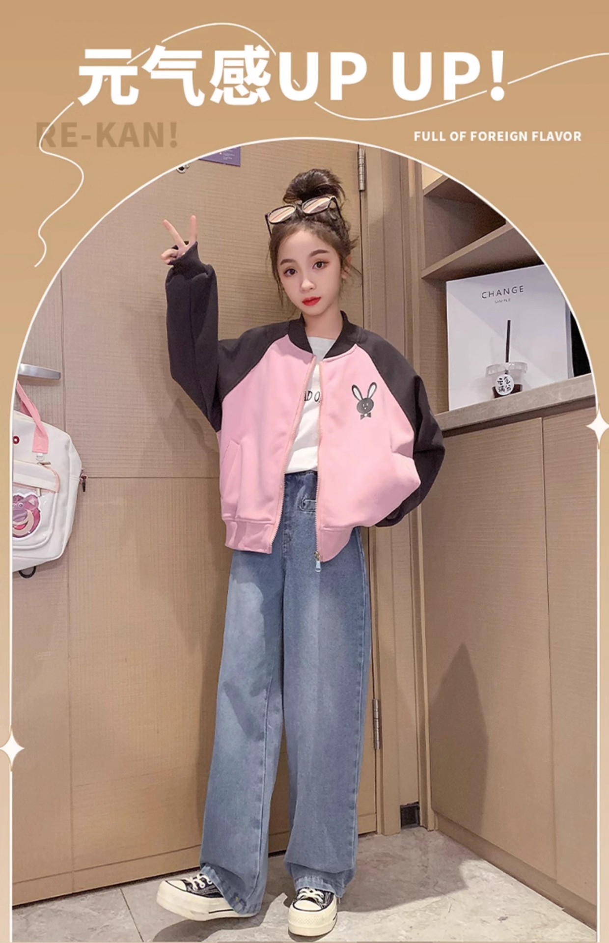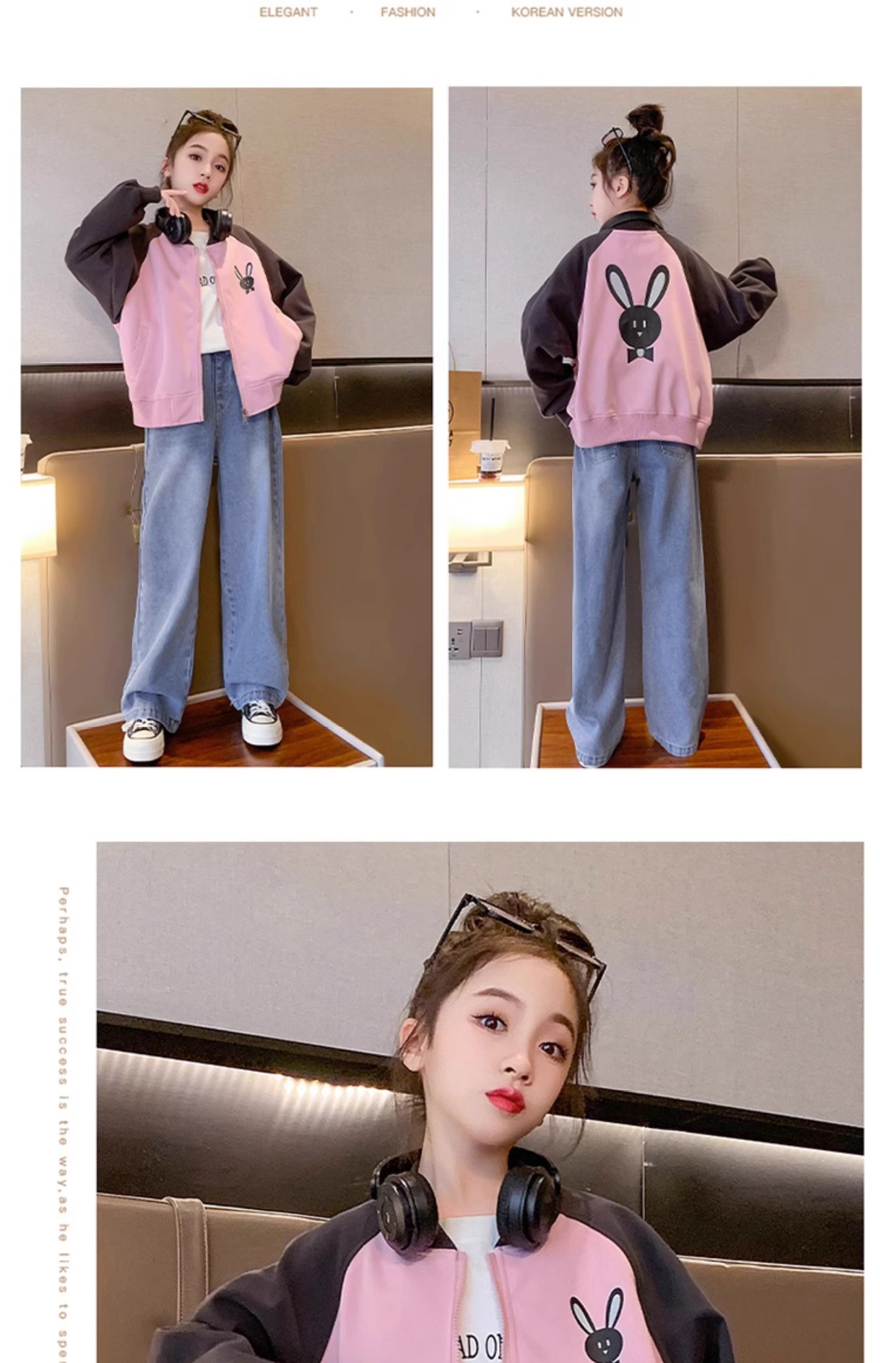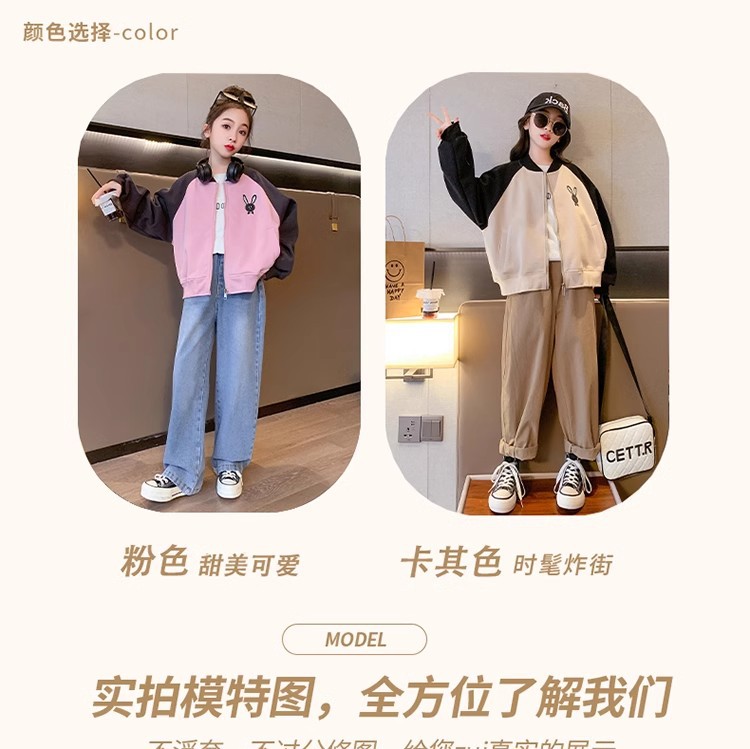 소녀 코트 2024 년 봄과 가을 큰 어린이를위한 새로운 서양식 가을 재킷 어린이 탑 대비 야구 세트스토어 가기