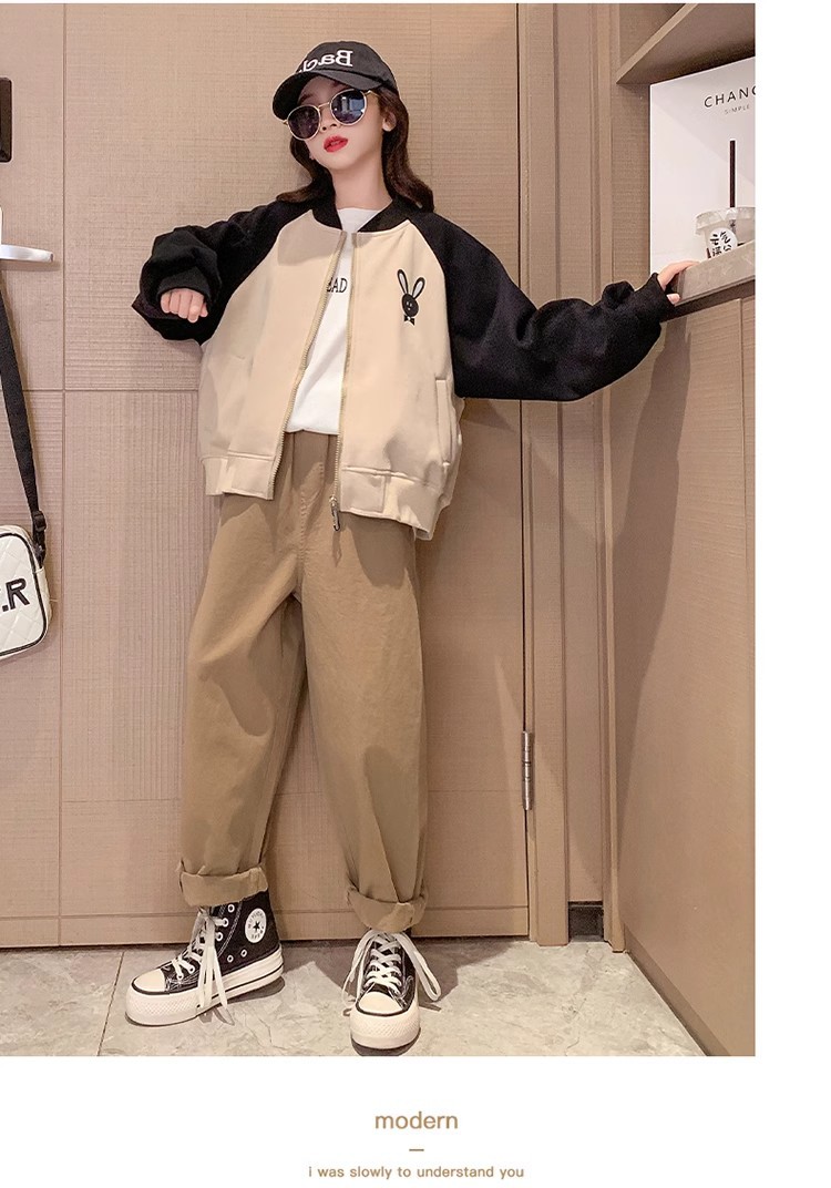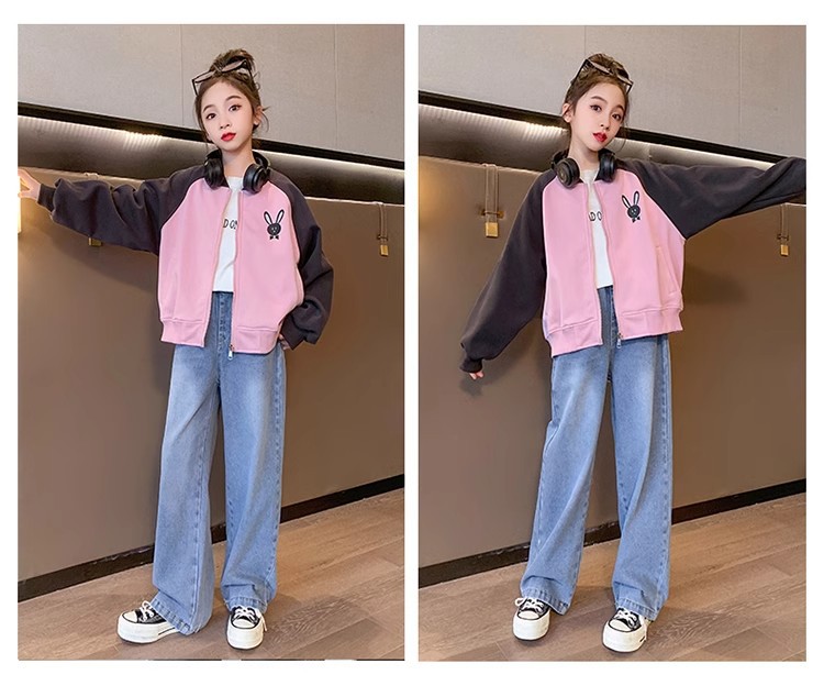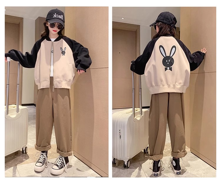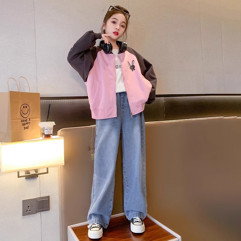 소녀 코트 2024 년 봄과 가을 큰 어린이를위한 새로운 서양식 가을 재킷 어린이 탑 대비 야구 세트