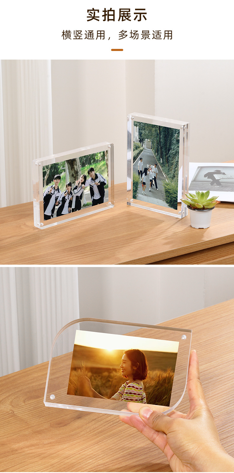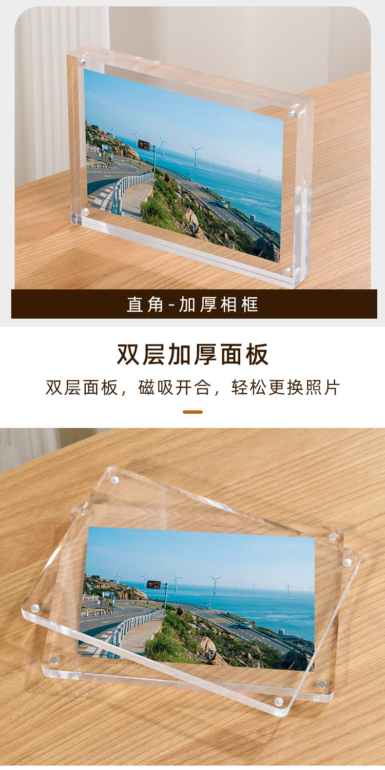 아크릴 두꺼운 사진 프레임 강한 자기 투명 양면 디스플레이 6 인치 또는 7 인치 데스크탑 테이블 브랜드 창조적 인 성격 사진 테이블스토어 가기