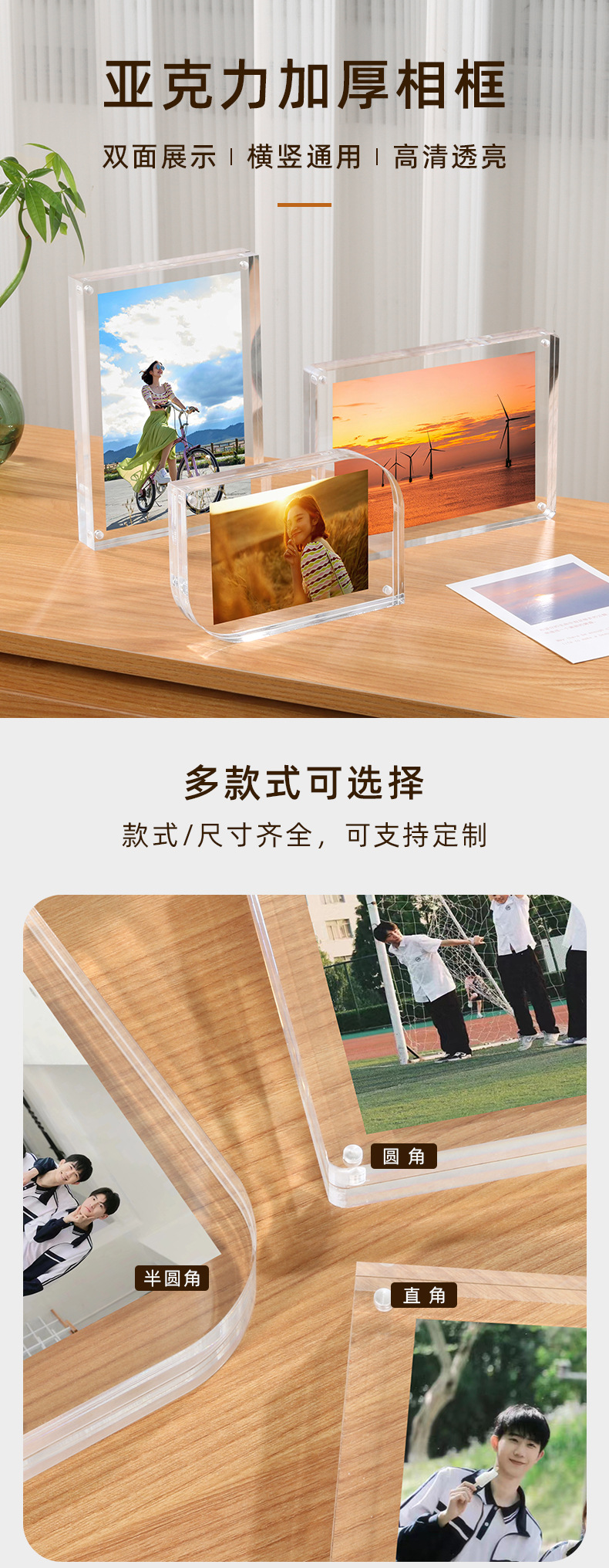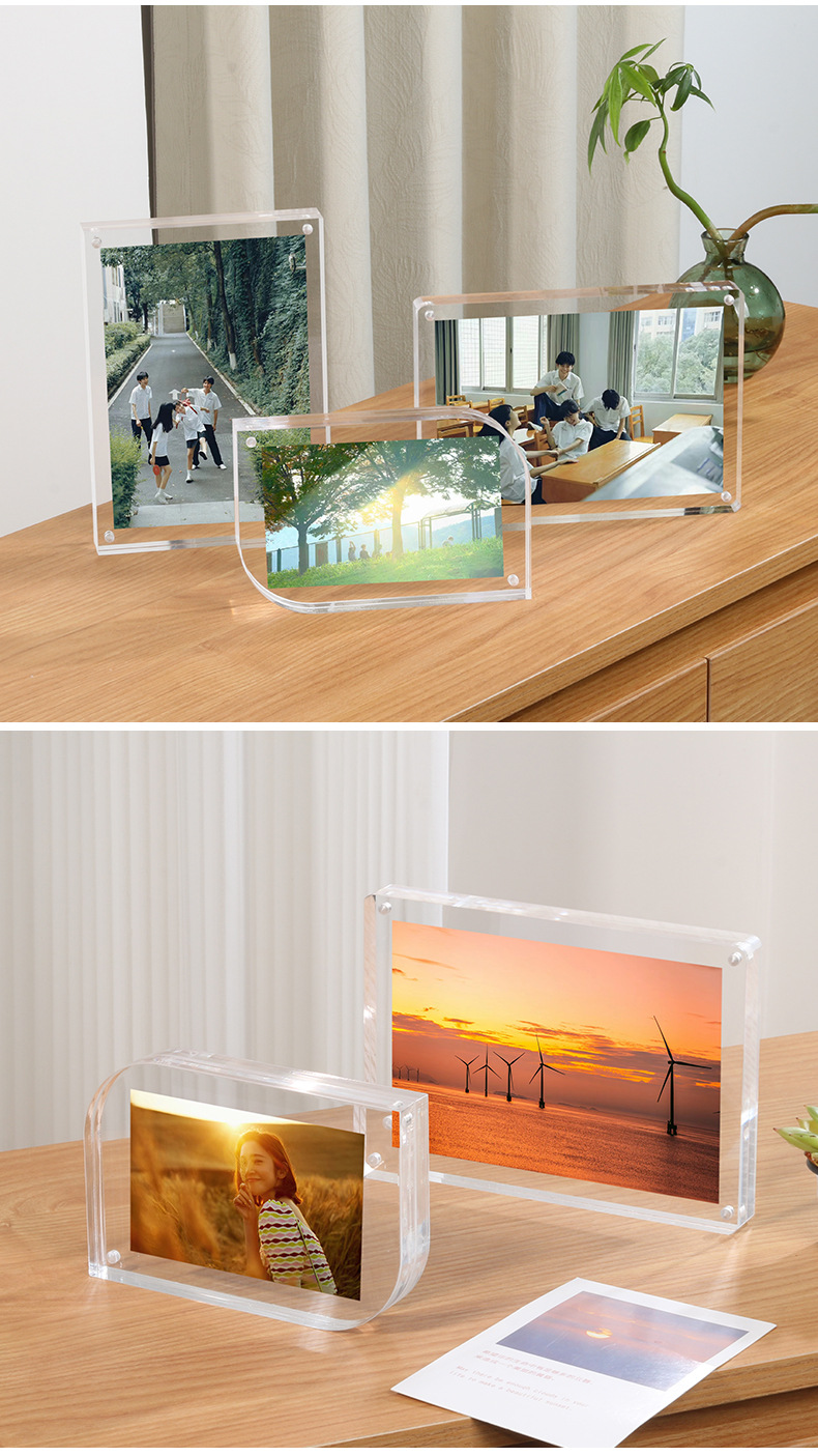 아크릴 두꺼운 사진 프레임 강한 자기 투명 양면 디스플레이 6 인치 또는 7 인치 데스크탑 테이블 브랜드 창조적 인 성격 사진 테이블