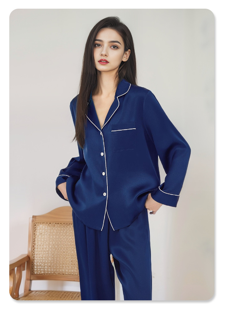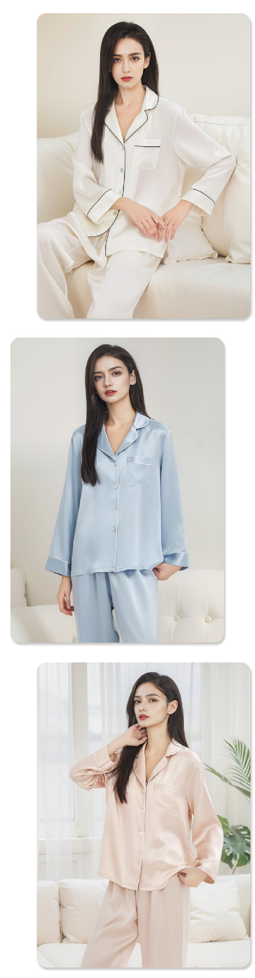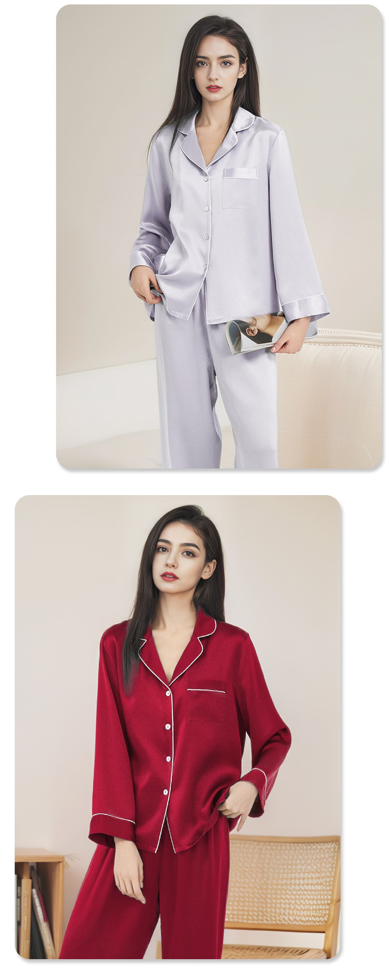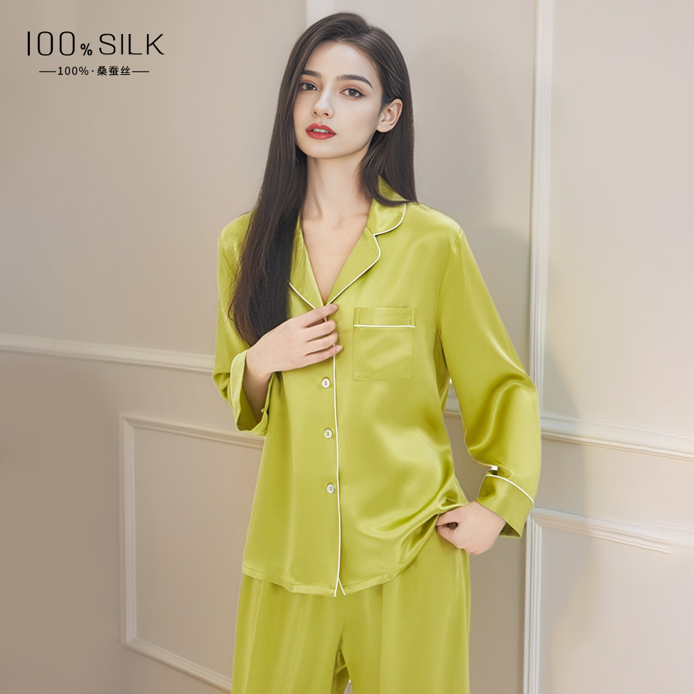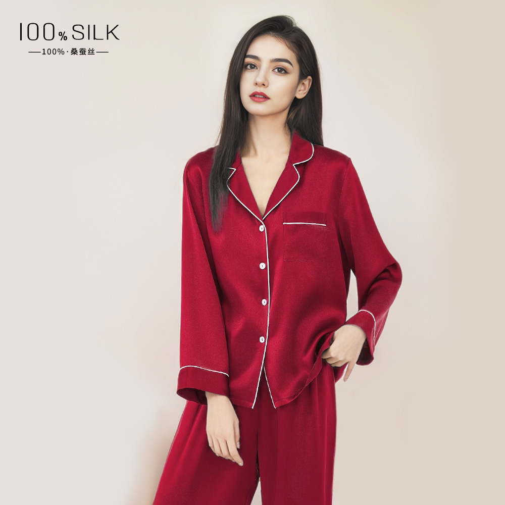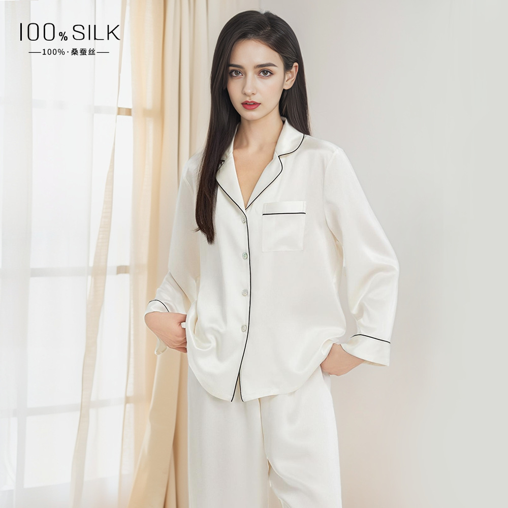 19mm 실크 잠옷 여성용 봄 여름 신상 긴팔 긴바지 100% 뽕나무 실크 홈웨어 세트 맞춤 제작스토어 가기