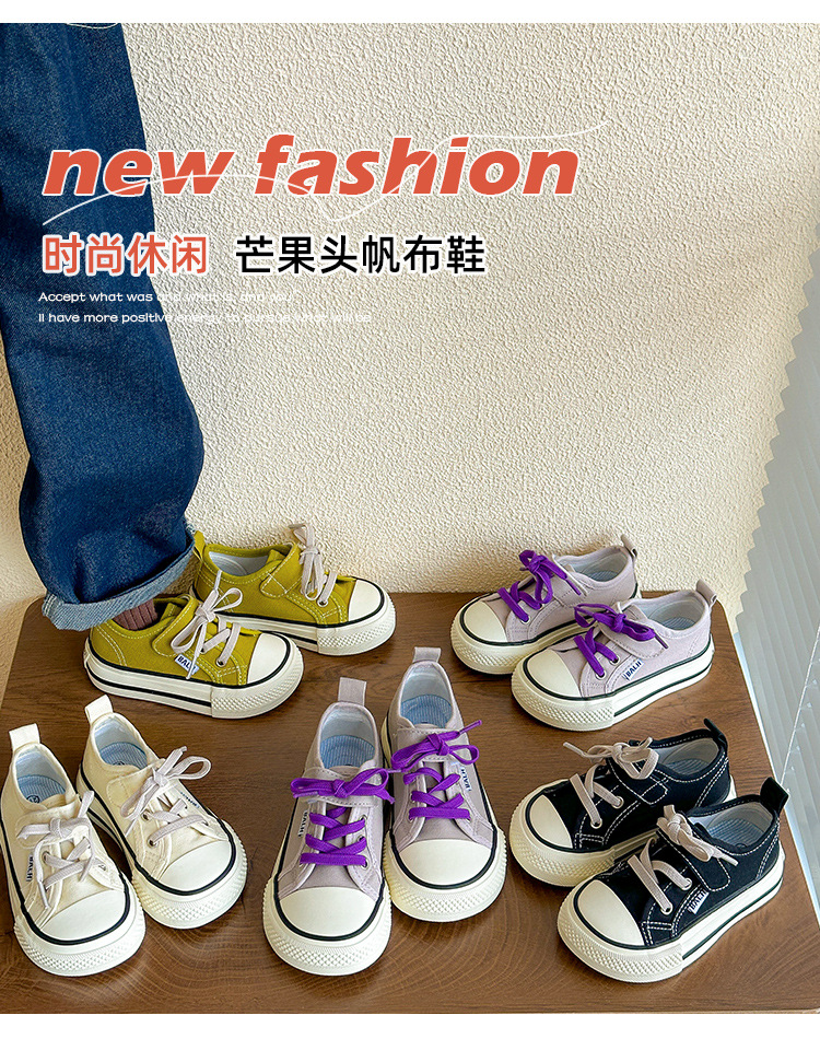 망고 머리 어린이 캔버스 신발 봄과 가을 새 소년 로우 탑 보드 신발 한국 스타일 소녀 헝겊 신발 유치원 실내 신발스토어 가기
