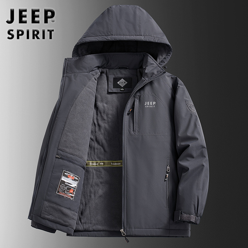 jeep吉普夹克男士薄款冲锋衣秋新款休闲立领外套宽松大码潮流男装