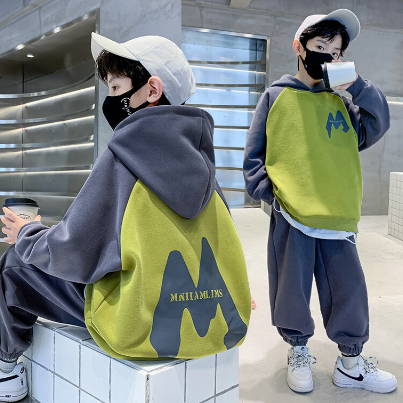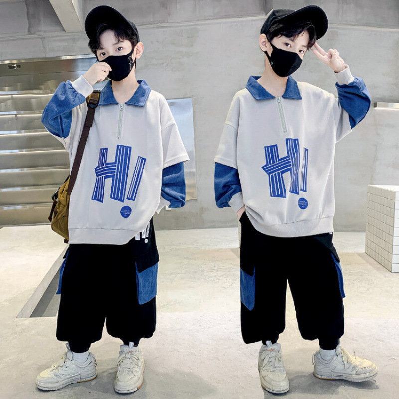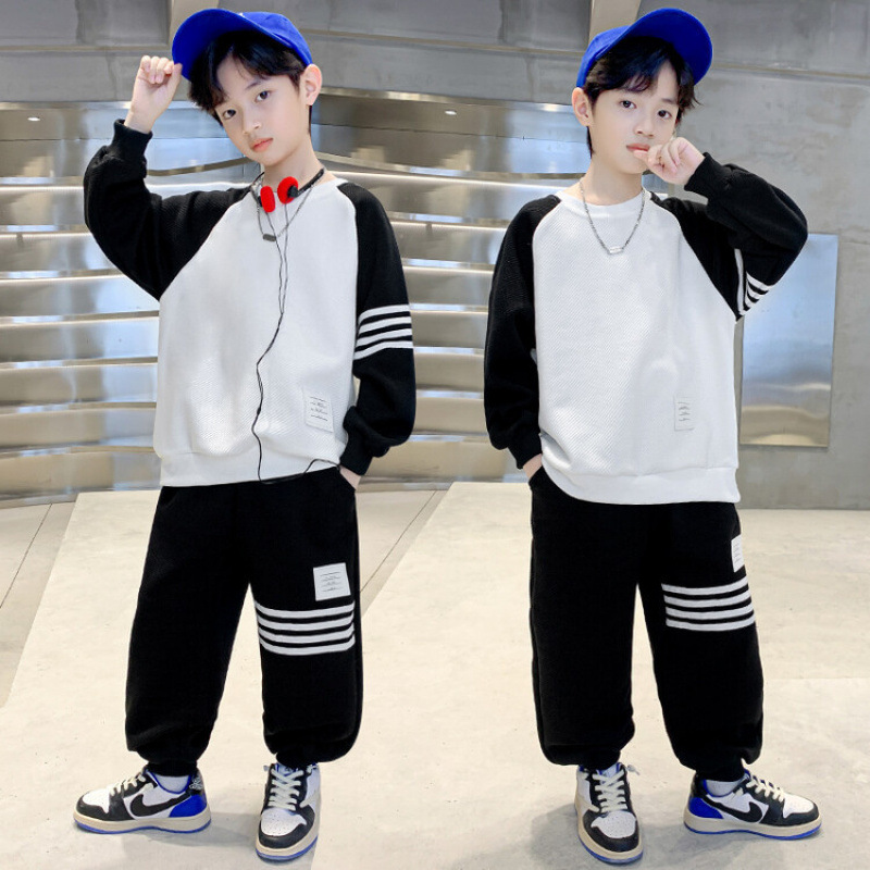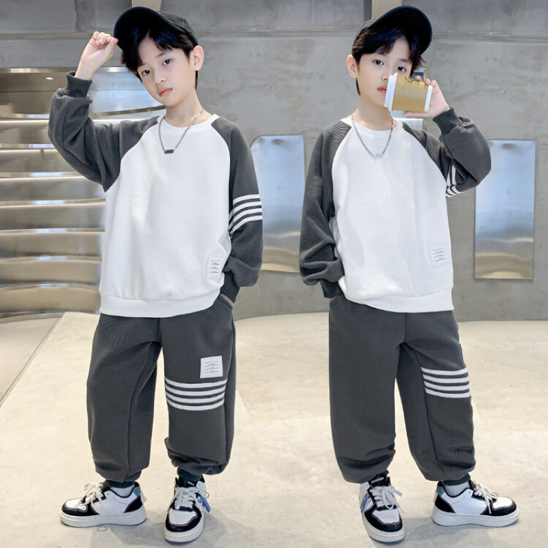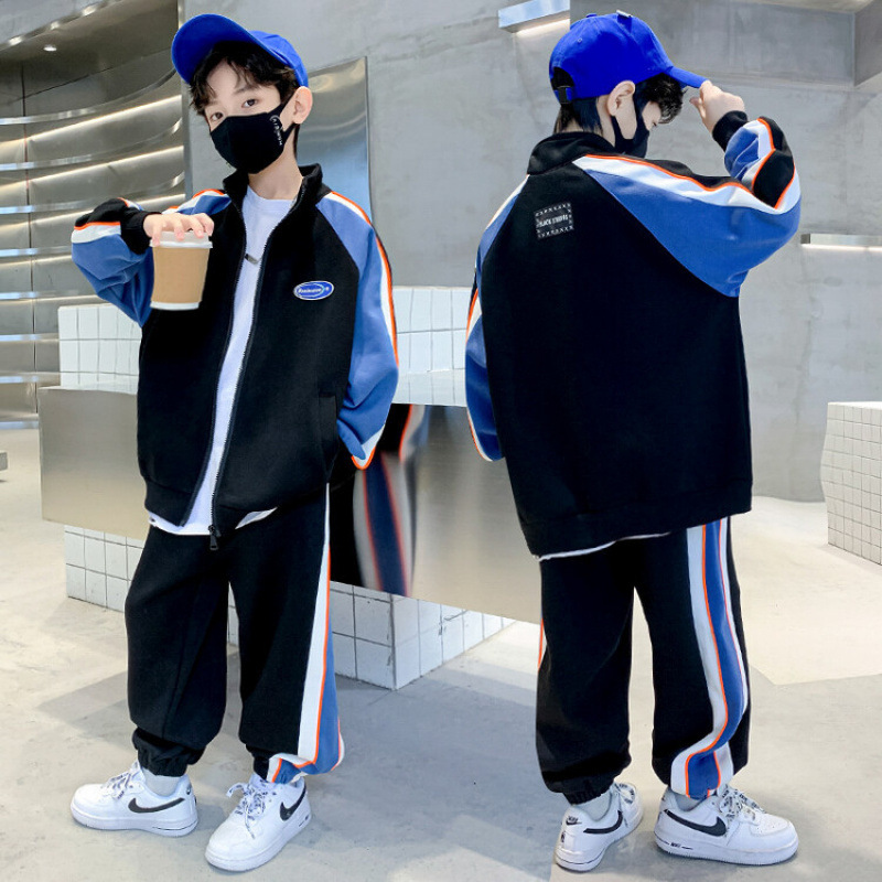 남자들의 봄 가을 세트 2024 봄 새로운 한국 스타일 중대형 어린이 후드 외국 스타일 소년 투피스 어린이 세트 트렌디스토어 가기