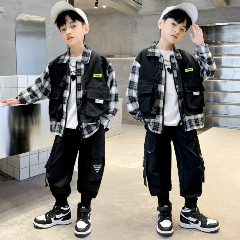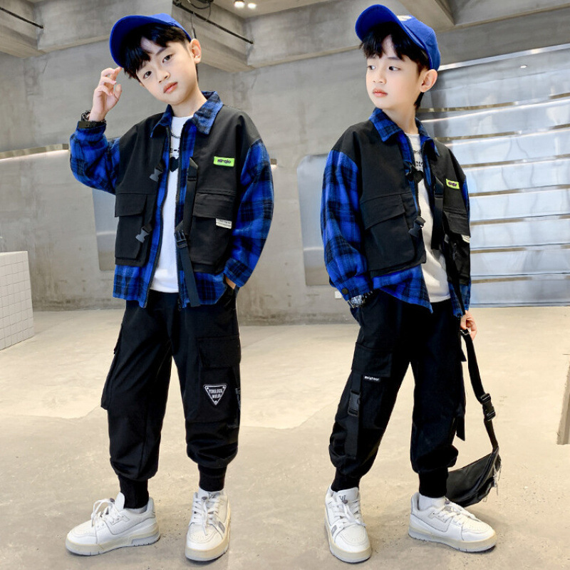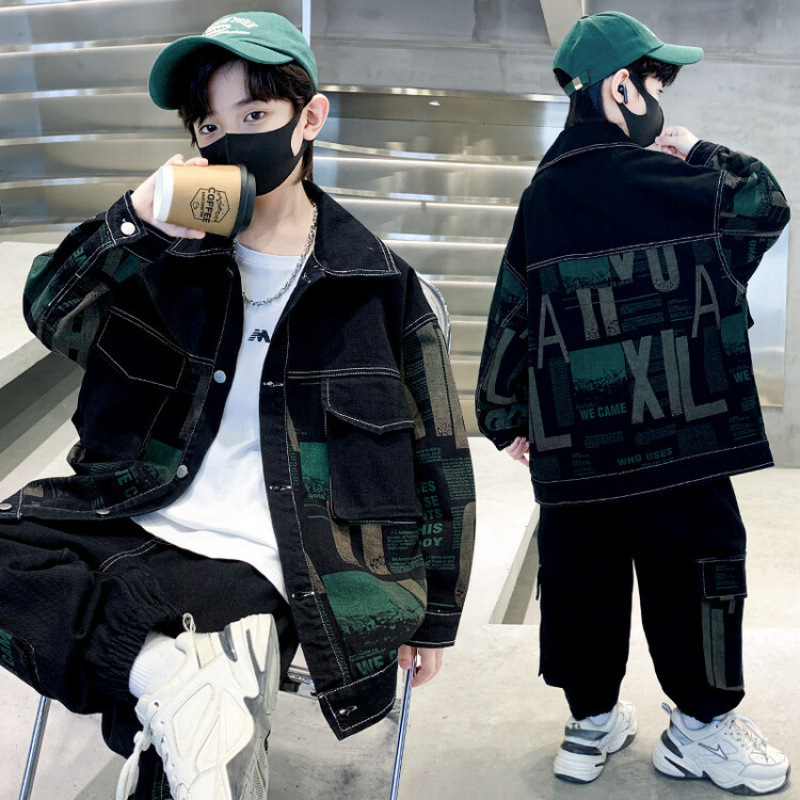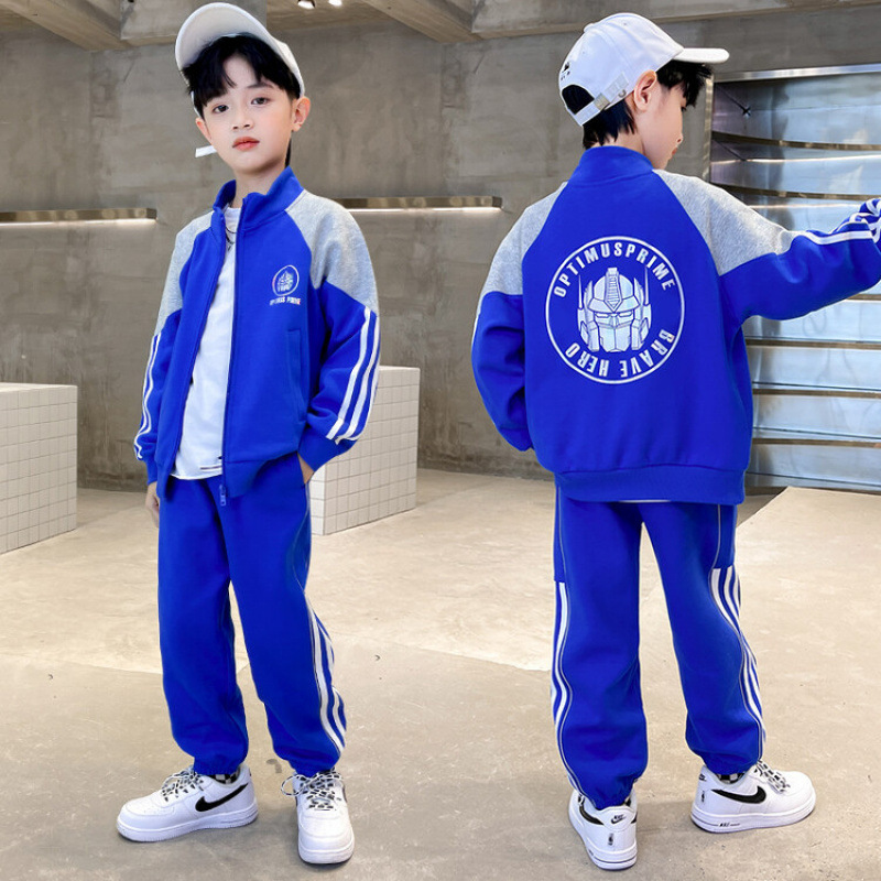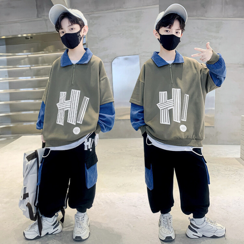남자들의 봄 가을 세트 2024 봄 새로운 한국 스타일 중대형 어린이 후드 외국 스타일 소년 투피스 어린이 세트 트렌디스토어 가기