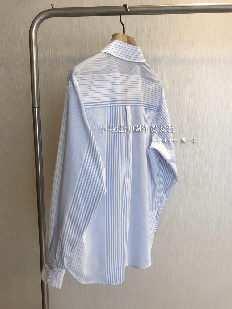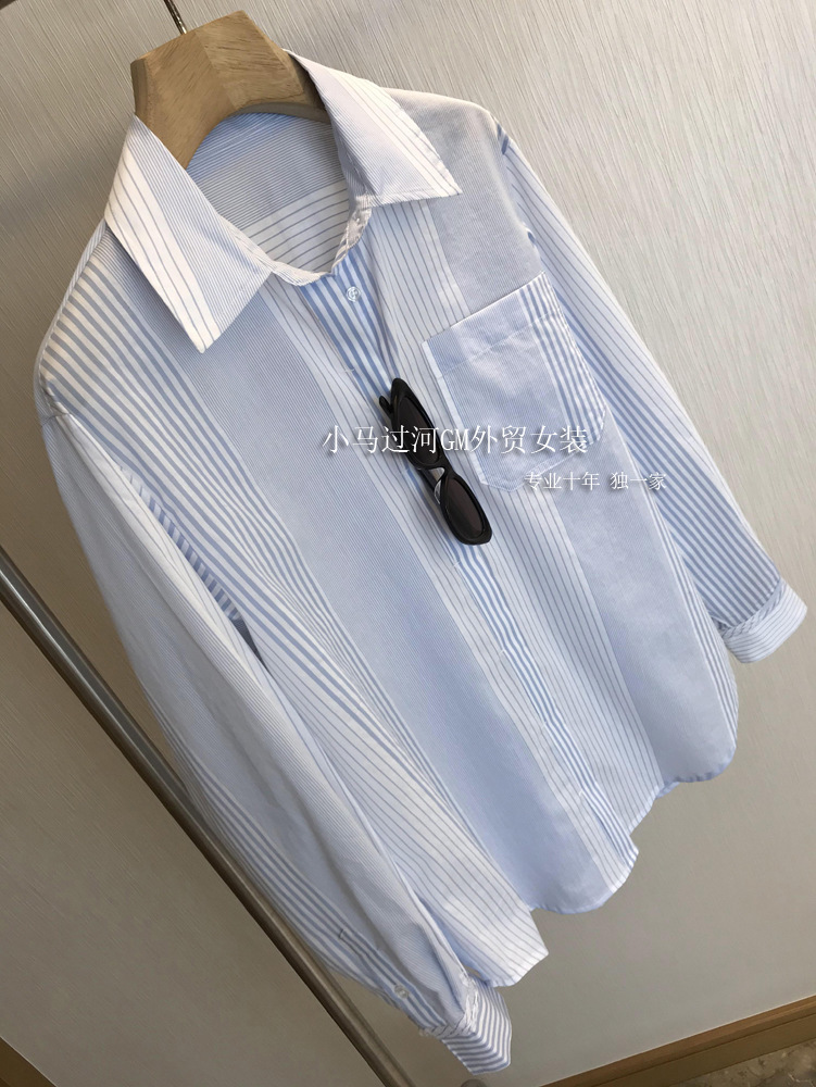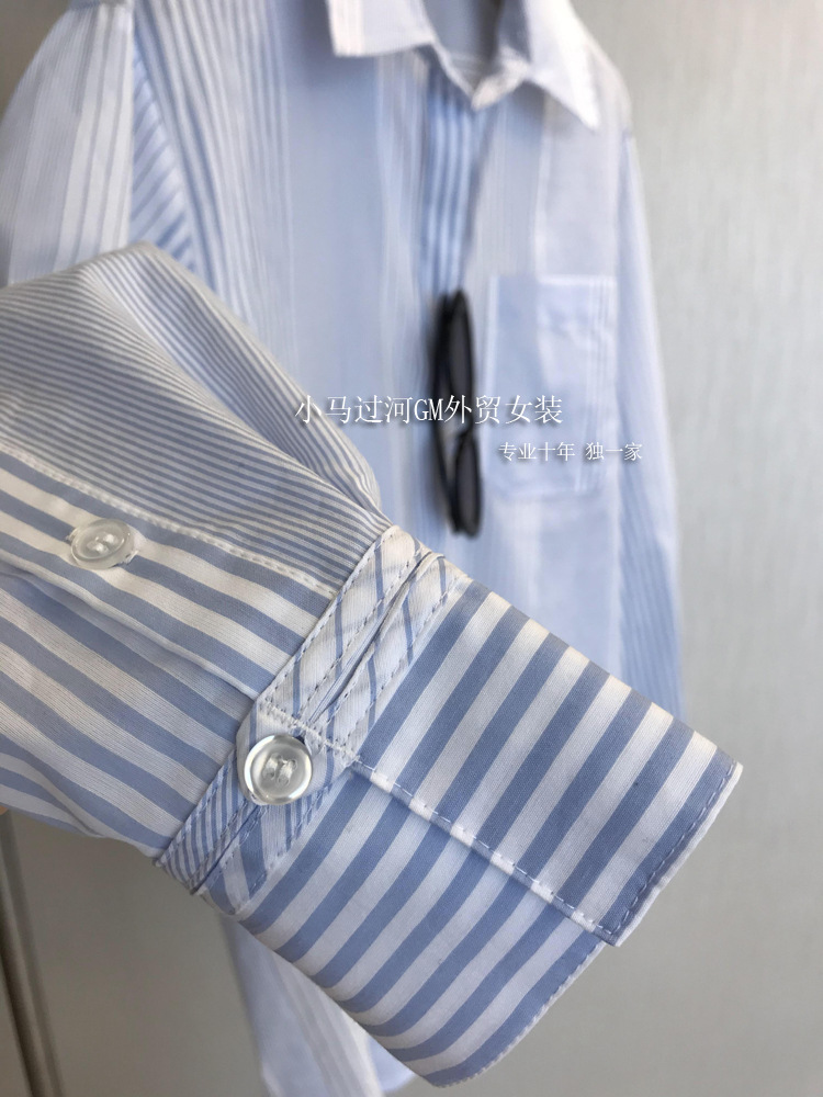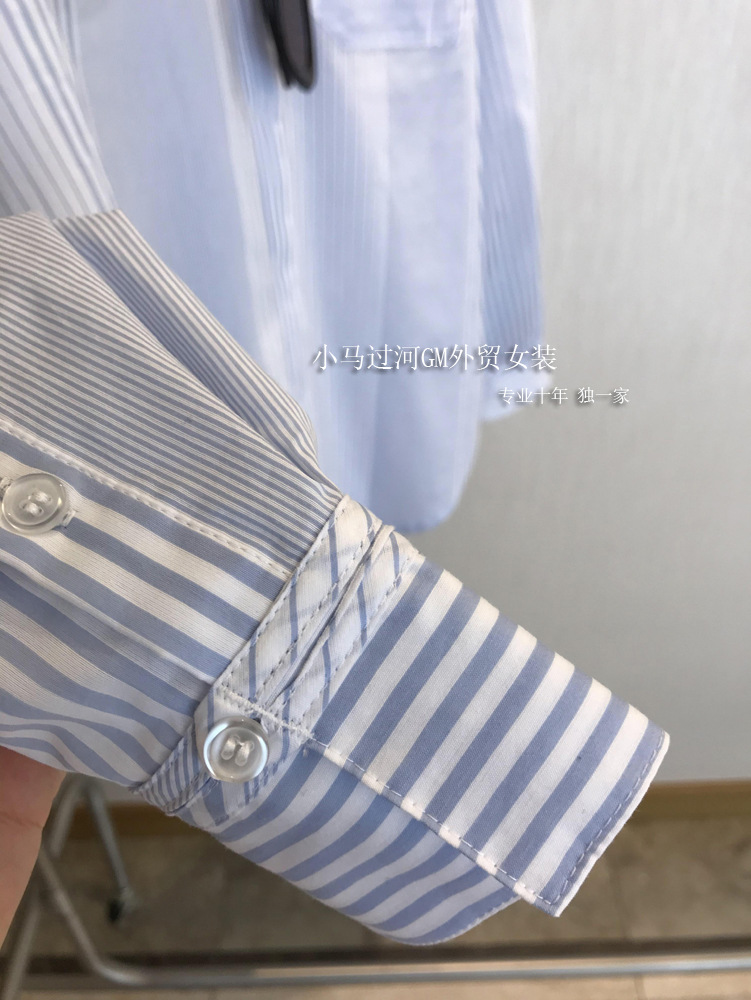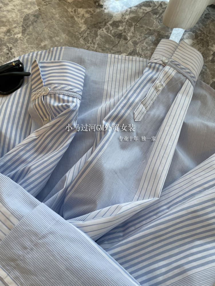 所见即所得,原厂里的禾!!!篙级感简约条纹长袖翻领衬衫上衣女