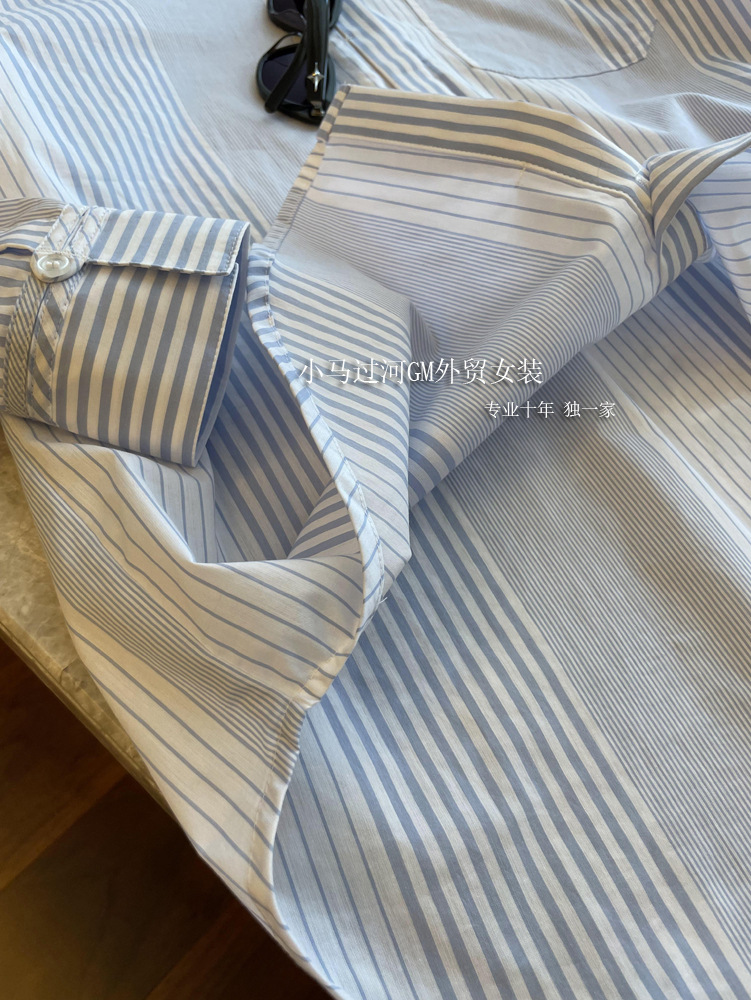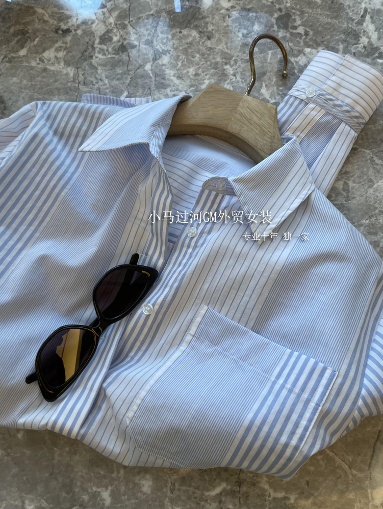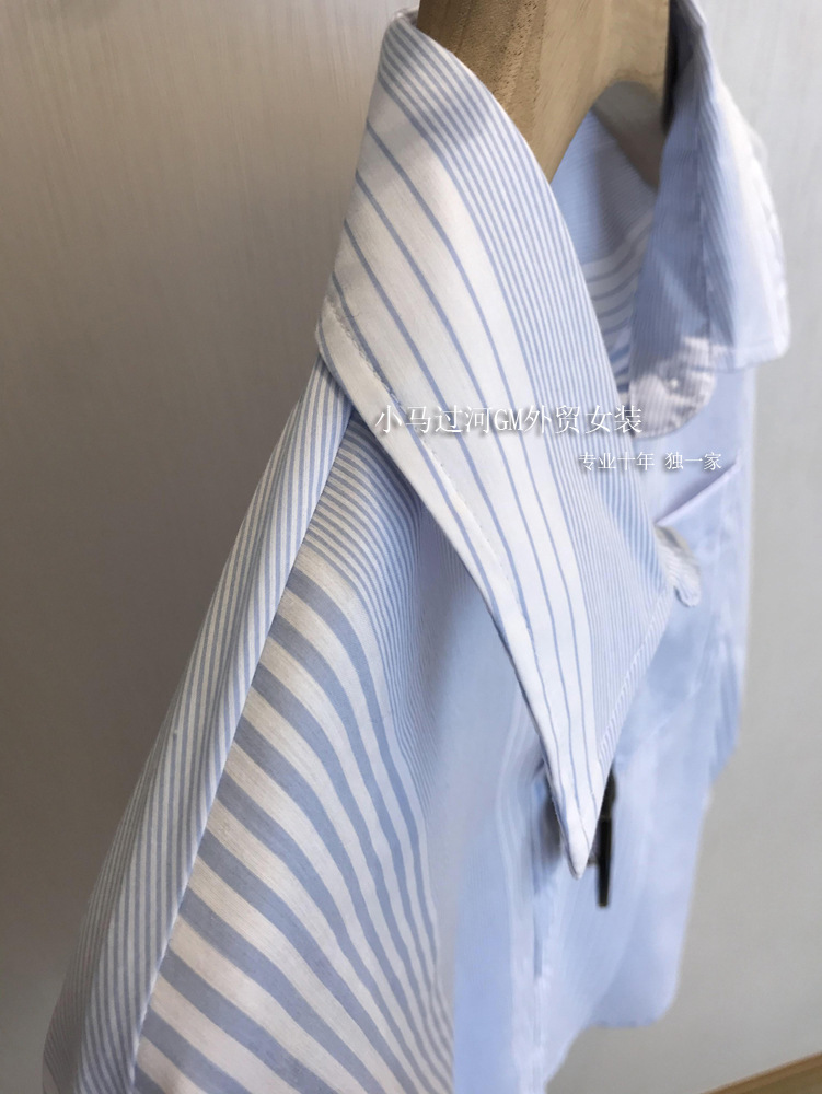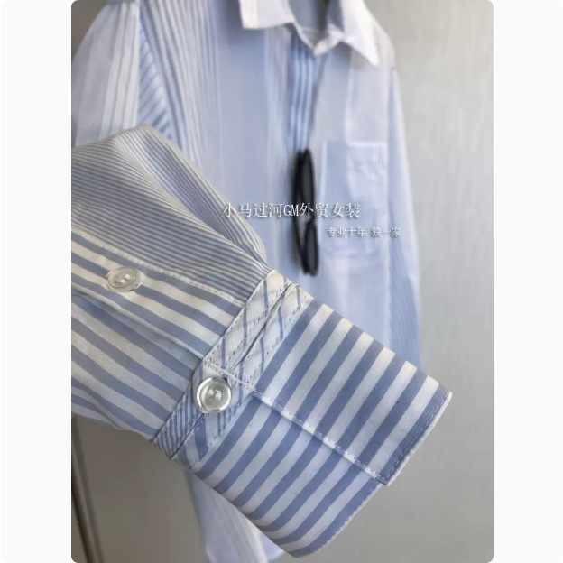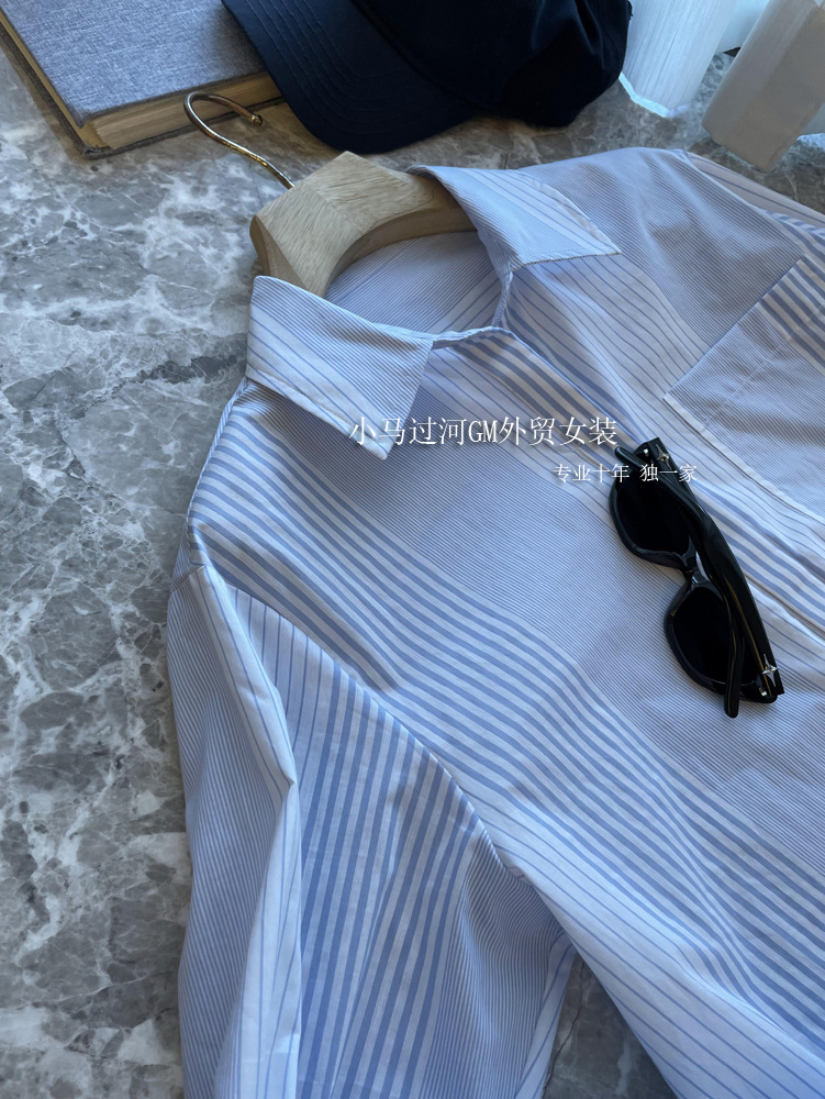 所见即所得,原厂里的禾!!!篙级感简约条纹长袖翻领衬衫上衣女