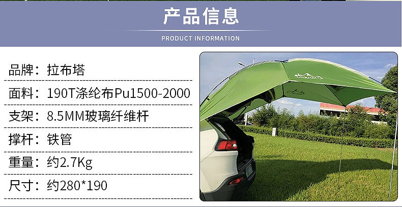 Labuta 휴대용 자동차 후면 텐트 자동차 사이드 텐트 야외 캠핑 다인 방수 차양 Pergola 도매스토어 가기