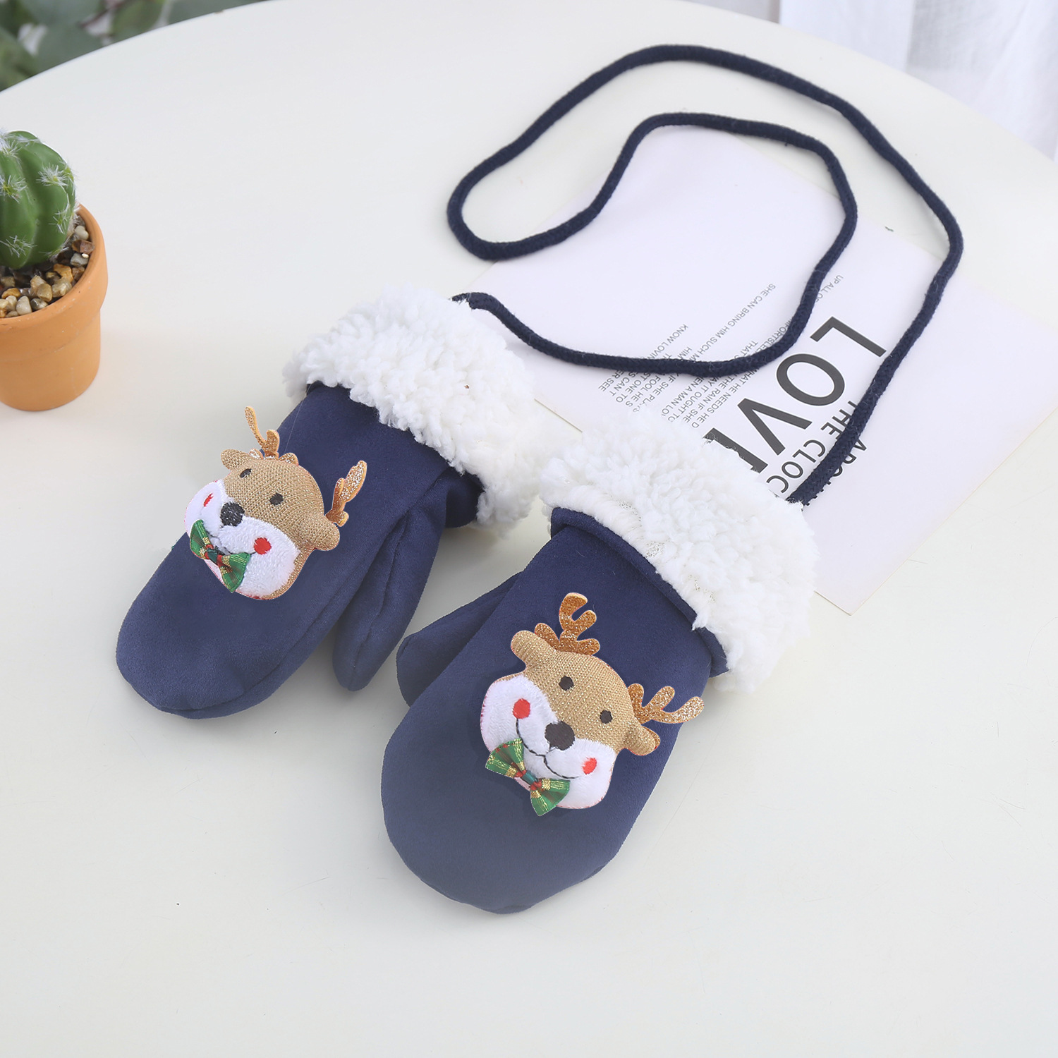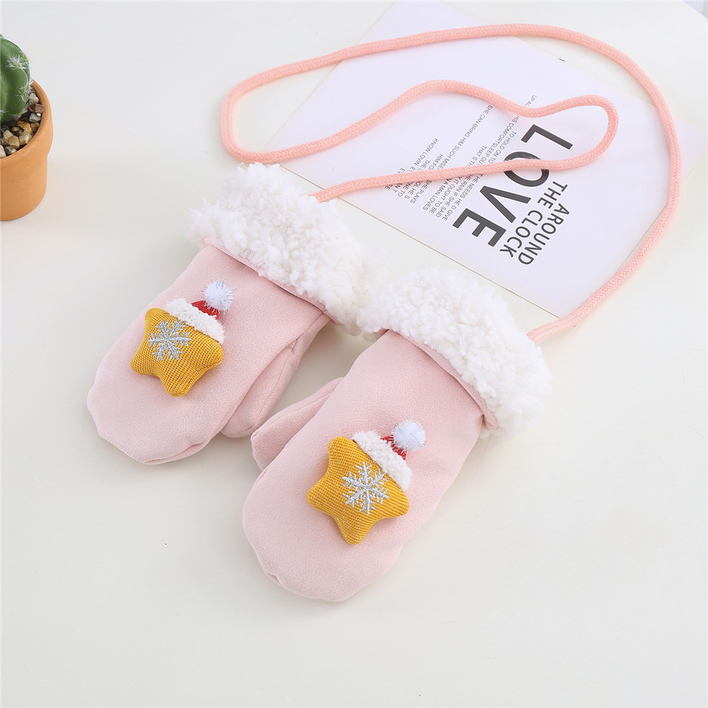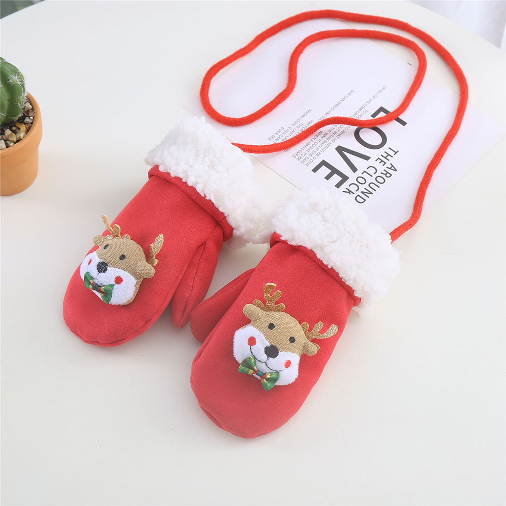 한국 스타일 어린이 장갑 가을과 겨울 크리스마스 만화 아기 장갑 따뜻한 사슴 가죽 양털 귀여운 장갑 소년 소녀