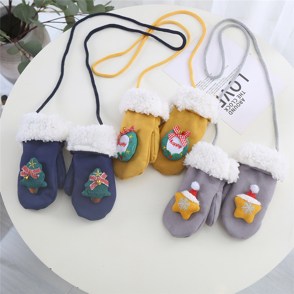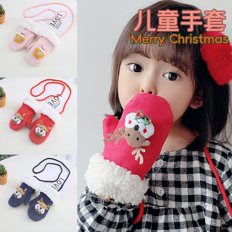 한국 스타일 어린이 장갑 가을과 겨울 크리스마스 만화 아기 장갑 따뜻한 사슴 가죽 양털 귀여운 장갑 소년 소녀스토어 가기