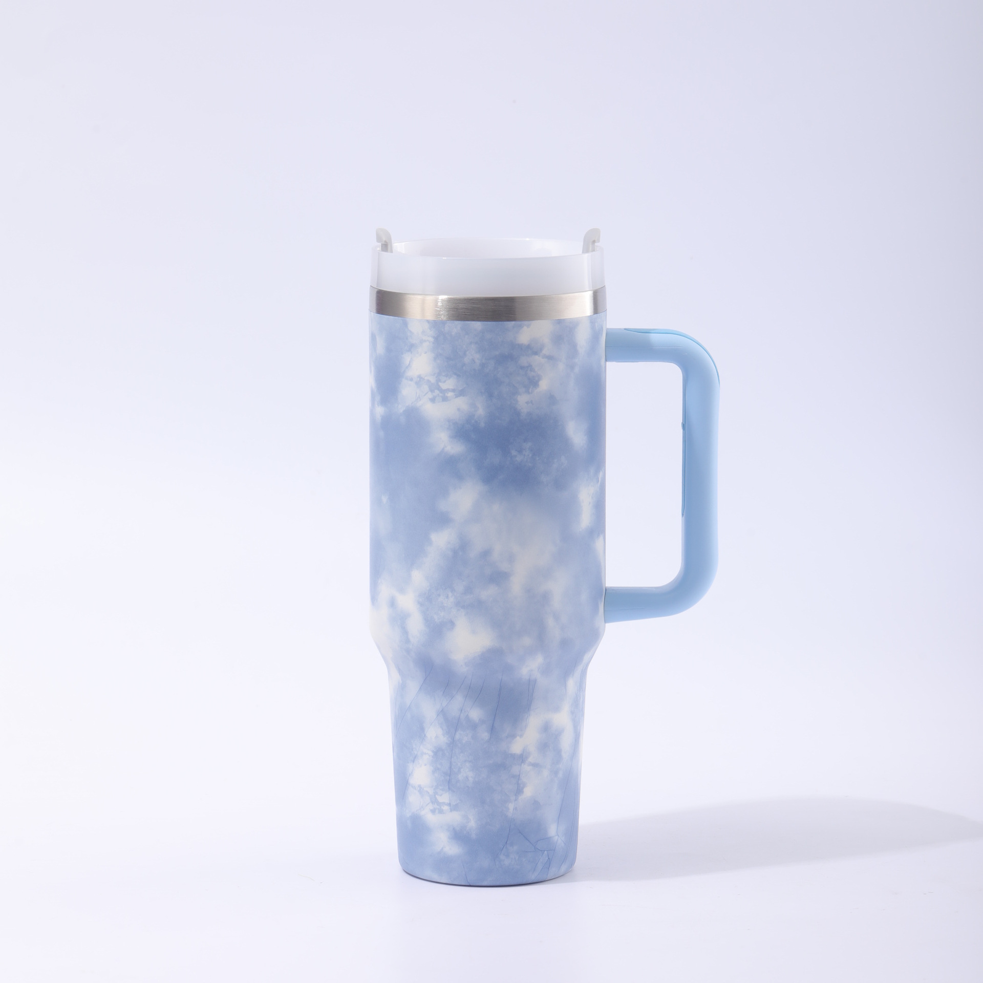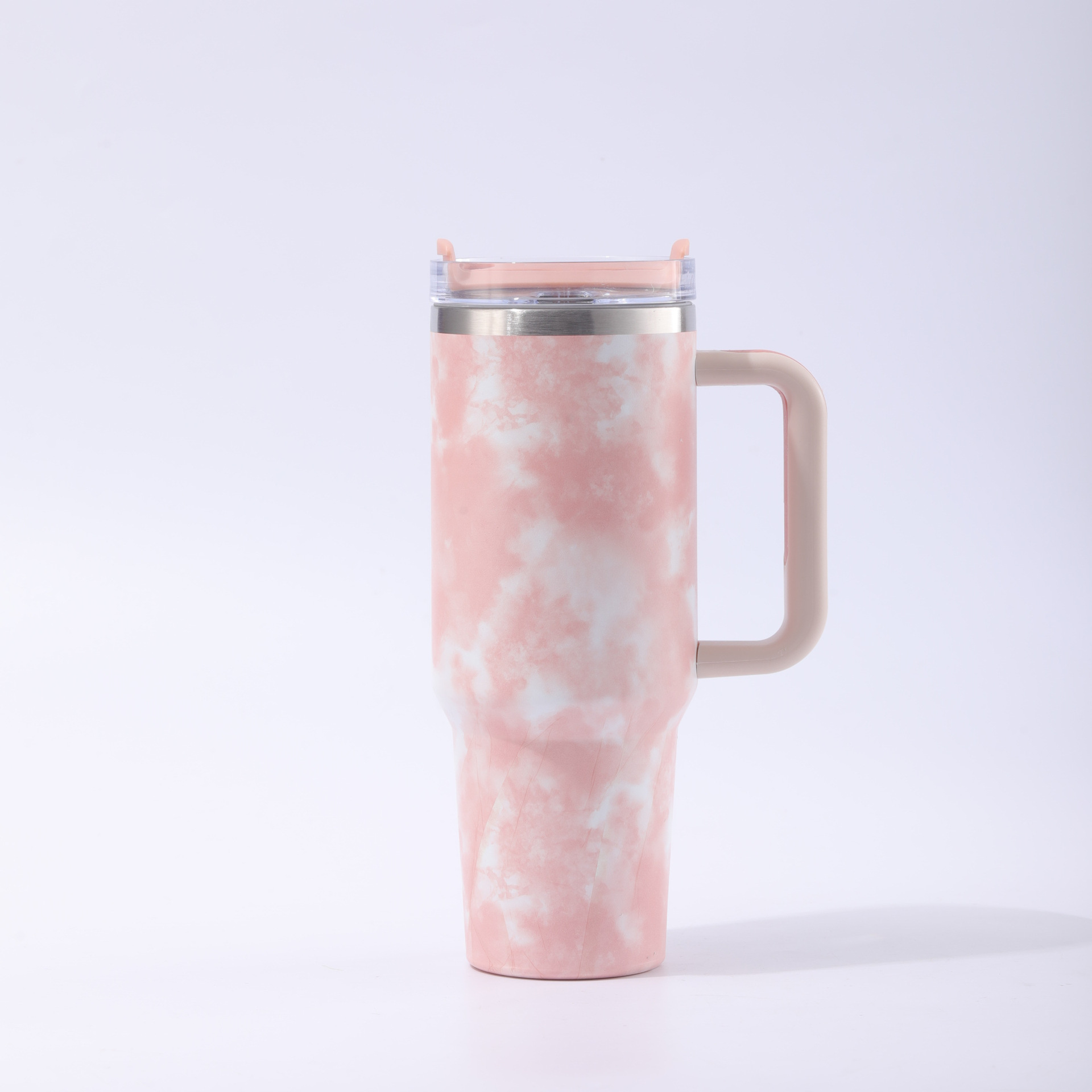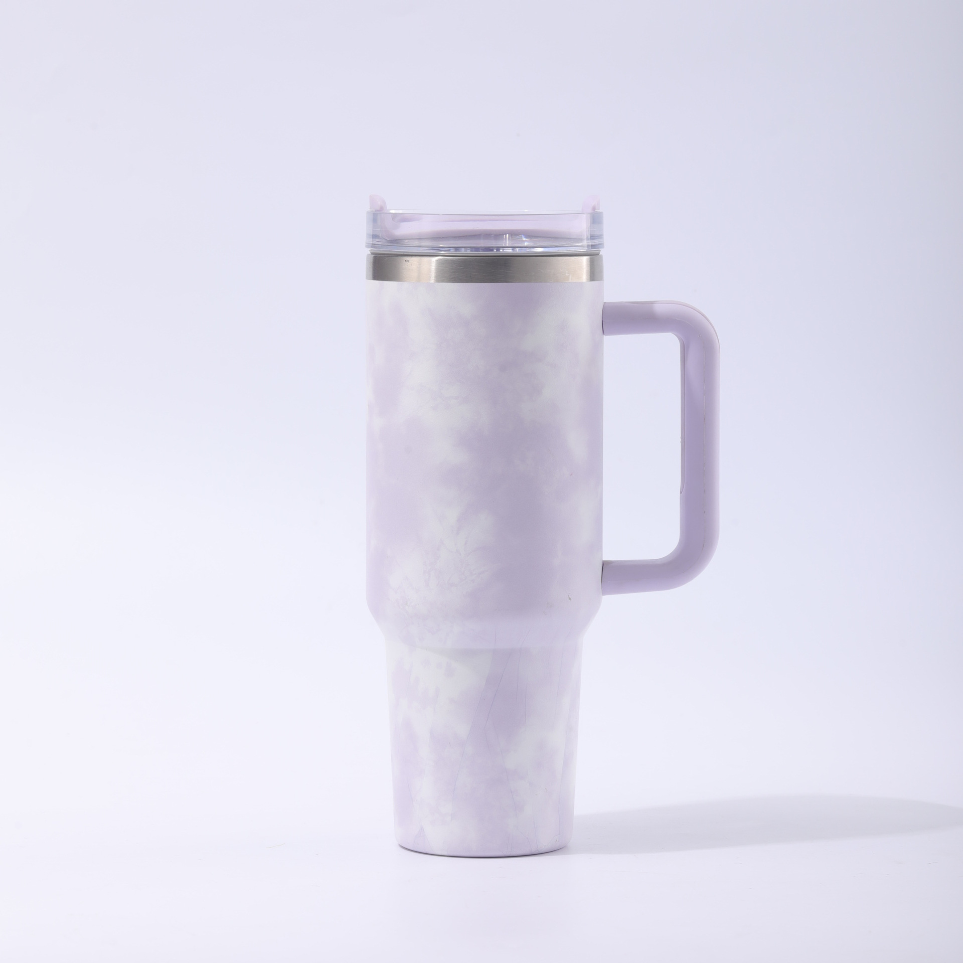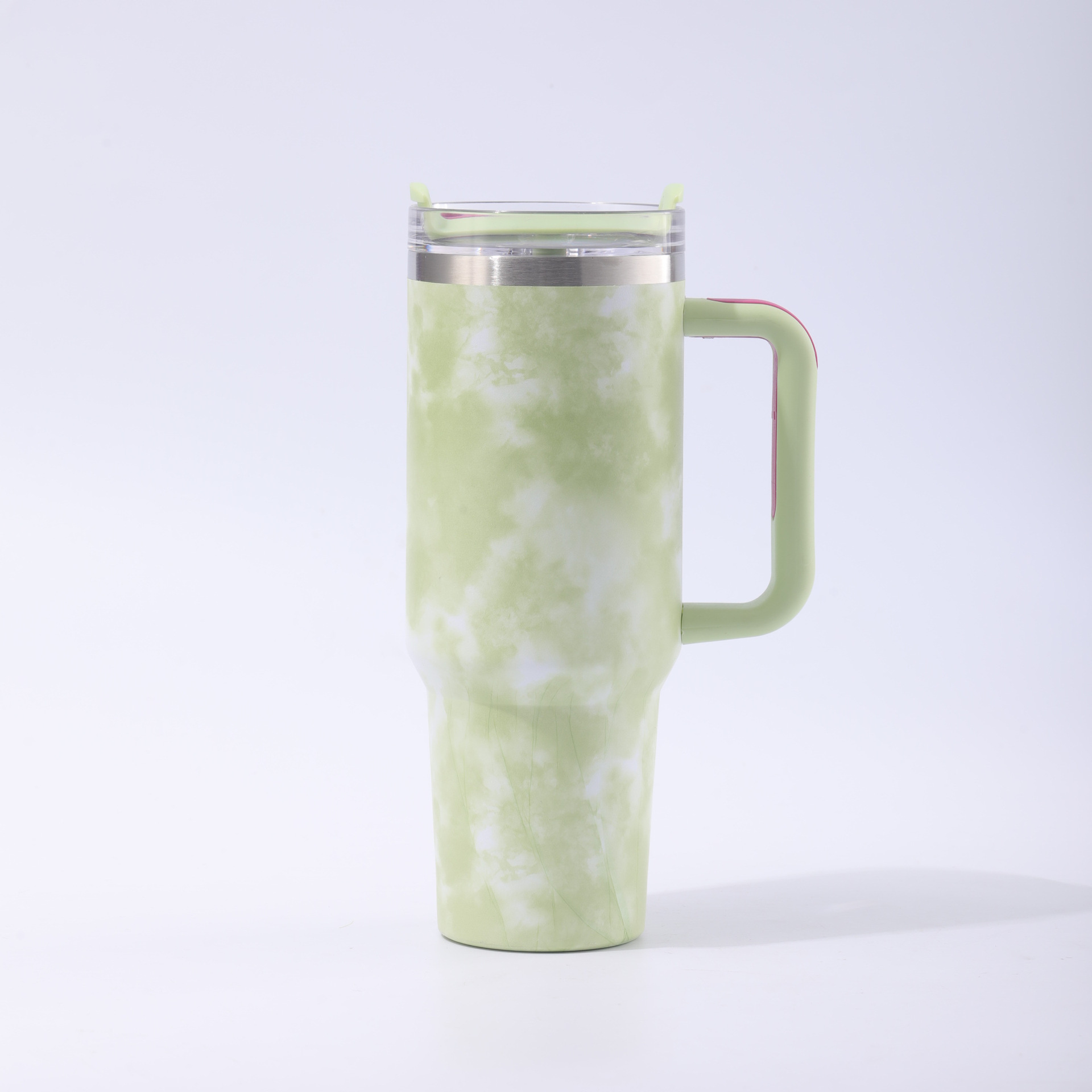 국경 간 2 세대 페인트 염색 컬러 컬러 자동차 컵 40oz 대용량 아이스 컵 스테인레스 스틸 보온병 컵 휴대용 핸들 컵
