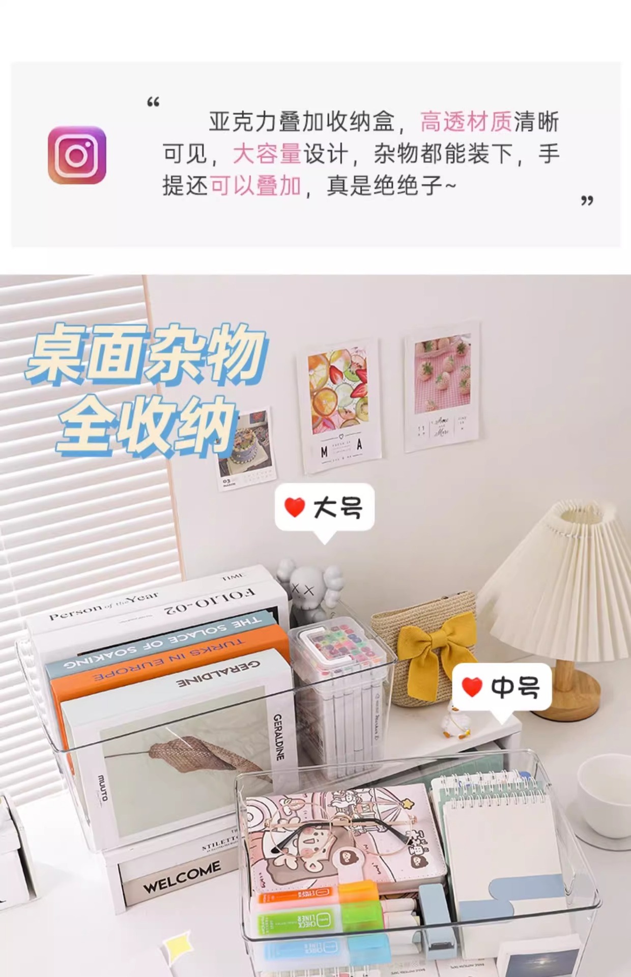 아크릴 보관 상자 데스크탑 화장품 투명 플라스틱 보관 바구니 스킨 케어 제품 드레싱 테이블 잡다한 휴대용 상자