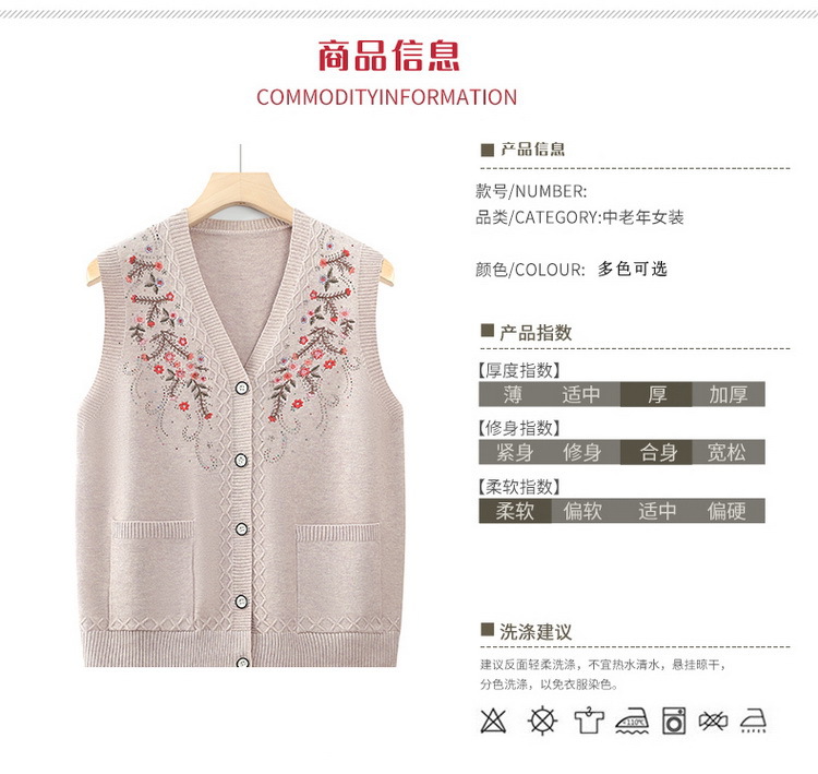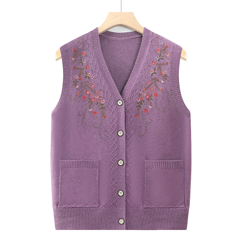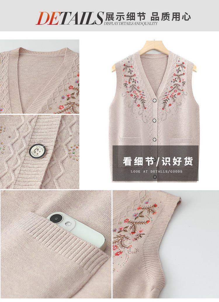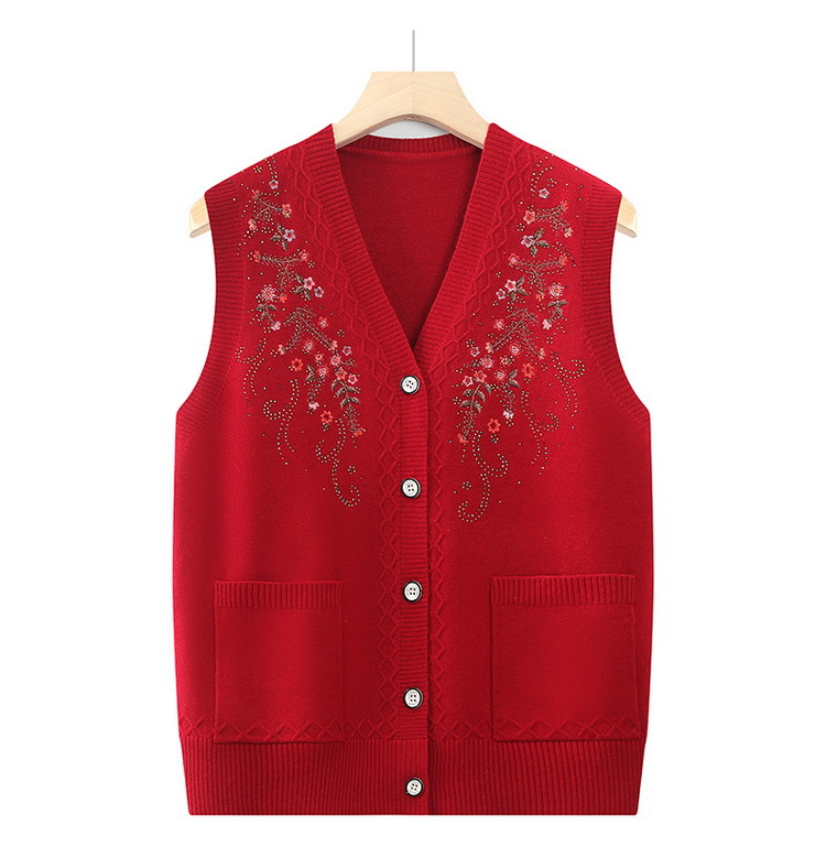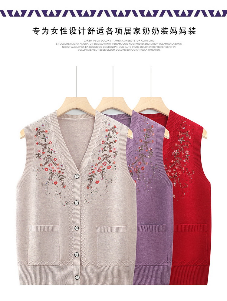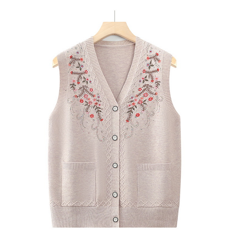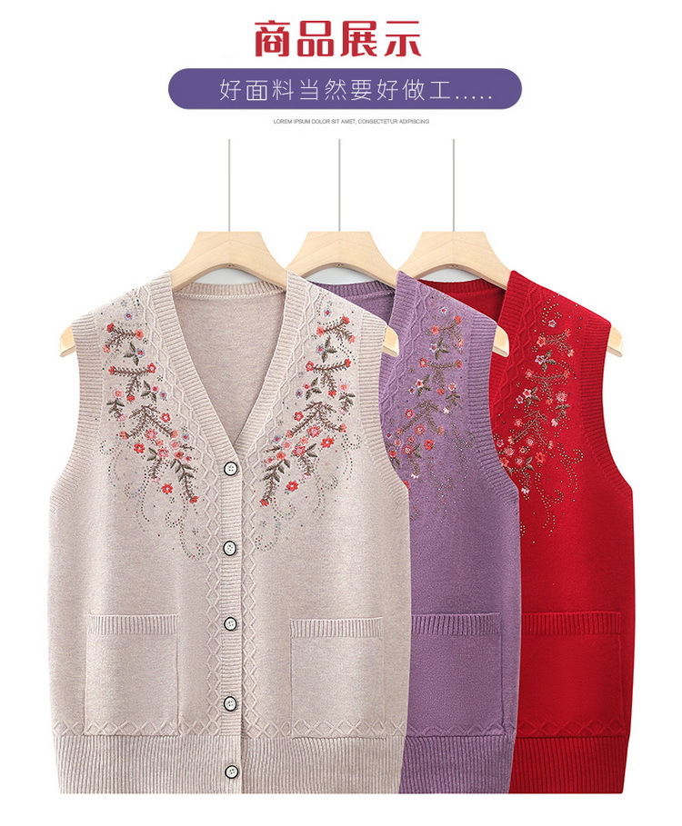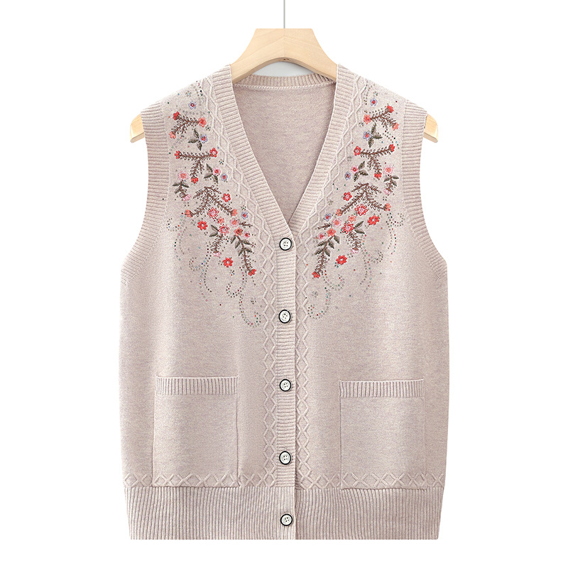 중년 및 노인 니트 봄과 가을 따뜻한 조끼 할머니 스웨터 조끼 카디건 캐주얼 여성 양복 조끼 민소매 탑