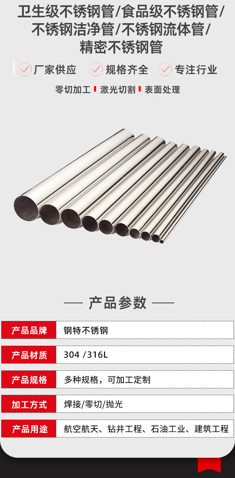 제조업체 도매 304 316L 스테인리스강 튜브, 스테인리스 원형 튜브, 6m 길이 스테인리스 장식 튜브, 맞춤 가공