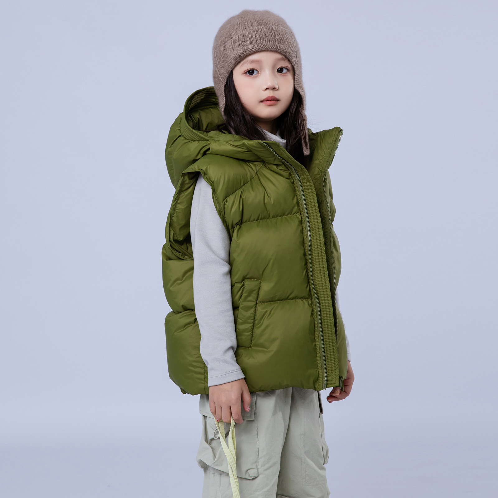 어린이 다운 재킷 2024 소년 소녀를위한 새로운 조끼 위트 코트 모자 두꺼운 조끼 트렌디 착용스토어 가기