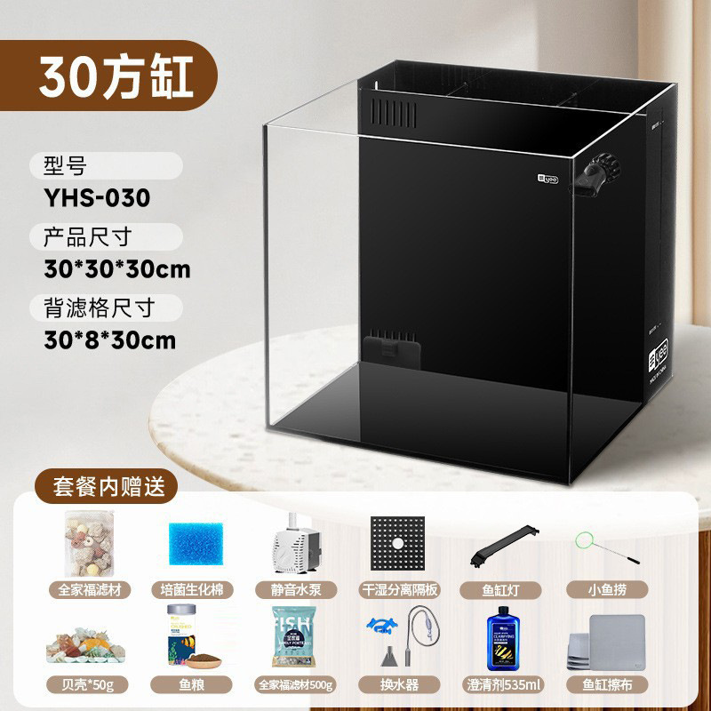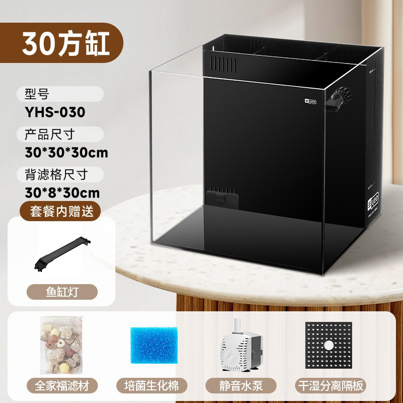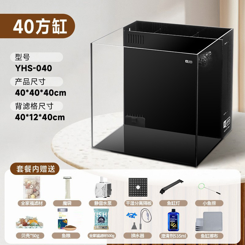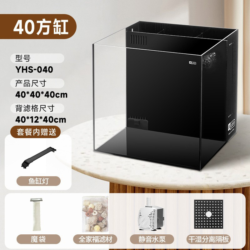 Yee 초백색 어항, 후면 필터 탱크, 거실용 데스크탑 어항, 필터 및 산소 발생기 일체형, 담수 및 해수 어항, 해외 직구 가능